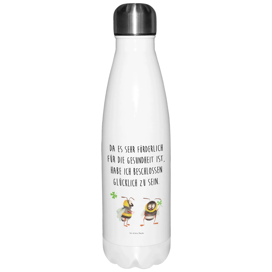 The uplifting design of our two cute bumblebees is sure to bring a smile to anyone's face. They joyfully face each other, holding a lucky clover, embodying the spirit of happiness and positivity. With the slogan 'I’ve decided to be happy. They tell me it’s good for my health,' you not only get a practical drink container but also a daily reminder to embrace joy in life!