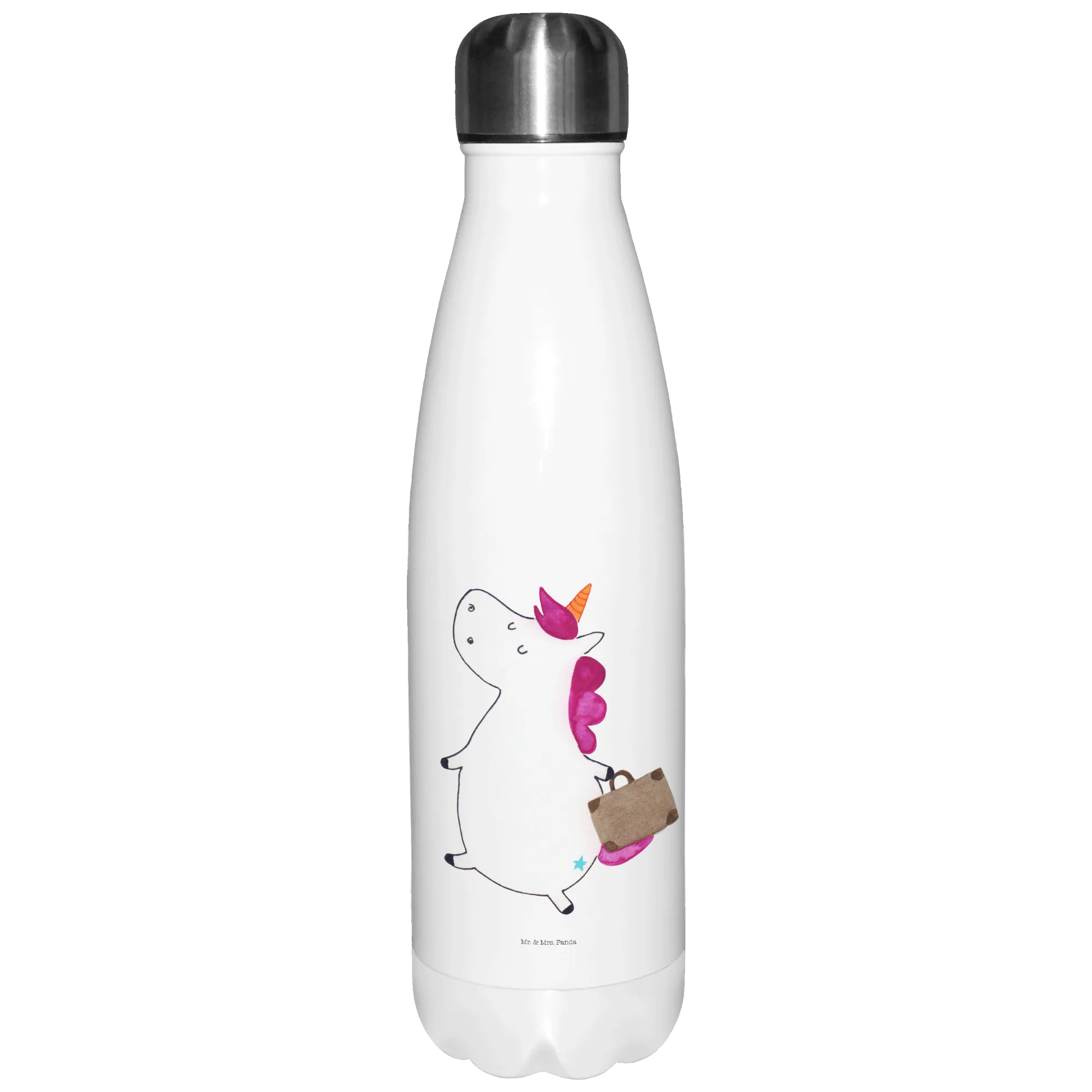 Unsere Thermosflasche „Einhorn Koffer“ aus der Einhorn - Kollektion von Mr. & Mrs. Panda vereint genau diese Eigenschaften. Das liebevoll von Mrs. Panda handgezeichnete Einhorn, das mit einem Koffer loszieht, bringt sofort gute Laune – perfekt für alle, die im Herzen jung geblieben sind. Die weiße Oberfläche lässt das Motiv besonders strahlen.