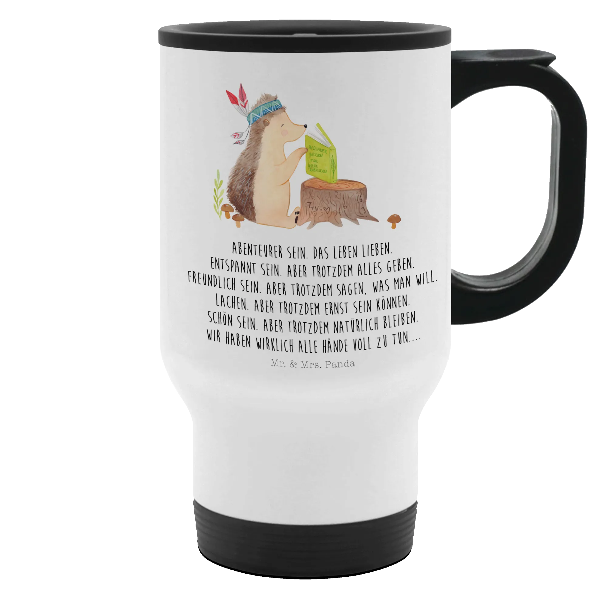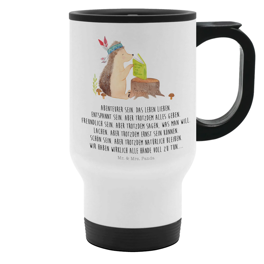 Insulated mug Hedgehog feather headdress - with a saying