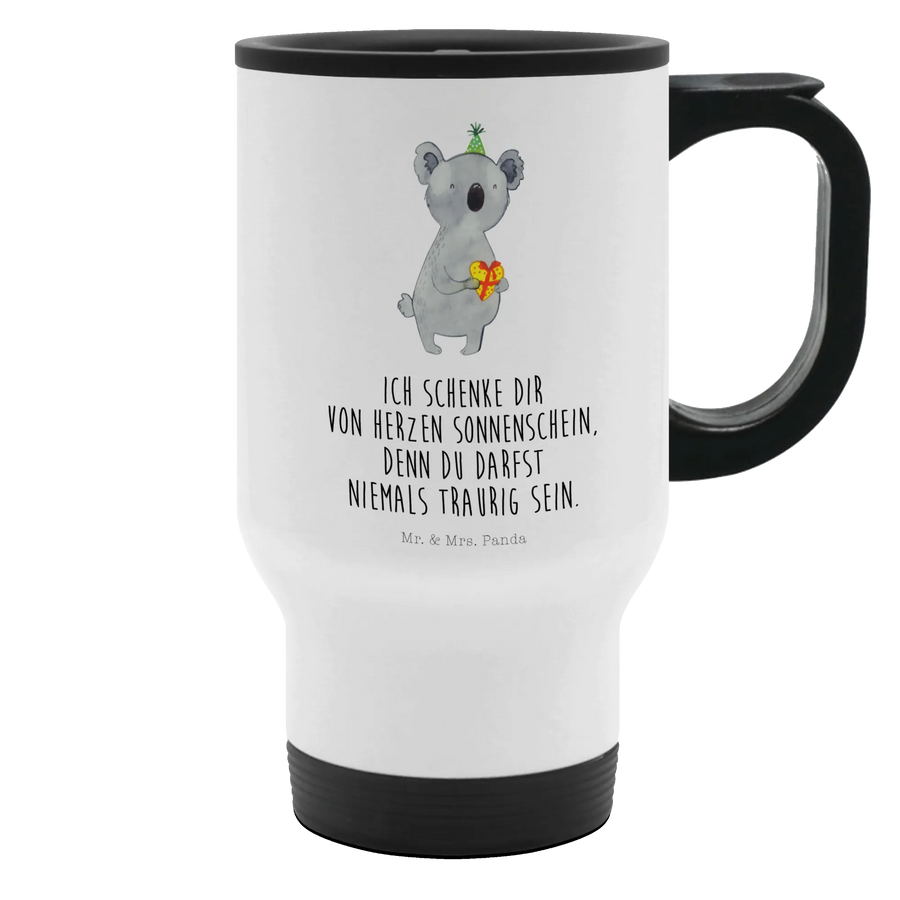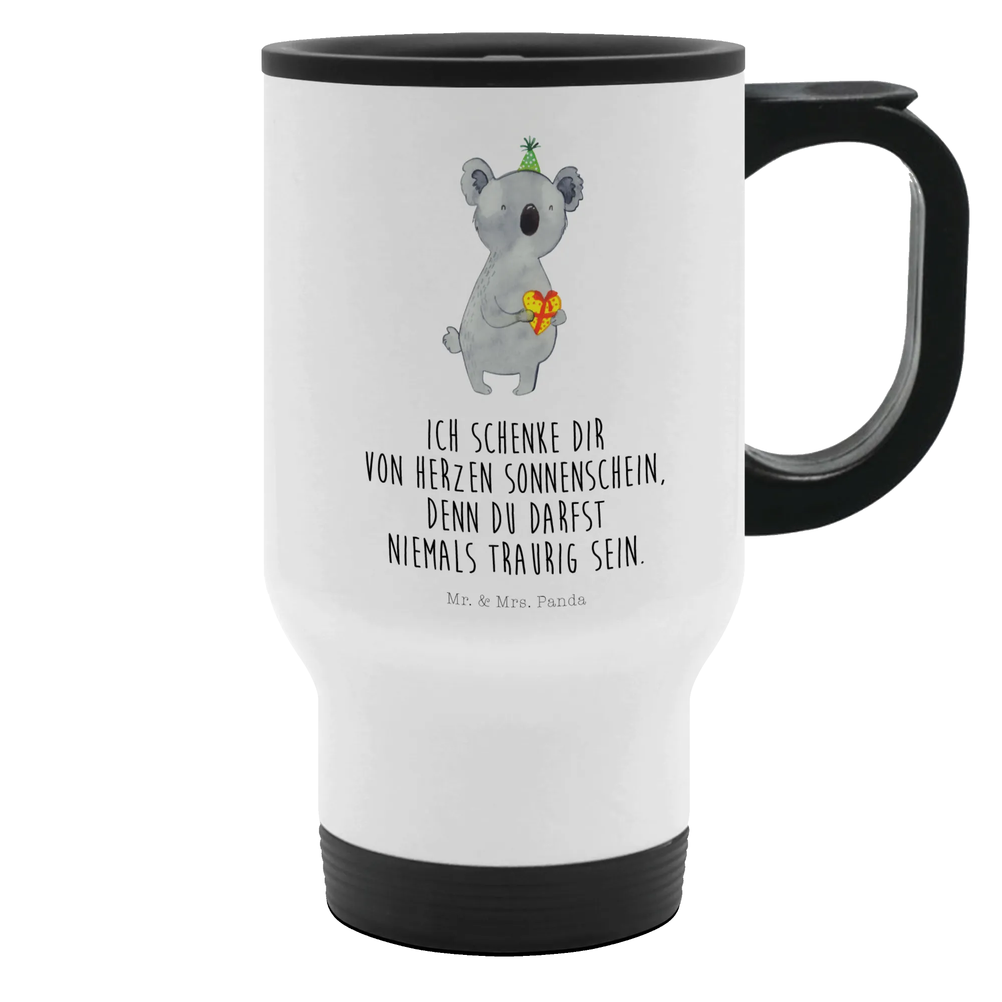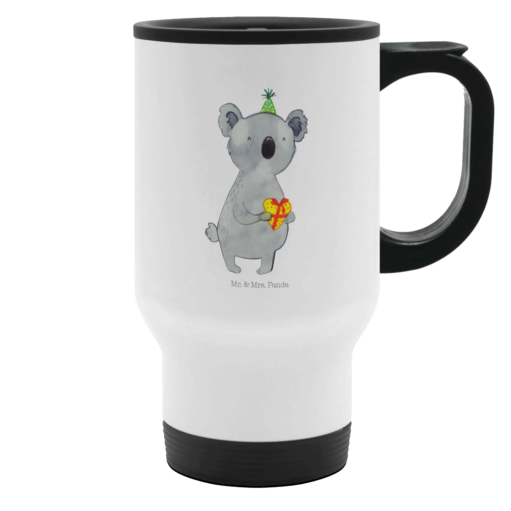 Whether it’s a birthday, a special occasion, or just a little surprise to brighten someone’s day, this adorable travel mug will bring a smile to anyone’s face. Featuring a beautifully hand-drawn koala wearing a party hat and holding a heart-shaped present, this mug is designed to warm your heart just as much as your favorite hot drink warms your hands.