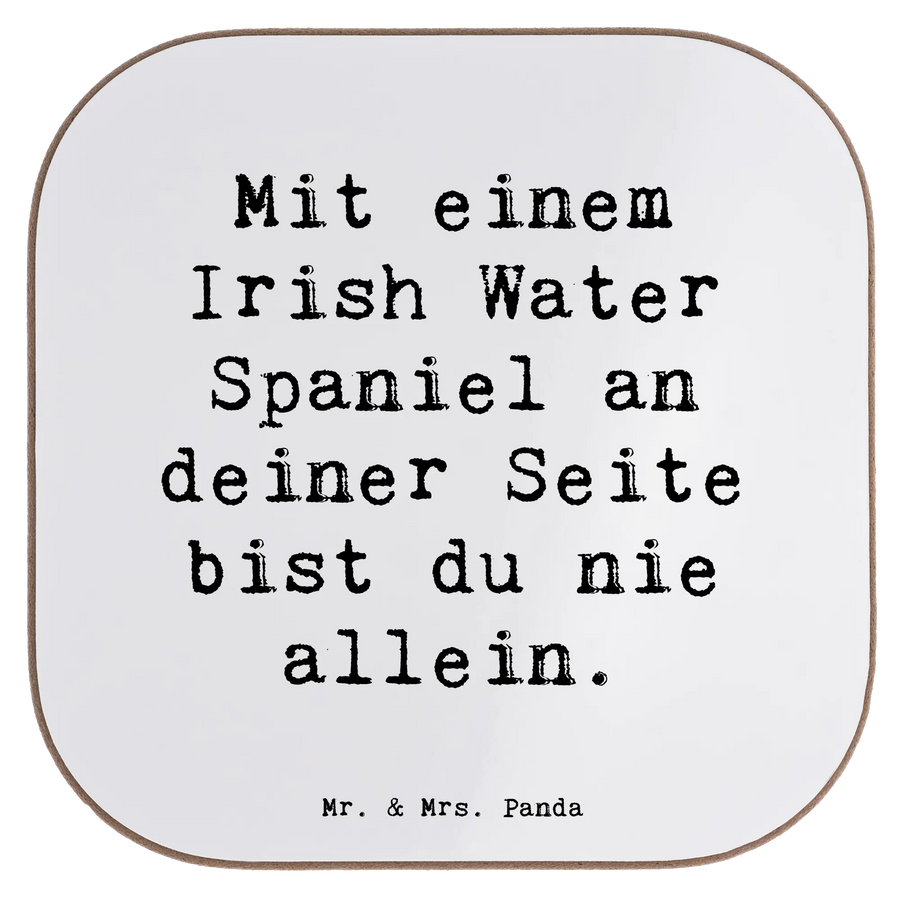 Square coaster Saying Mit einem Irish Water Spaniel an deiner Seite bist du nie allein. - White