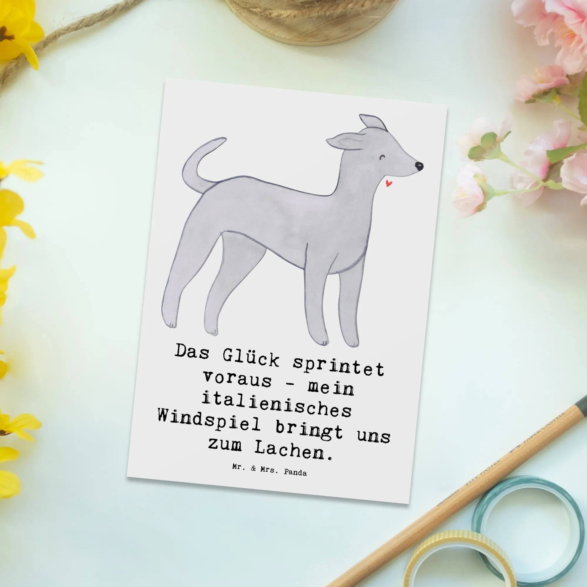 Postcard Das Glück sprintet voraus - mein italienisches Windspiel bringt uns zum Lachen. - White