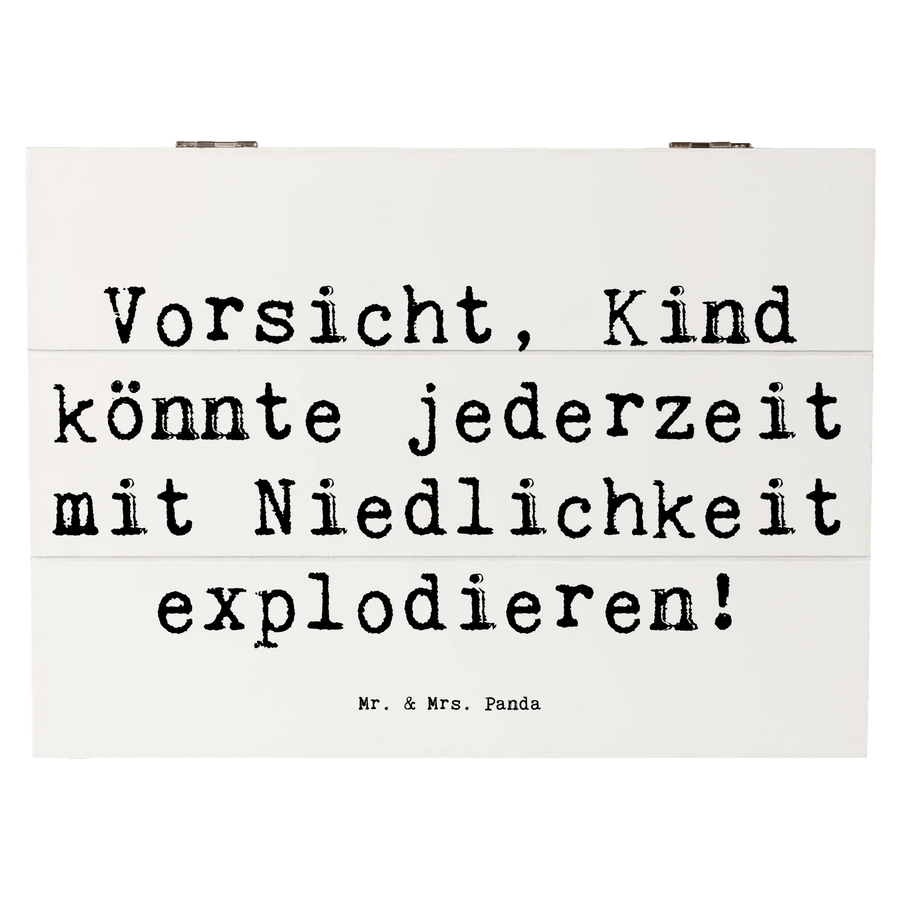 Wooden chest Saying Vorsicht, Kind könnte jederzeit mit Niedlichkeit explodieren! - 25 x 18 cm - White