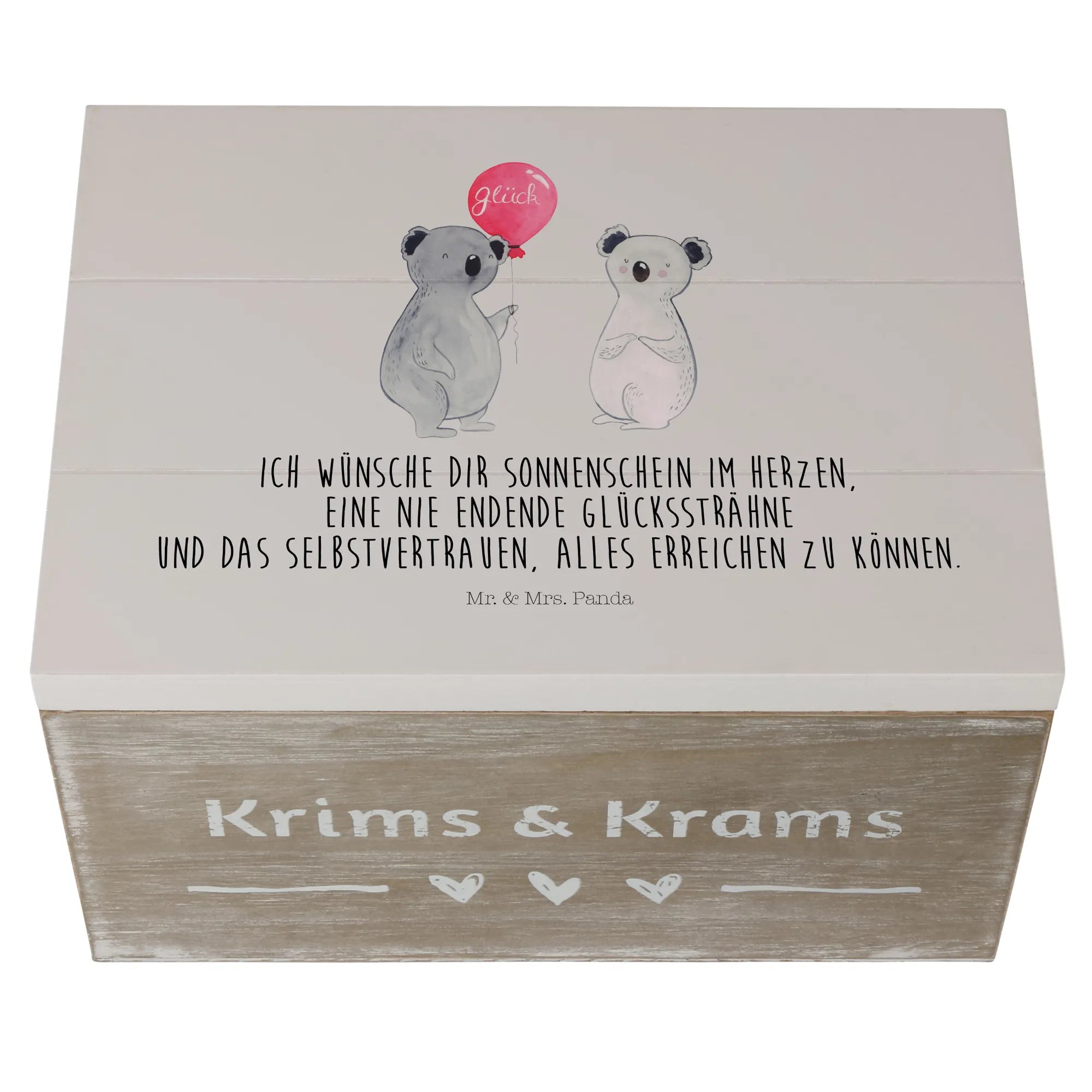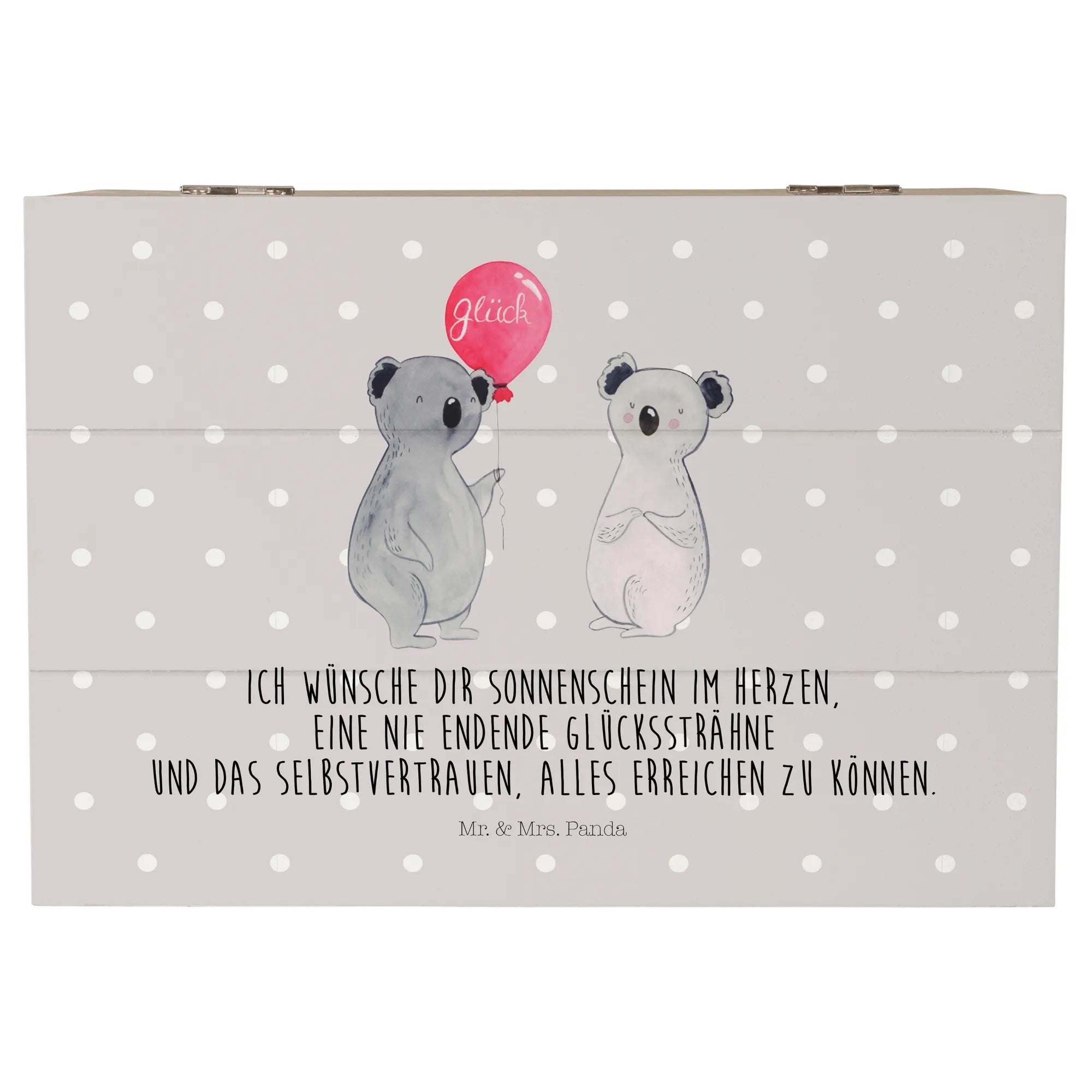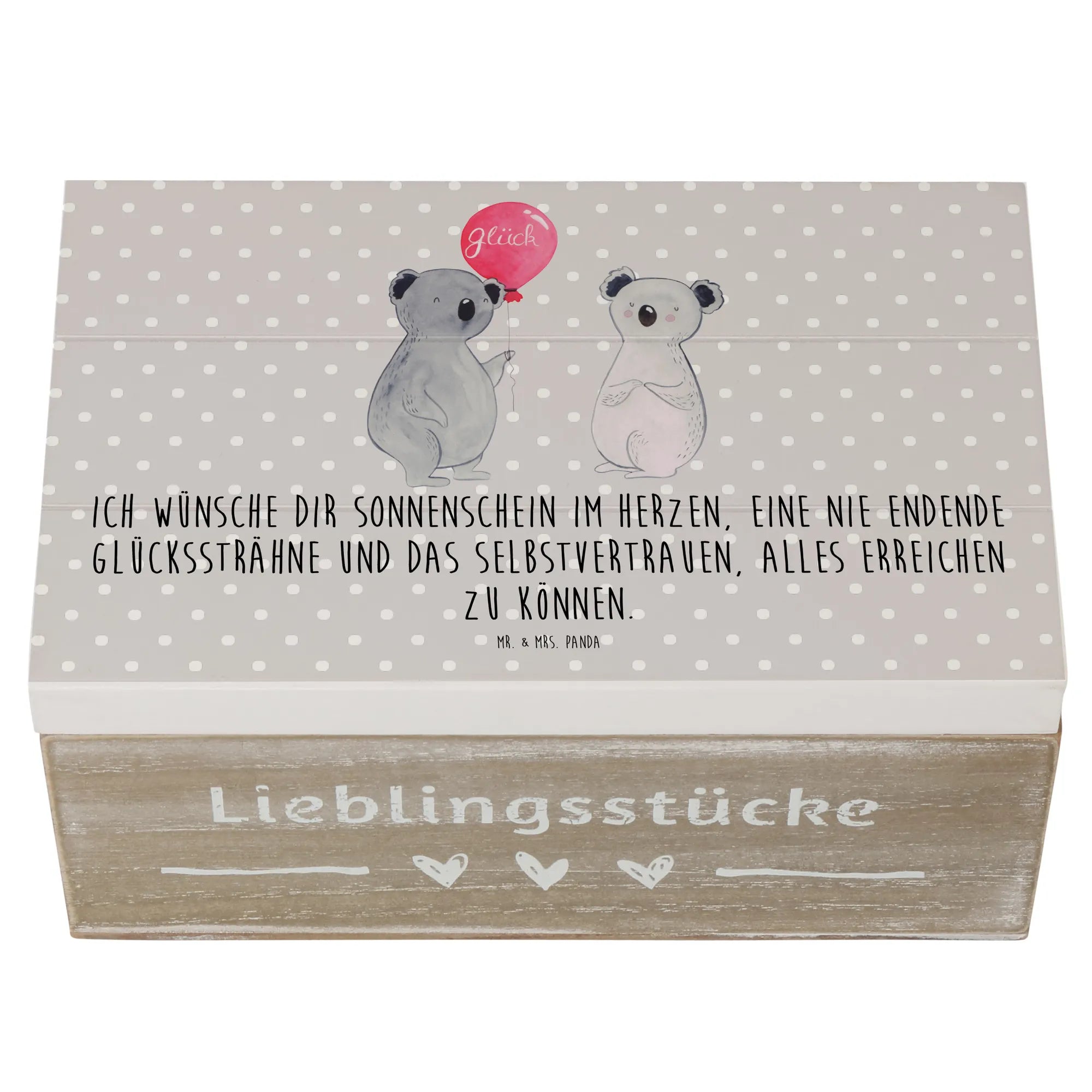 The Koala Balloon motif is more than just a design; it's a cheerful reminder to cherish life and spread happiness. The slogan "Ich wünsche dir Sonnenschein im Herzen, eine nie endende Glückssträhne und das Selbstvertrauen, alles erreichen zu können" is a beautiful sentiment that encapsulates the spirit of the Koala collection from Mr. & Mrs. Panda. Each piece is lovingly hand-drawn, ensuring that every box is unique and holds a special place in the hearts of its owners.