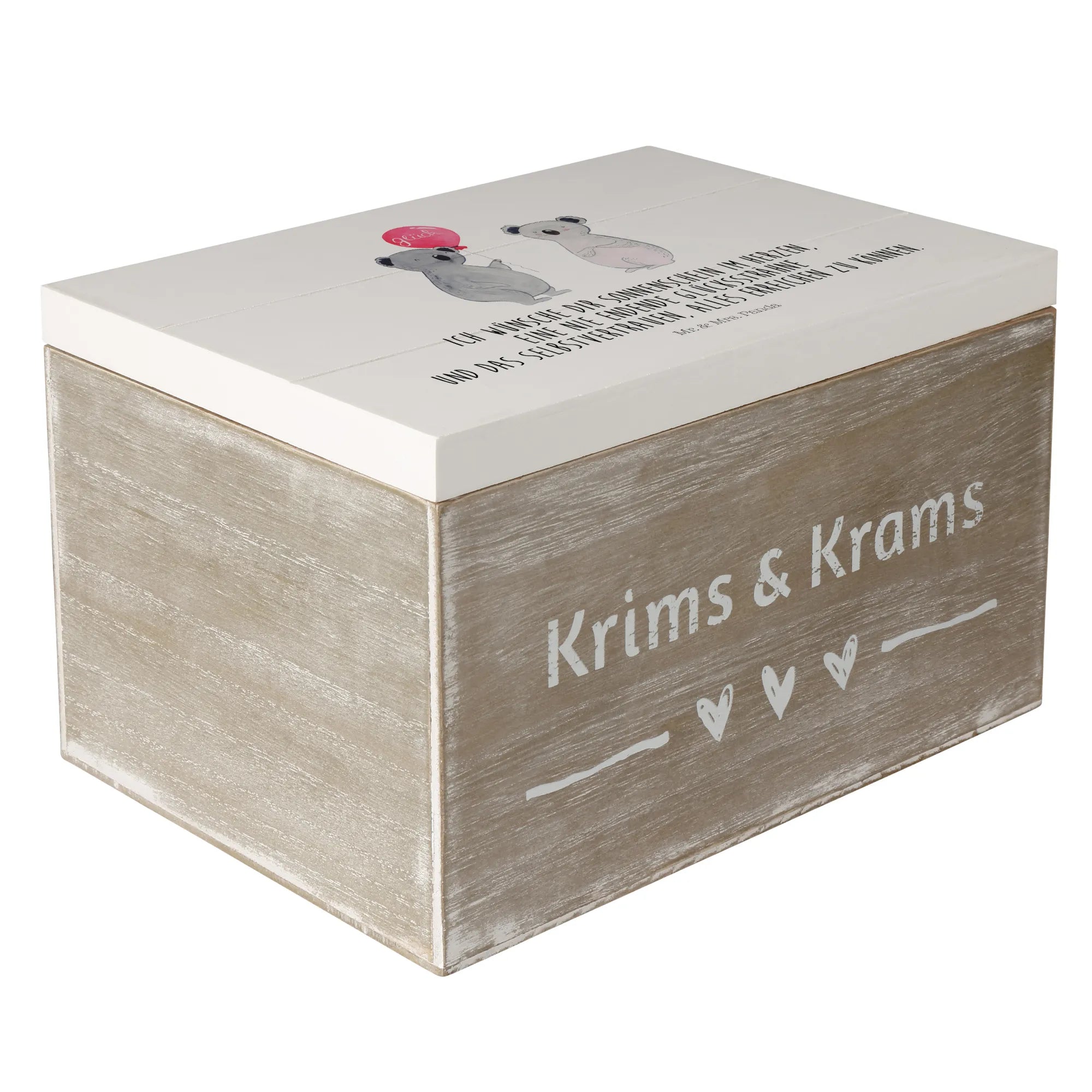 Wooden chest Koala bear balloon - 22 x 15 cm - with saying - White