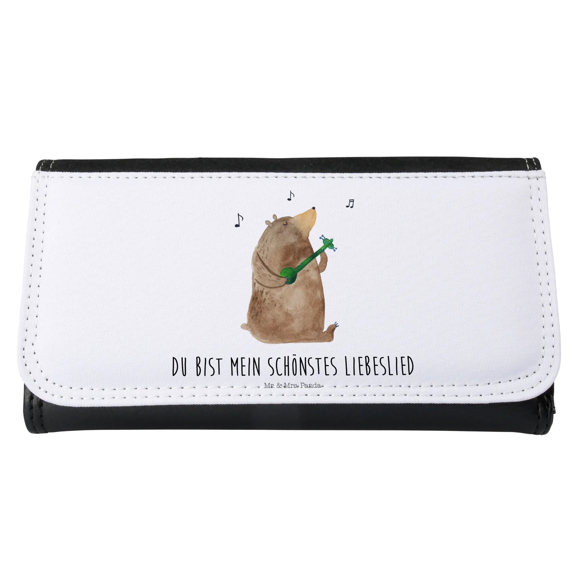 The Bear song motif is particularly special, depicting a cuddly bear playing a sweet melody on his guitar, symbolizing love, joy, and harmony. The slogan "Du bist mein schönstes Liebeslied" translates to "You are my most beautiful love song," adding an extra touch of romance. Imagine gifting this to your loved one! Just picture her delight as she opens the beautifully wrapped present, revealing a purse that embodies your feelings.