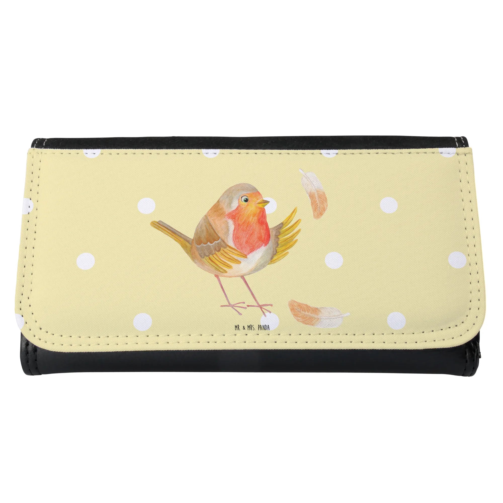 Ladies purse robin feathers - with a saying - Yellow Pastel