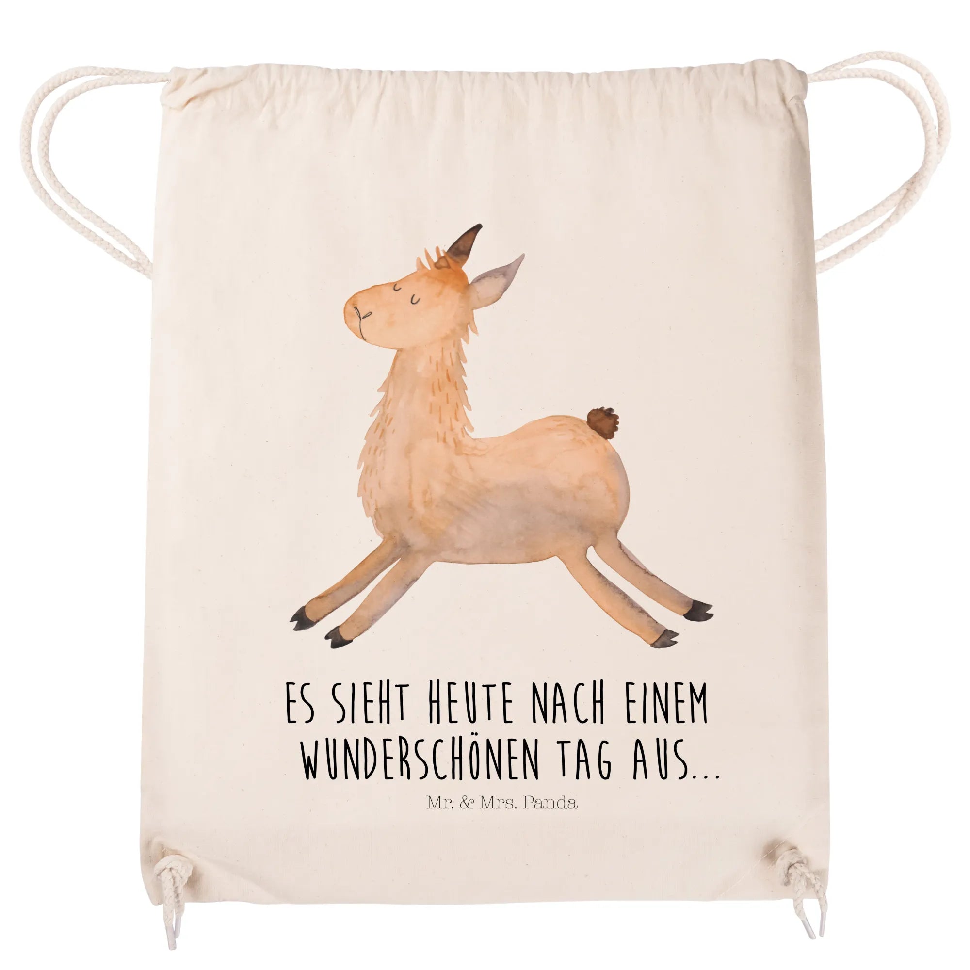 Ein leichter, handbedruckter Sportbeutel aus der Lama - Kollektion von Mr. & Mrs. Panda – voller guter Laune und liebevoller Details. Hol dir dein Lama und starte fröhlich in den Tag! 🦙✨