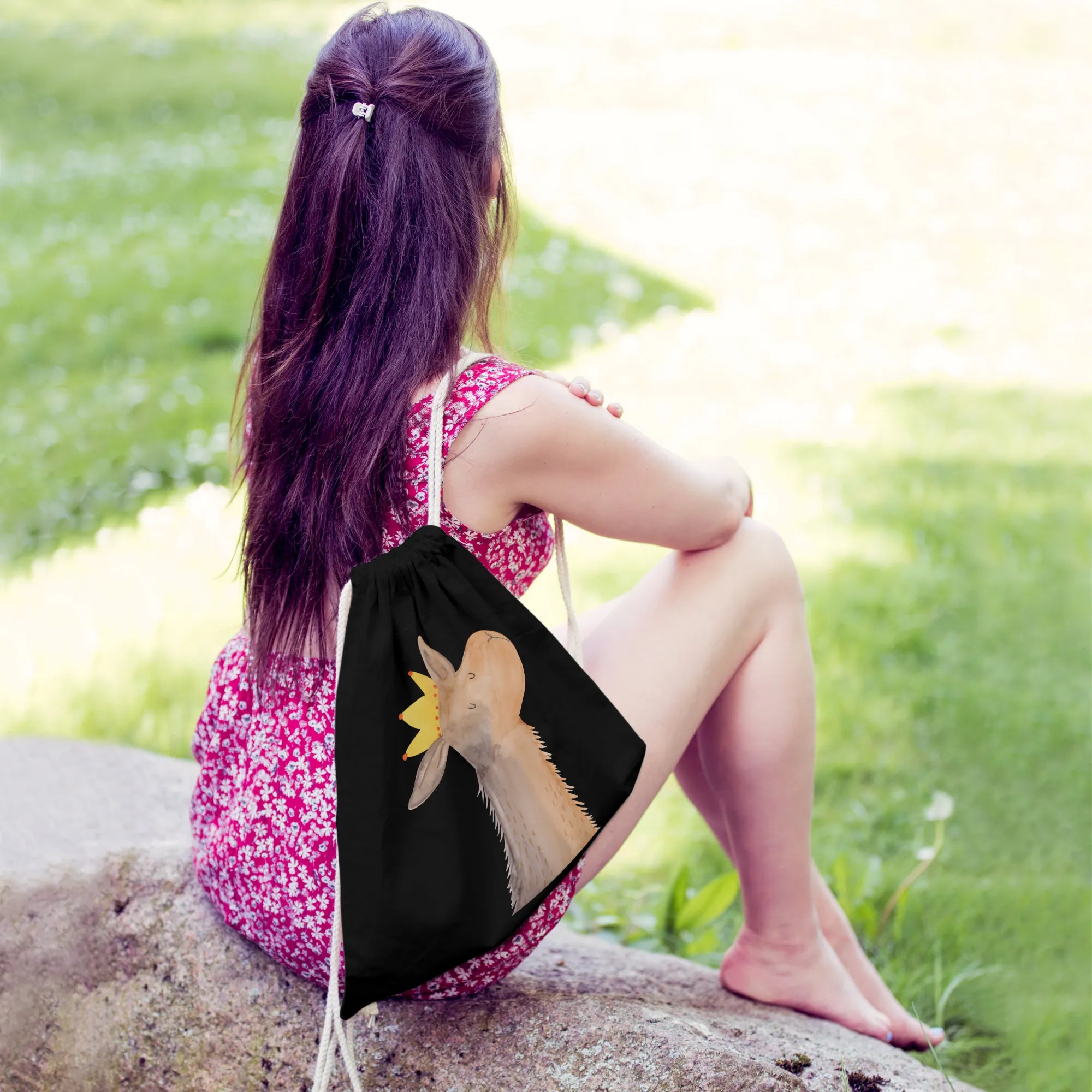 Drawstring bag llama head king - with a saying - Transparent