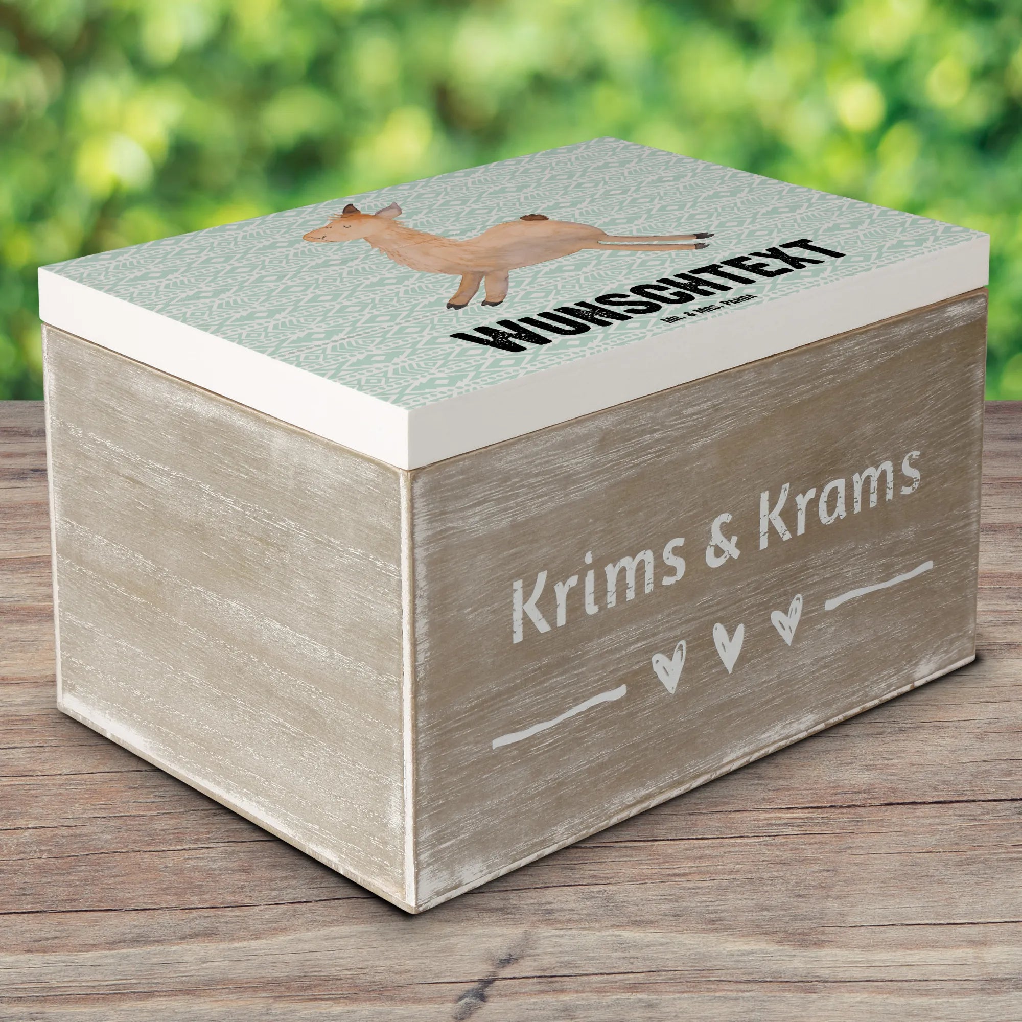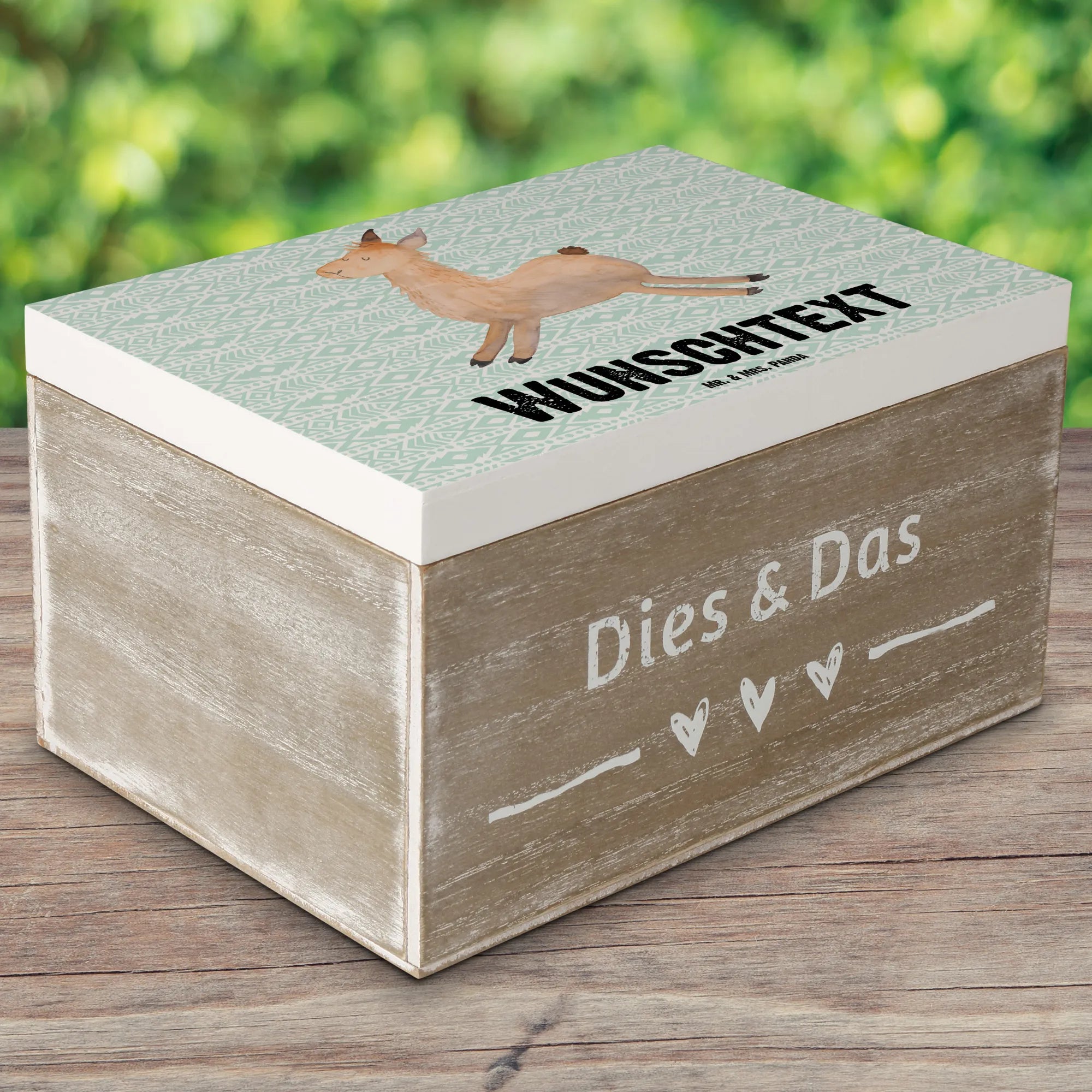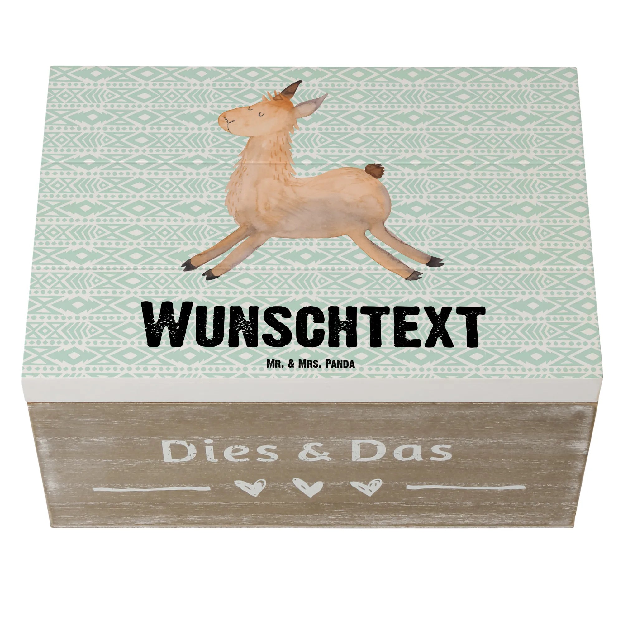 Personalised wooden chest lama Jump - 22 x 15 cm - Aztec blue