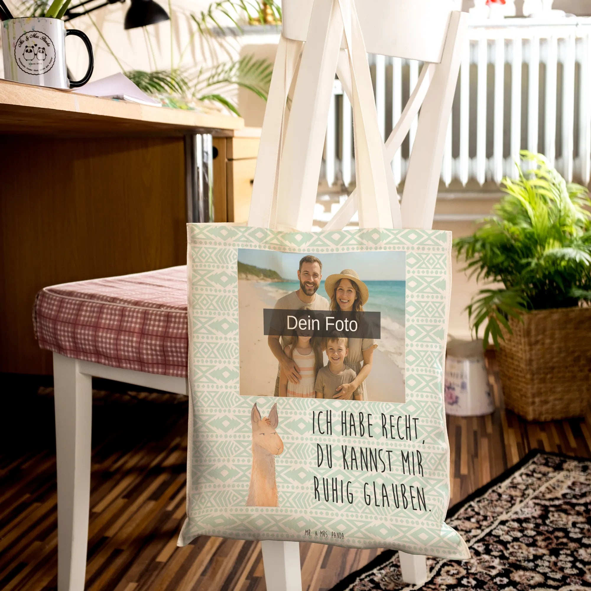Personalisierte Foto Einkaufstasche Lamakopf Genervt