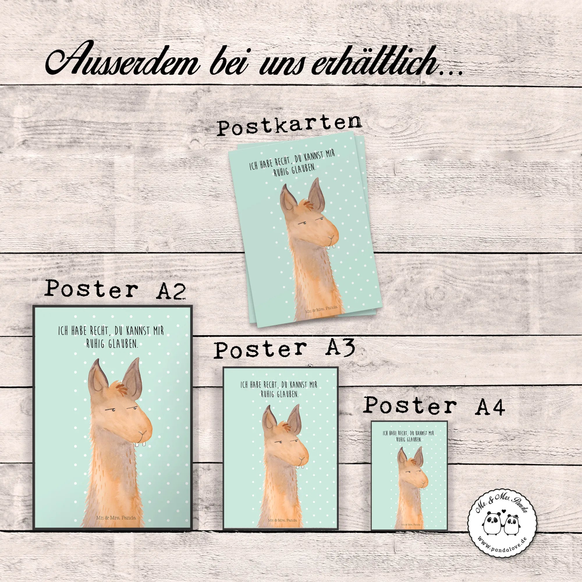 Here's our adorable llama, turning its head in that classic expression of playful annoyance! With a gentle reminder, 'Ich habe Recht, du kannst mir ruhig glauben,' it embodies all those moments when we confidently assert what we know. Whether you're navigating a debate with a partner or dealing with office mischief from your boss, this llama is like a little cheerleader for your beliefs.