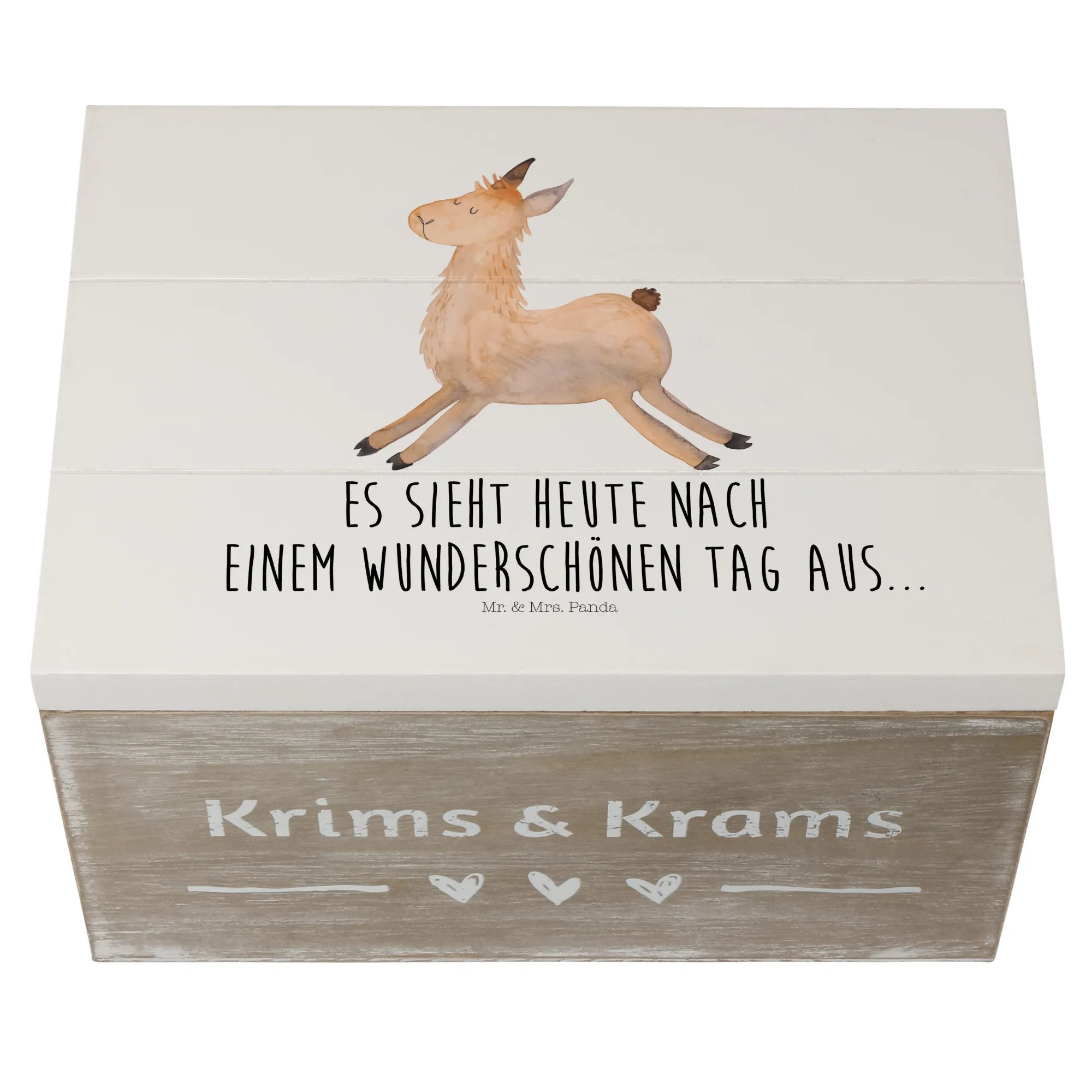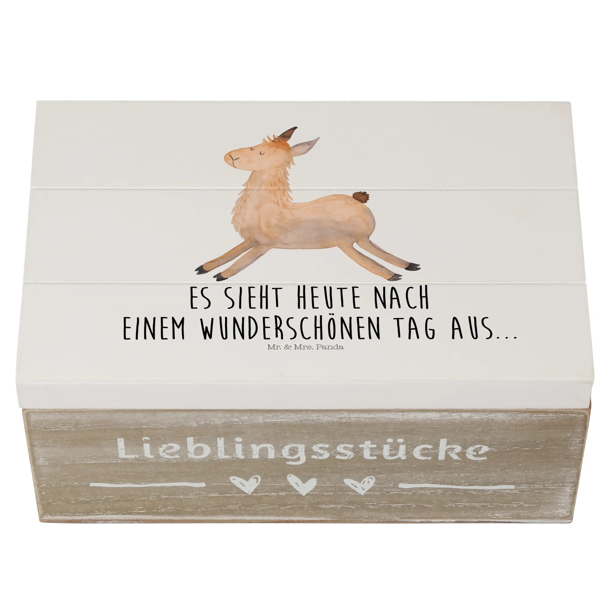 Whether it's for a graduation, a new start, or just a day full of happiness, this casket is designed to store your favourite keepsakes. Perfect for children reminiscing about their childhood adventures or adults wanting to keep their memorable photos safe, it suits all ages! With its motivational design, you can be reminded daily that "Today looks like a wonderful day..." featuring our lovable llama that sparkles with joy. Each llama motif is carefully hand-drawn by Mrs. Panda, ensuring that each treasure chest is unique and full of character.