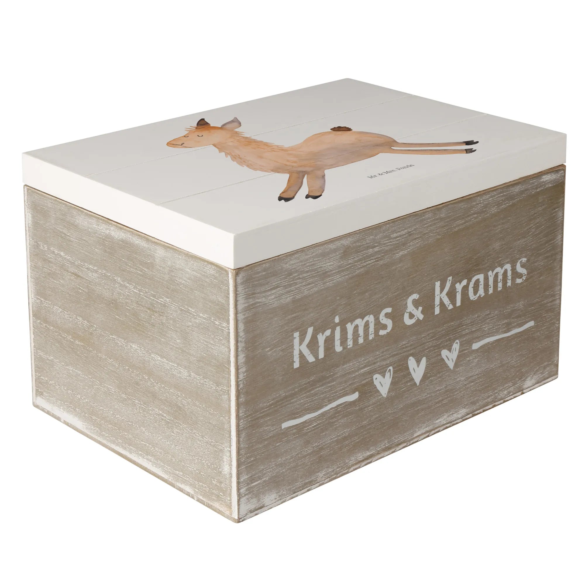If you're searching for a delightful gift that captures joy and brings unspeakable happy vibes, look no further than our charming Wooden Chest featuring a jumping llama from the exclusive Lama Collection by Mr. & Mrs. Panda! This beautiful treasure chest, measuring 19x12cm, is not only trendy but also practical, making it the perfect storage box for all your precious memories.