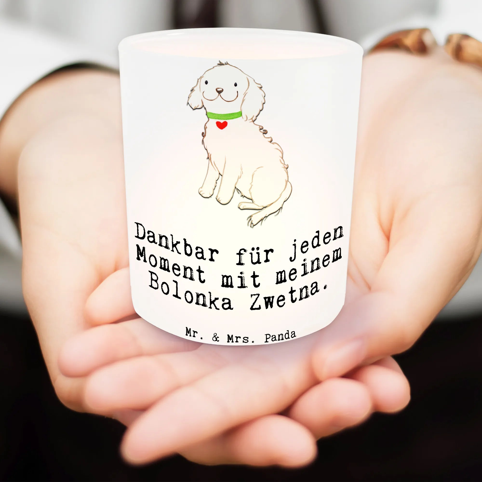 Our Bolonka Zwetna is the epitome of joy wrapped in fluff! With its lively expression and cute green collar adorned with a heart pendant, this playful pup brings smiles wherever they go. The slogan 'Dankbar für jeden Moment mit meinem Bolonka Zwetna' resonates deeply as it reminds us to appreciate the joy these little companions bring to our lives. Every wagging tail, every playful nudge, and every satisfied sigh becomes a cherished memory. In a world that sometimes feels rushed, our Bolonka Zwetna exemplifies how to take a moment to enjoy the simpler things—like a sunny day outside or cozy cuddles on the couch. Let’s celebrate those everyday moments filled with love and laughter, because each second with them is a reason to be thankful. So grab that leash, enjoy the fresh air, and celebrate life’s little adventures with your unique Bolonka Zwetna!
