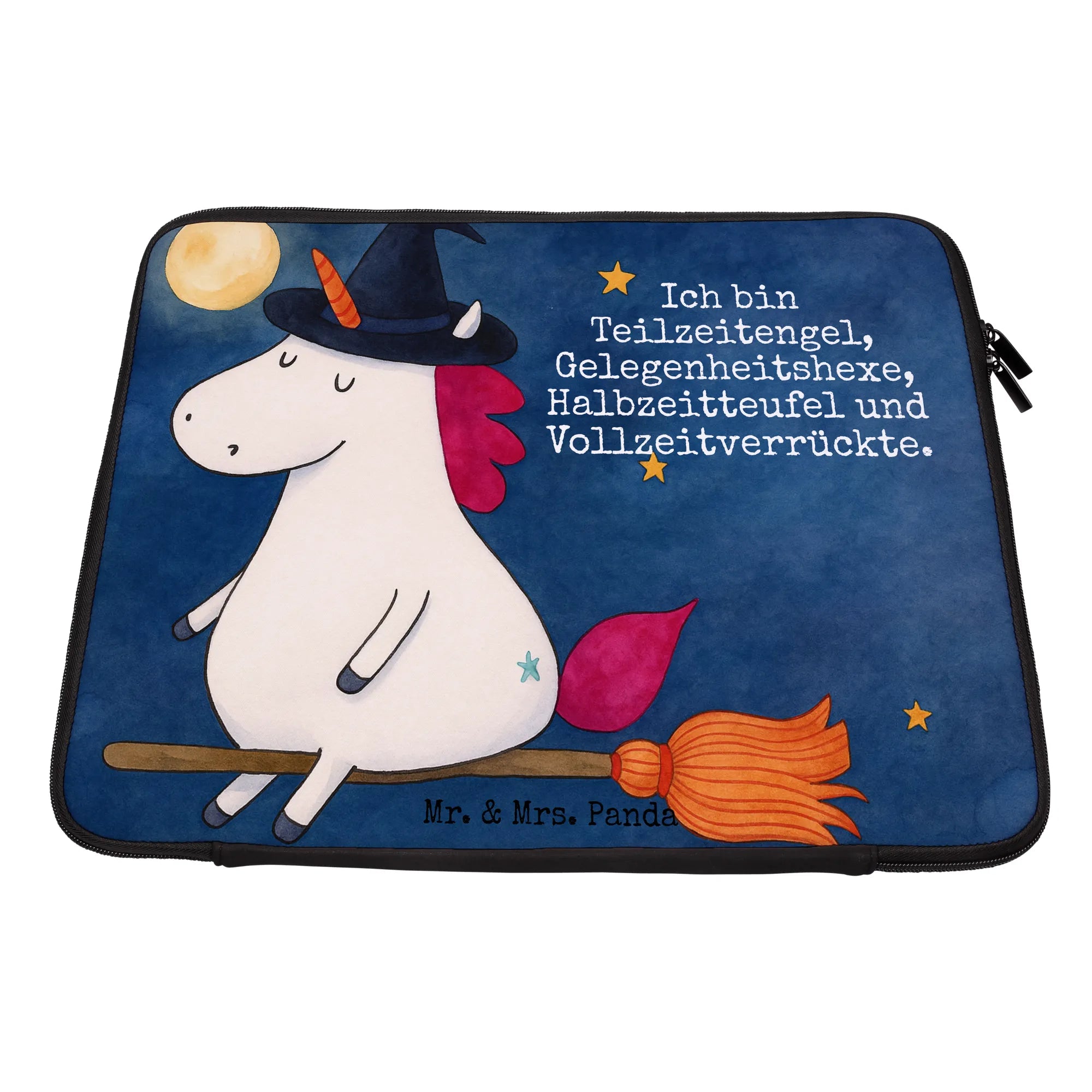 Unsere Mr. & Mrs. Panda Notebook Tasche „Einhorn Hexe“ ist mehr als nur eine Laptoptasche – sie ist ein Statement. Das süße Hexen-Einhorn mit Besen und Hexenhut und der freche Spruch „Ich bin Teilzeitengel, Gelegenheitshexe, Halbzeitteufel und Vollzeitverrückte.“ machen diese Laptop-Hülle zum perfekten Begleiter für alle, die mit Humor durchs Leben gehen.