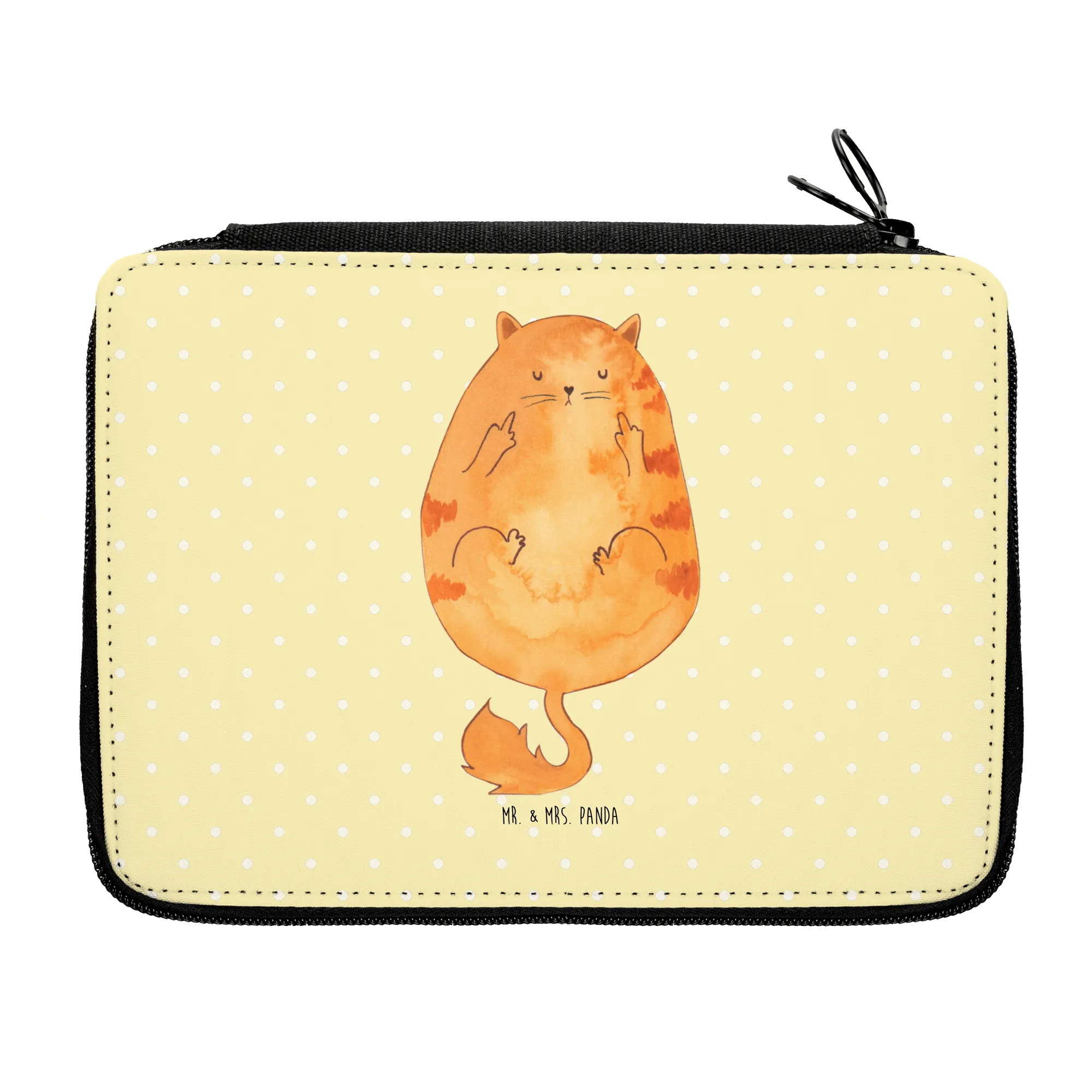 Introducing the delightful Cat Rise and Shine Leather Folder from the charming Mr. & Mrs. Panda collection! This isn't merely a pencil case; it's an enchanting blend of functionality and whimsy designed especially for cat lovers and young pupils embarking on their educational journey.