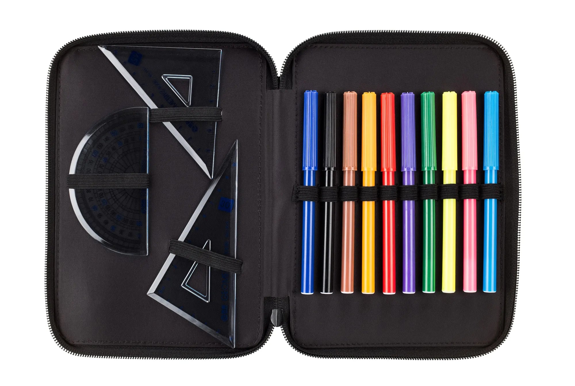 This leather folder is not only stylish but also incredibly functional. It comes completely stocked with vibrant colored pencils, felt-tip markers, standard pencils, a ruler, a rubber eraser, and a sharpener, making it a must-have for little pupils eager to tackle their school projects!