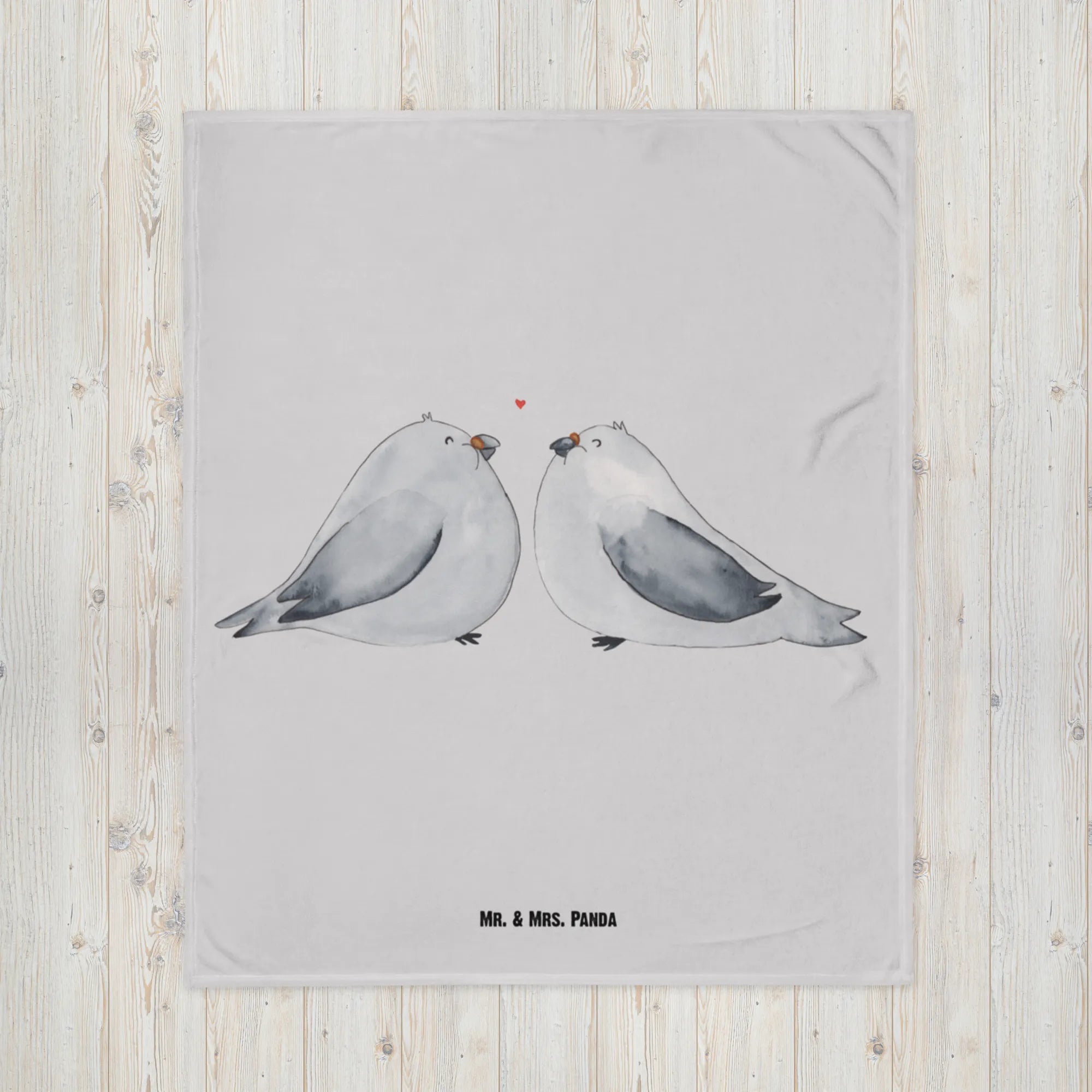 Baby blanket Turtledoves in love - with saying - Pastel Gray