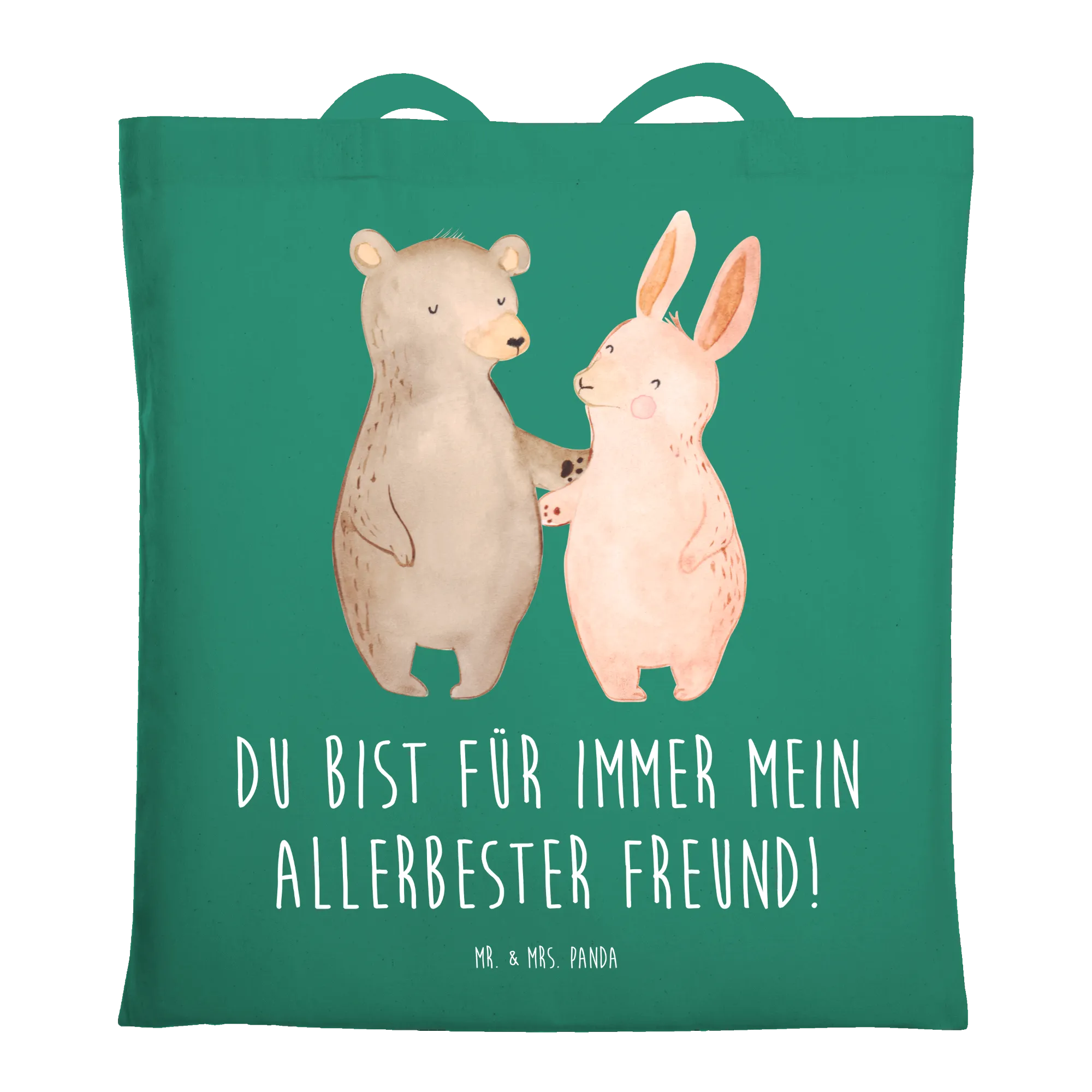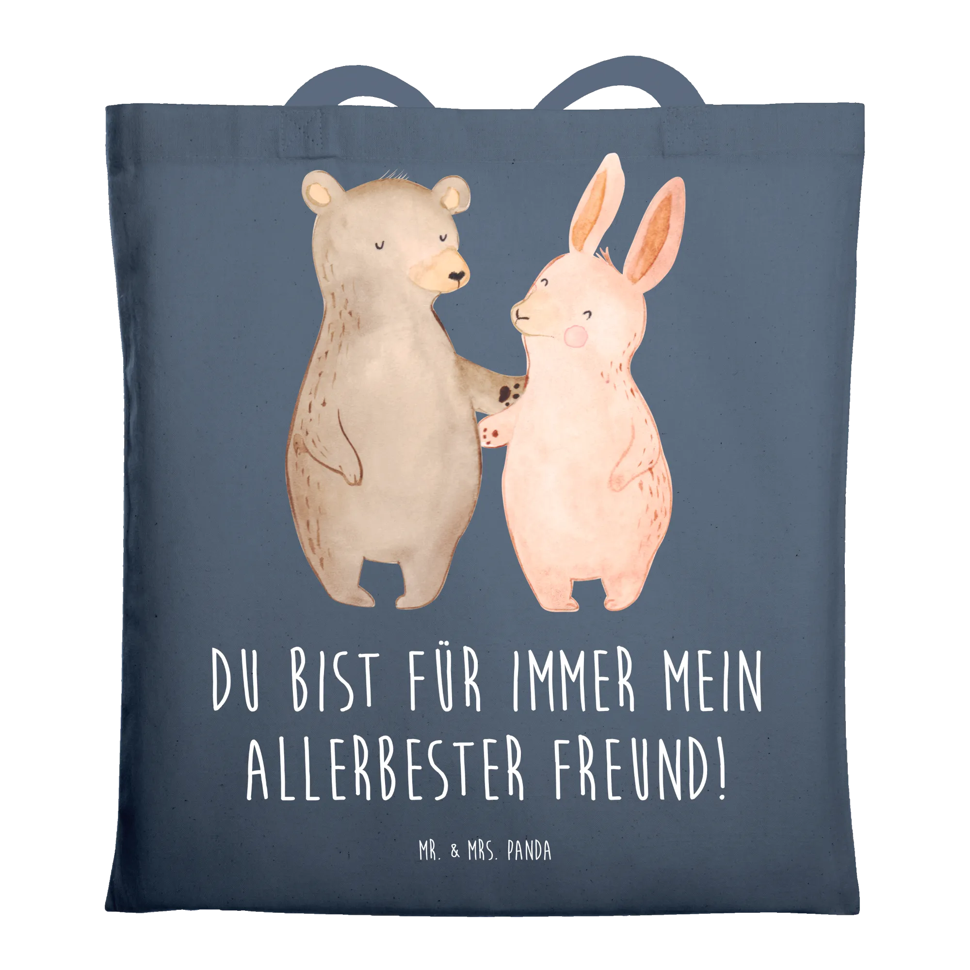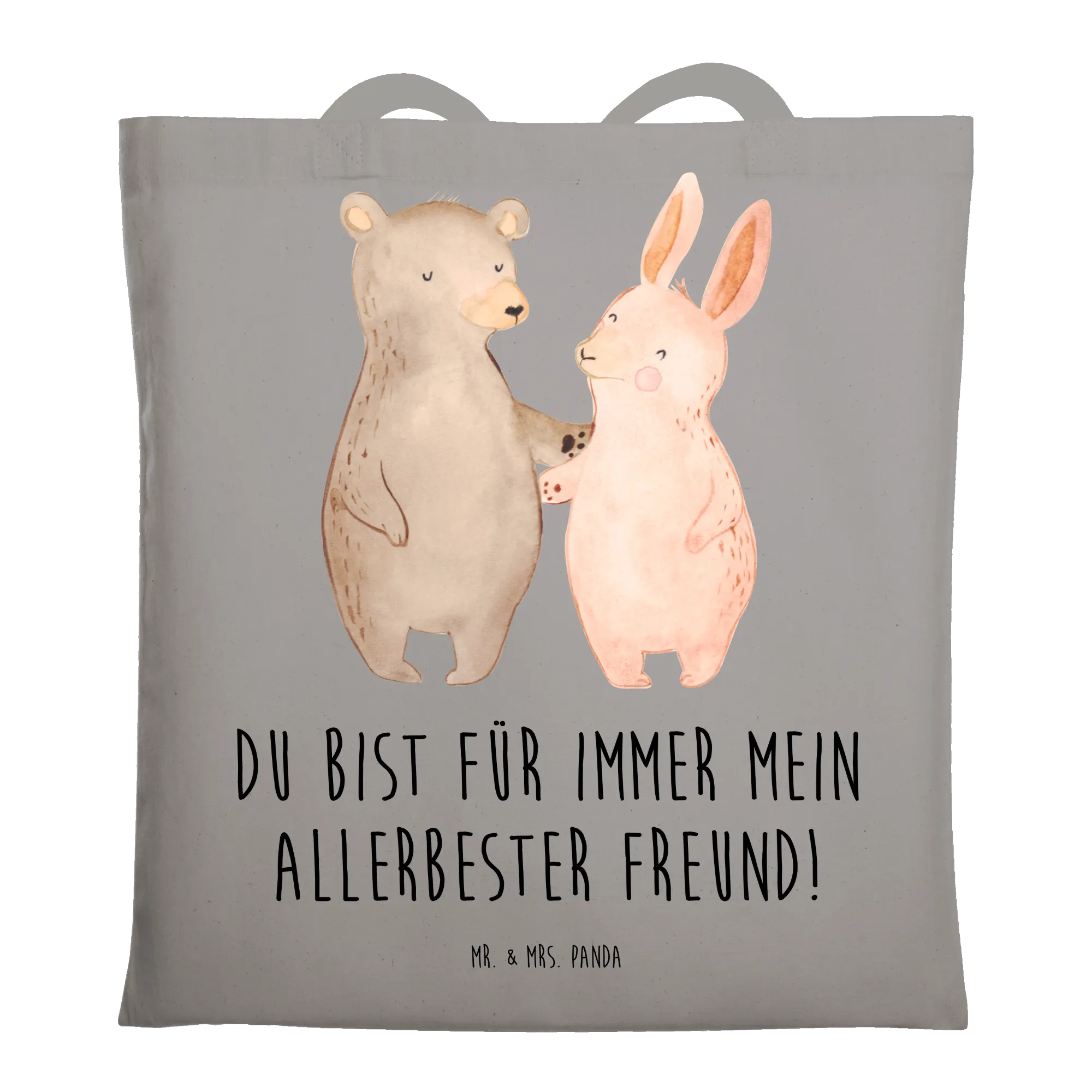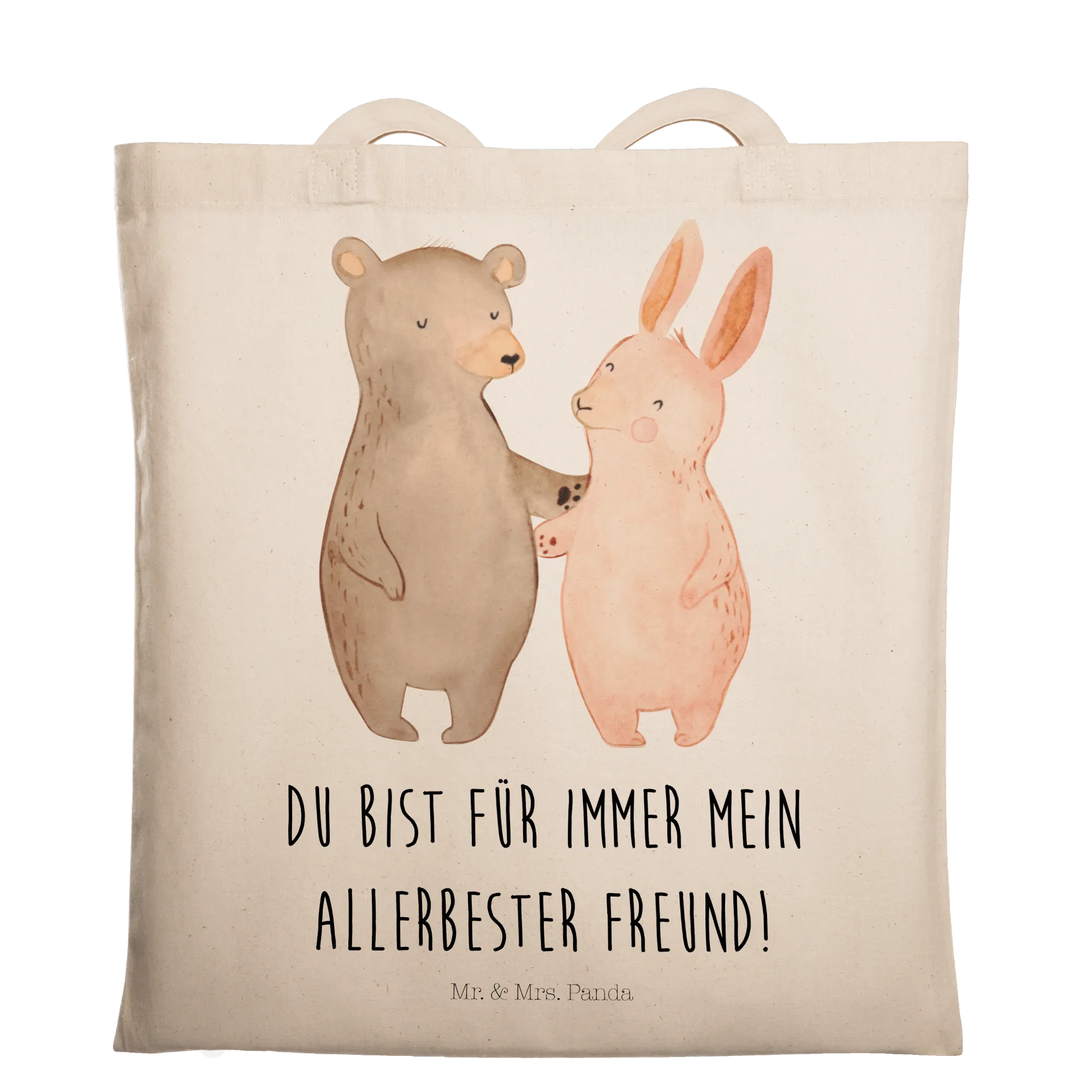 In diesem bezaubernden Motiv von Mr. & Mrs. Panda sehen wir einen Bär und einen Hase in inniger Umarmung vereint. Diese fröhliche Szene erinnert uns an die wahren Werte der Freundschaft und die Freude, die beste Freunde in unser Leben bringen. Die sanften Farben und die liebevollen Gesichtsausdrücke machen es zu einem perfekten Geschenk für jeden an deinem Herzen liegenden Freund oder Freundin. Der Spruch 'Du bist für immer mein allerbester Freund!' verströmt Wärme und Geborgenheit und zeigt, dass es nicht nur um das Teilen von Momenten geht, sondern um das Fühlen der Zuneigung, die niemals verblasst.