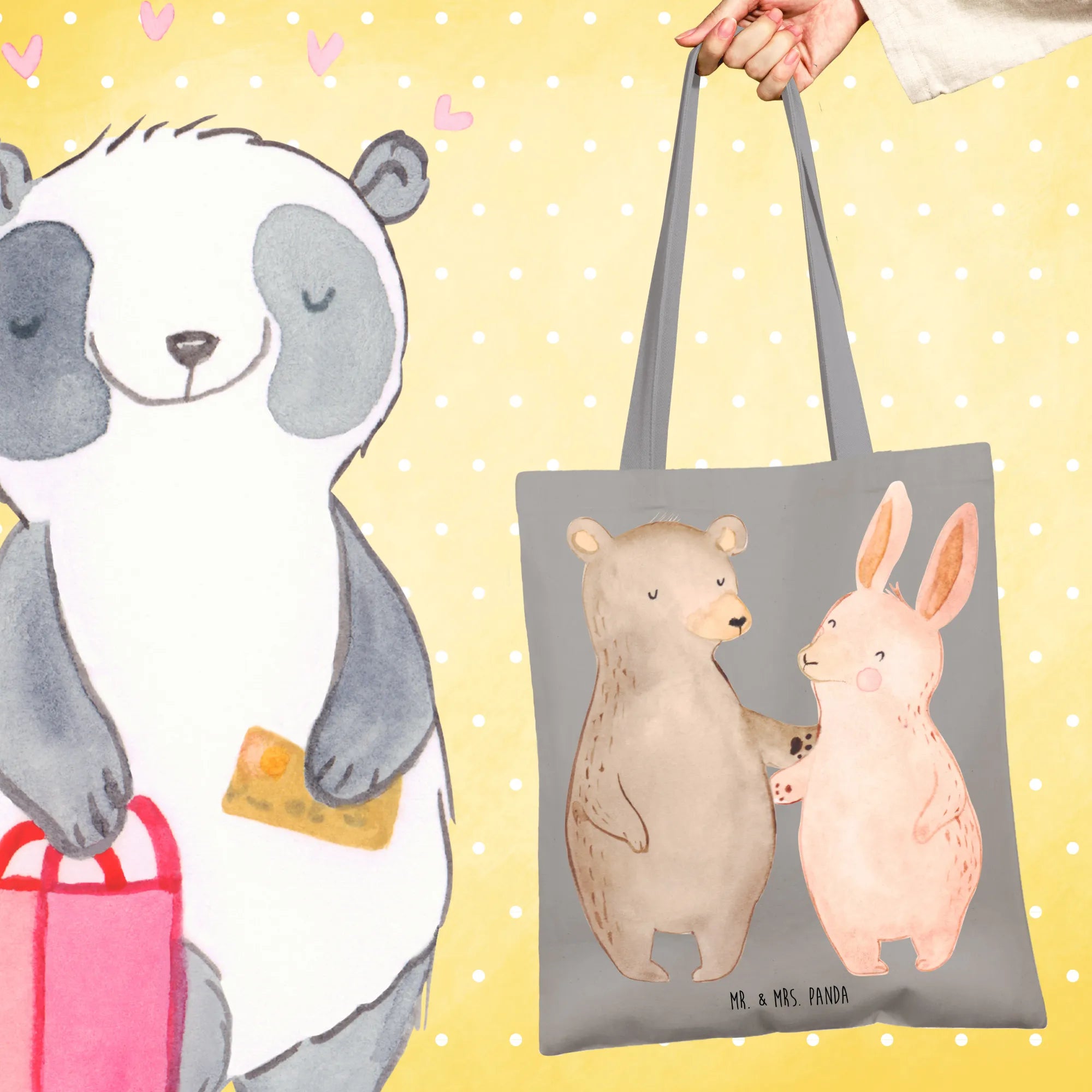 Erlebe die fröhliche Tragetasche von Mr. & Mrs. Panda – dein perfekter Einkaufspartner, der immer ein Lächeln auf dein Gesicht zaubert!