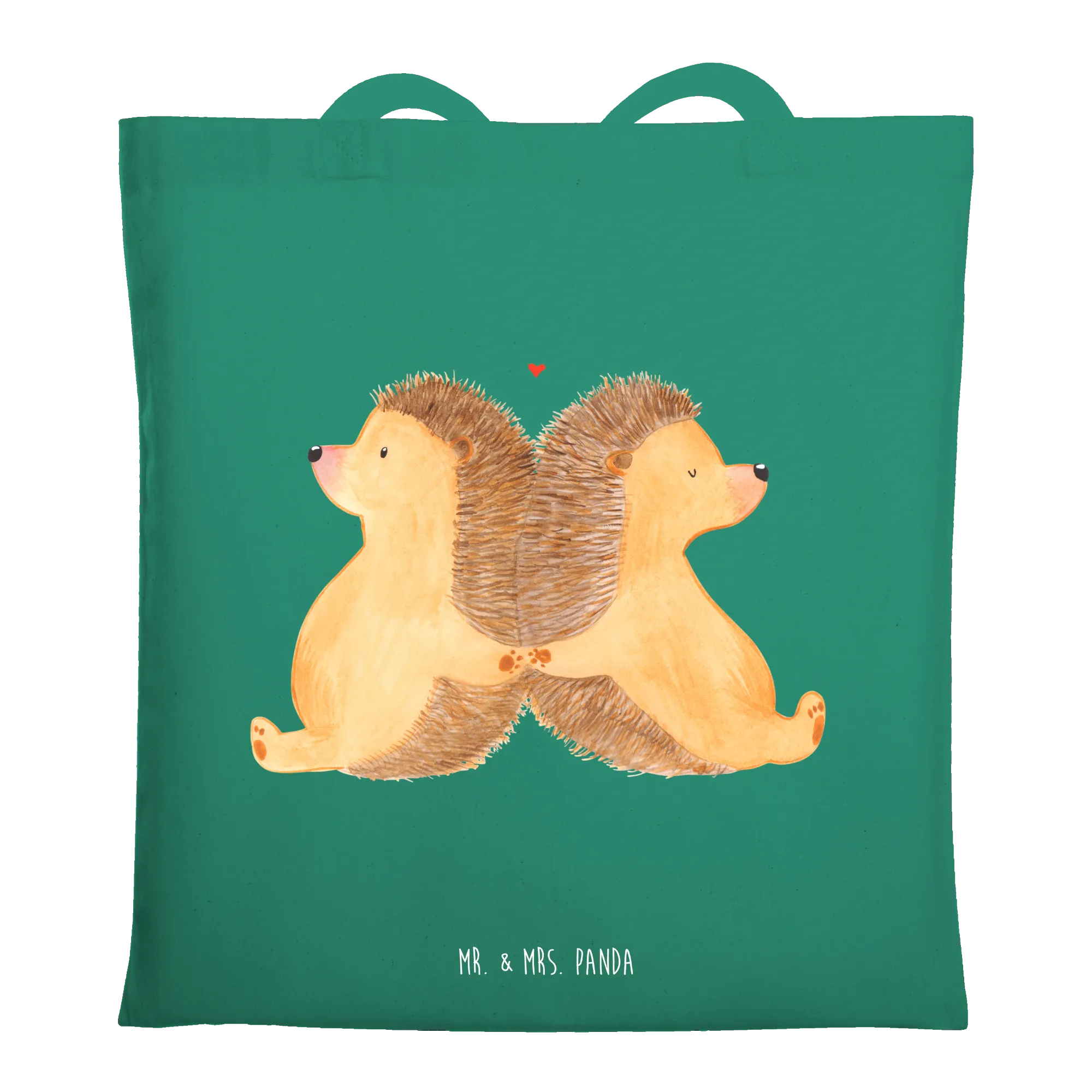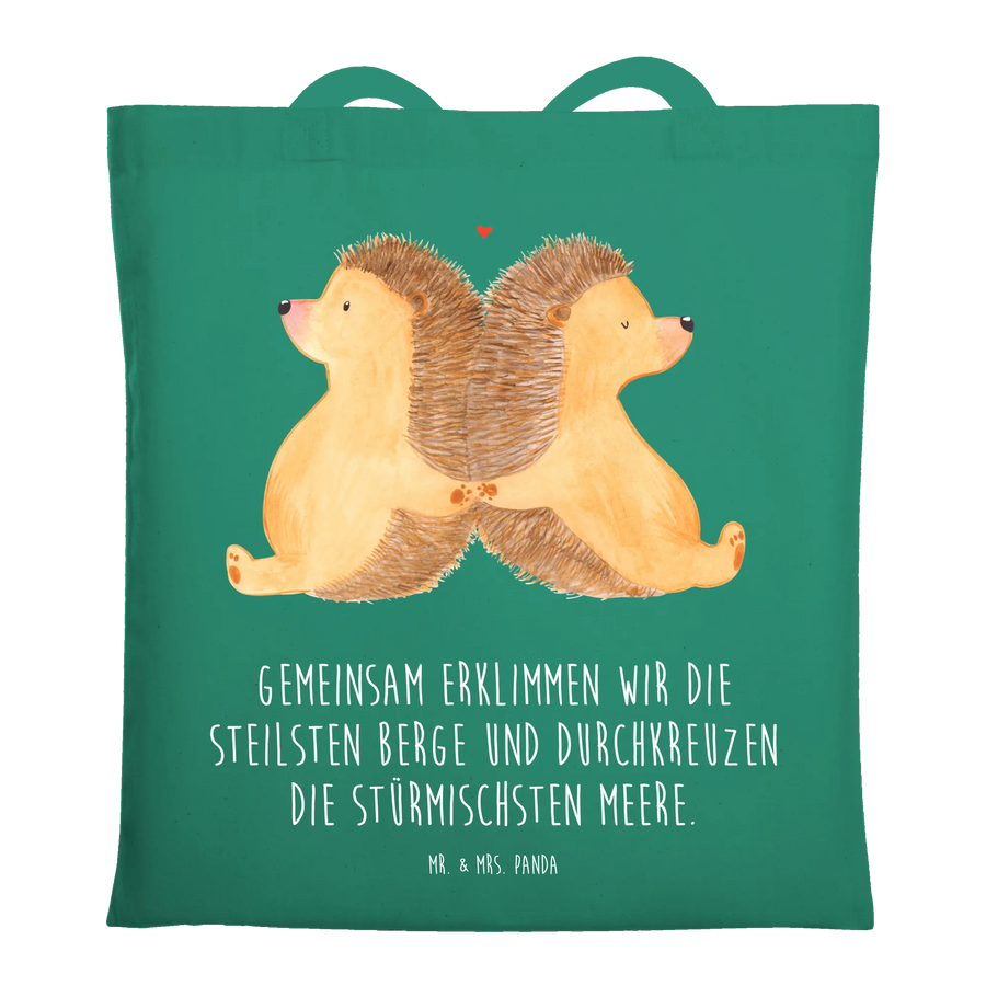 Tote bag Hedgehogs holding hands - with saying - Mint