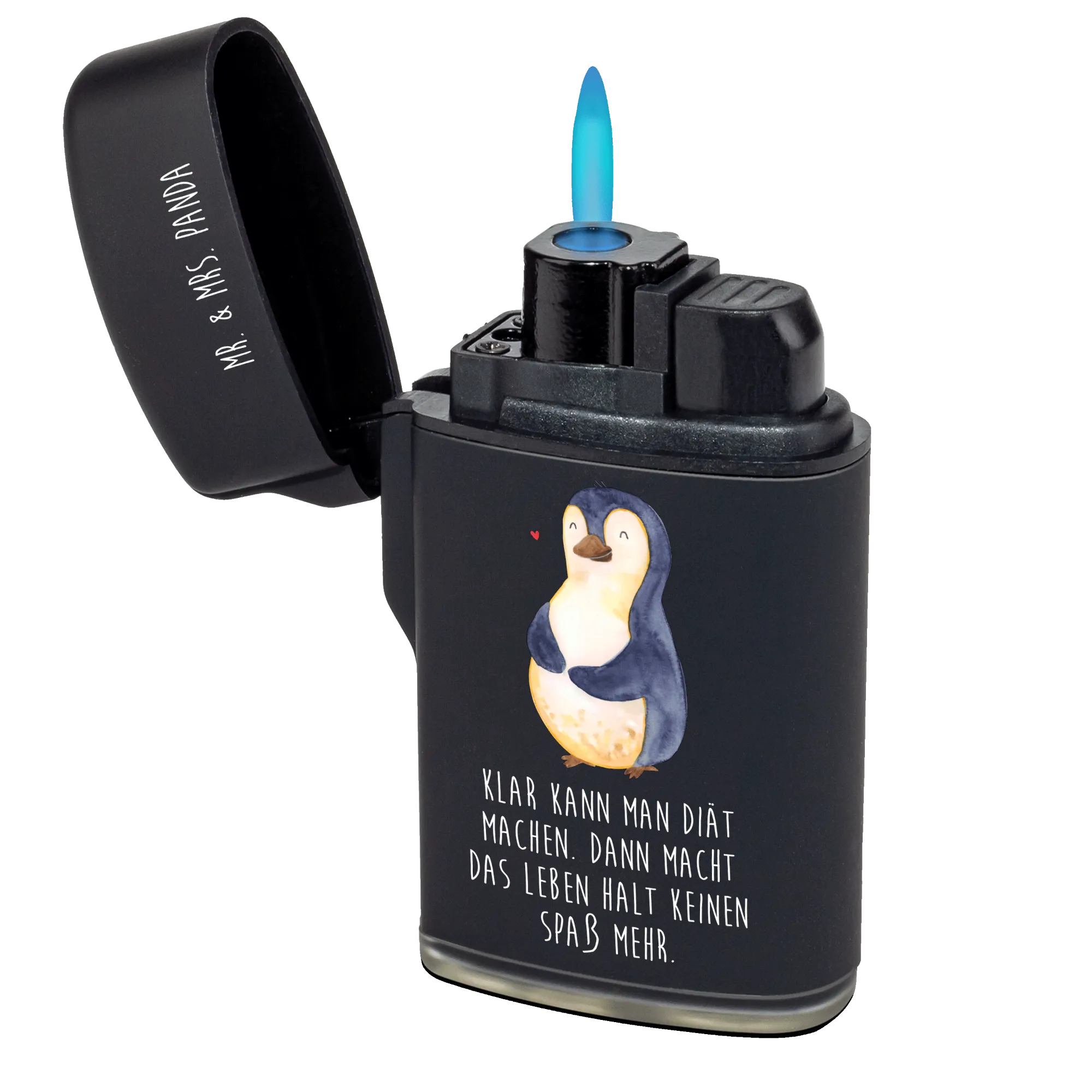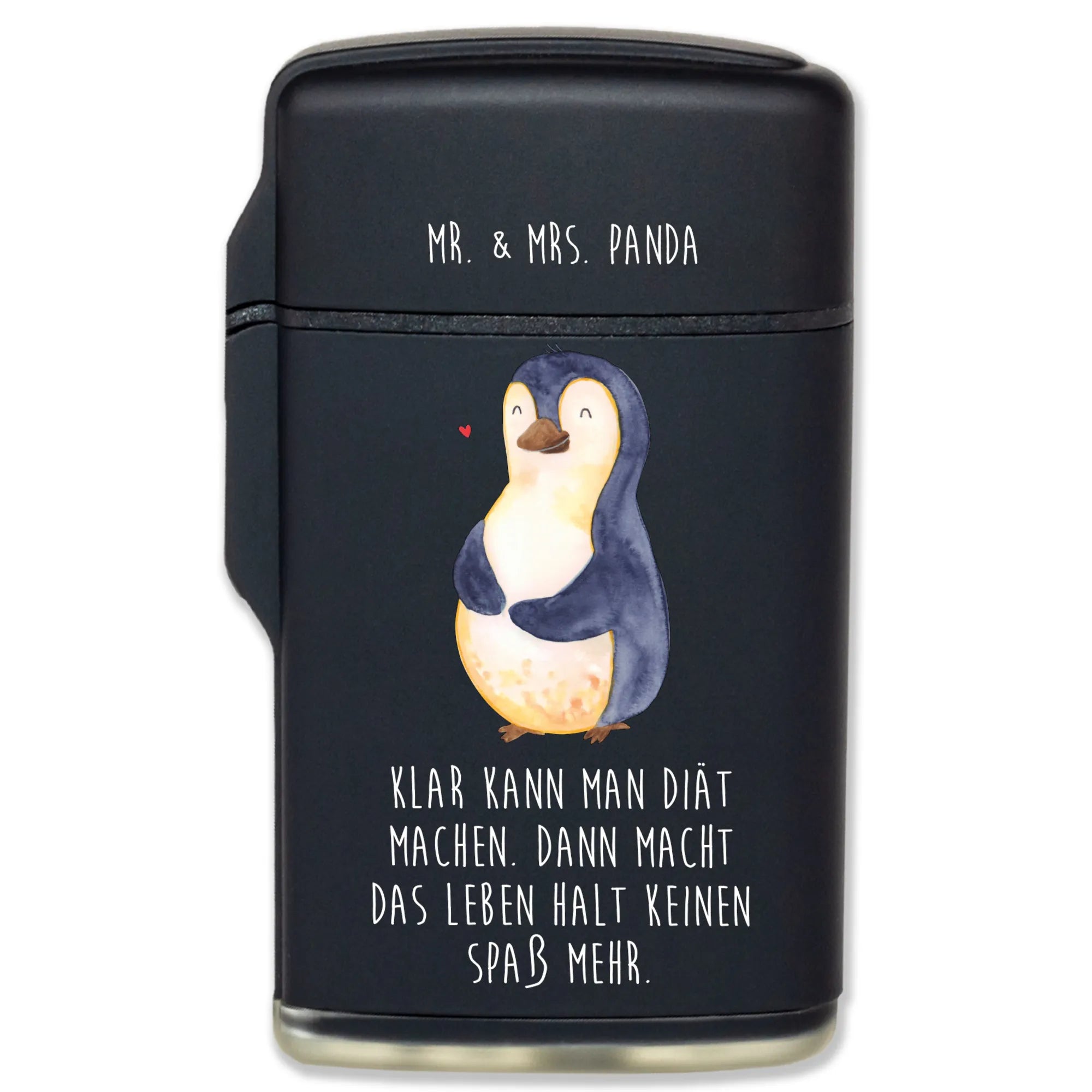 Introducing the delightful Penguin Diet Lighter from the charming Mr. & Mrs. Panda collection! This isn't just any lighter—it's a token of motivation and self-love, wrapped in a beautifully whimsical design. Perfect for anyone who enjoys a dash of humor in their everyday life, this unique lighter features an adorable penguin casually rubbing its plump belly, giving us all a gentle reminder that life is too short for strict diets and that a little fun is essential!