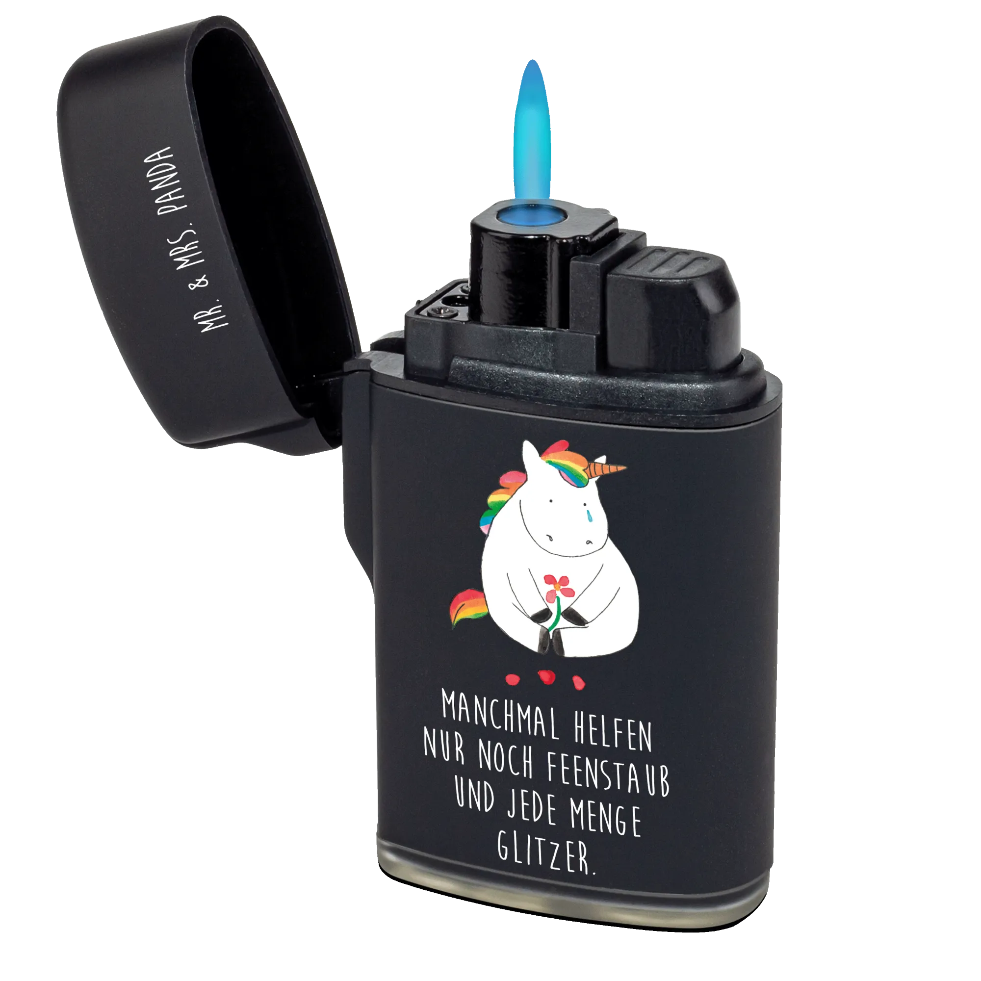Introducing the delightful Unicorn Sad Lighter from the exclusive Unicorn Collection by Mr. & Mrs. Panda! If you’re looking for a unique gift that’s perfect for friends who appreciate a touch of whimsy, this lighter is simply a must-have! As you hold it in your hand, you’ll immediately notice its sweet design—a sad little unicorn sitting on the ground, a tear in its eye, and a world of glitter that can brighten anyone’s day.