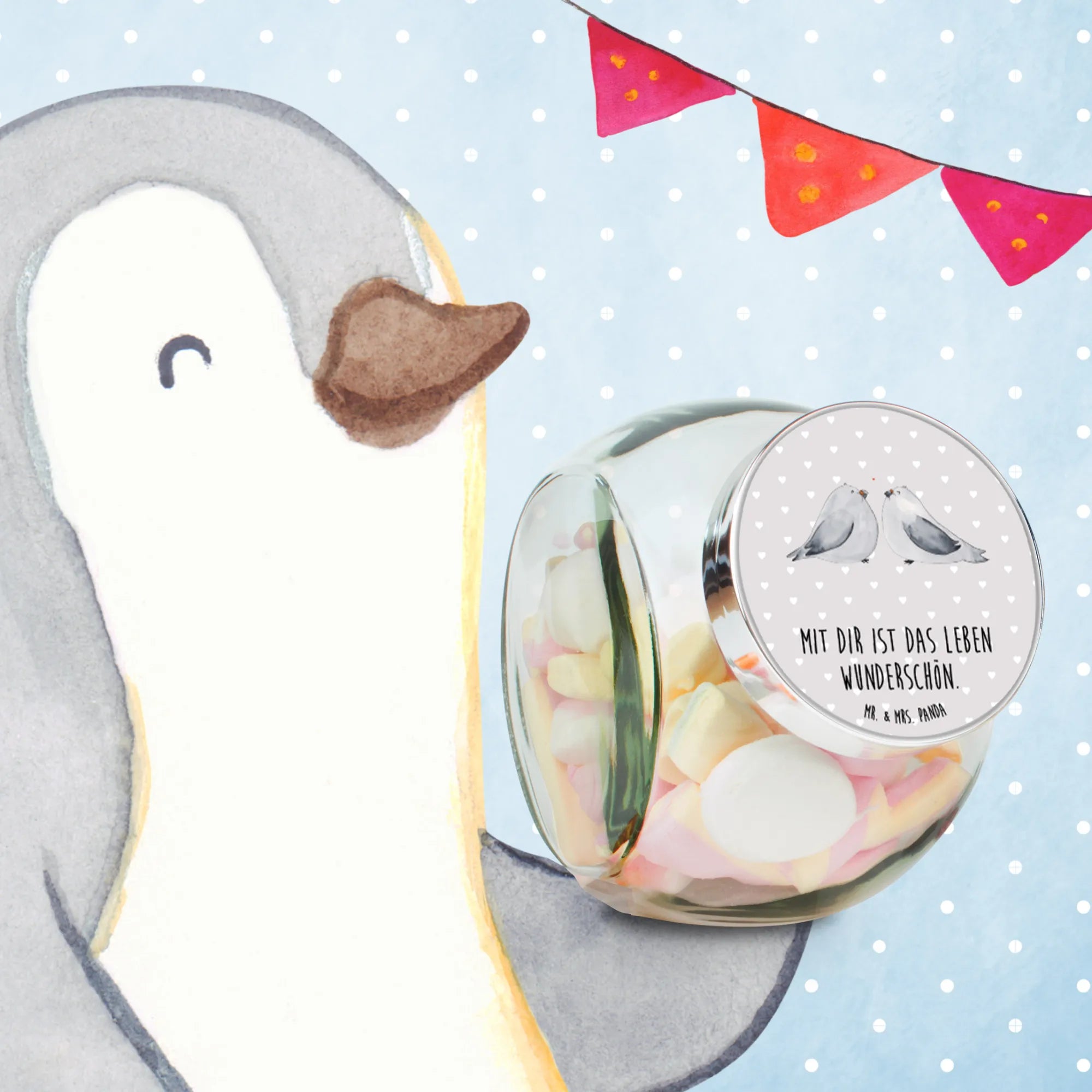 Are you on the lookout for a sweet and thoughtful gift that captures the essence of love? Look no further than our beautiful Candy Jar featuring the adorable Turtledoves in Love motif from the Mr. & Mrs. Panda Love collection! This delightful storage solution is perfect for storing all your favorite treats, from candies and cookies to coffee and tea, ensuring they stay fresh and full of flavor.