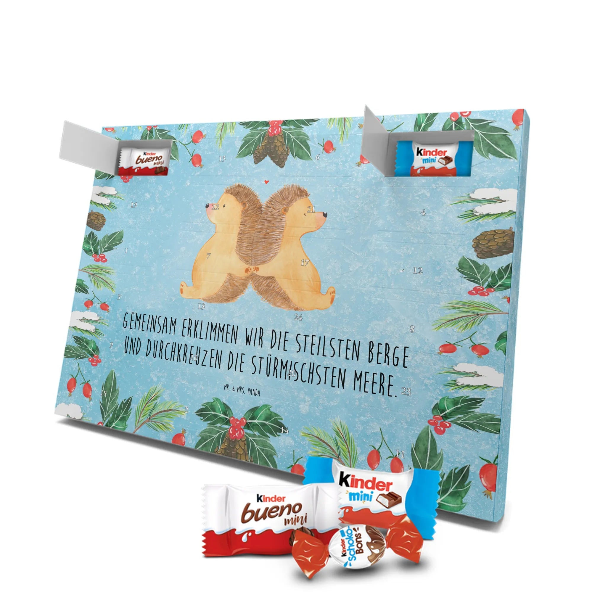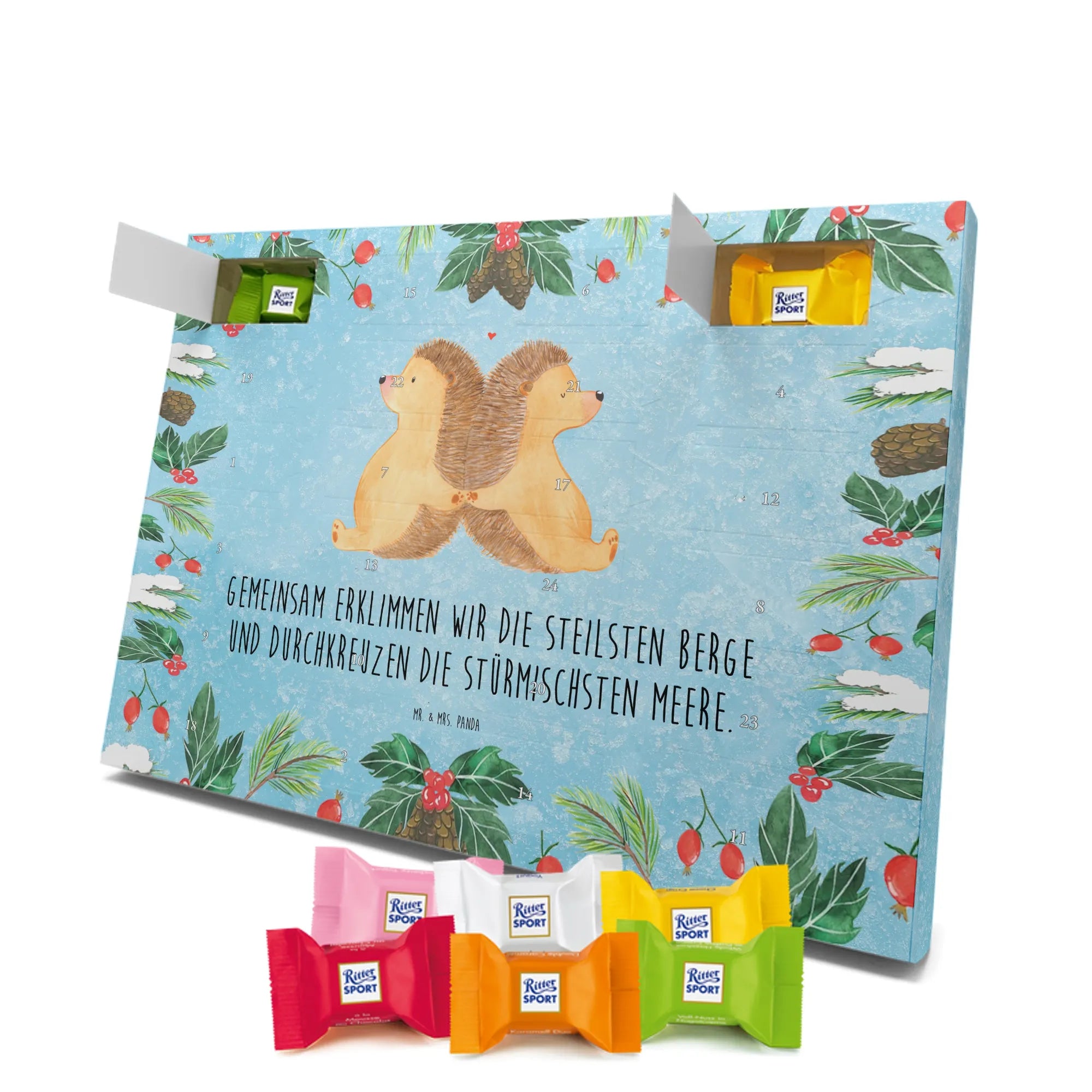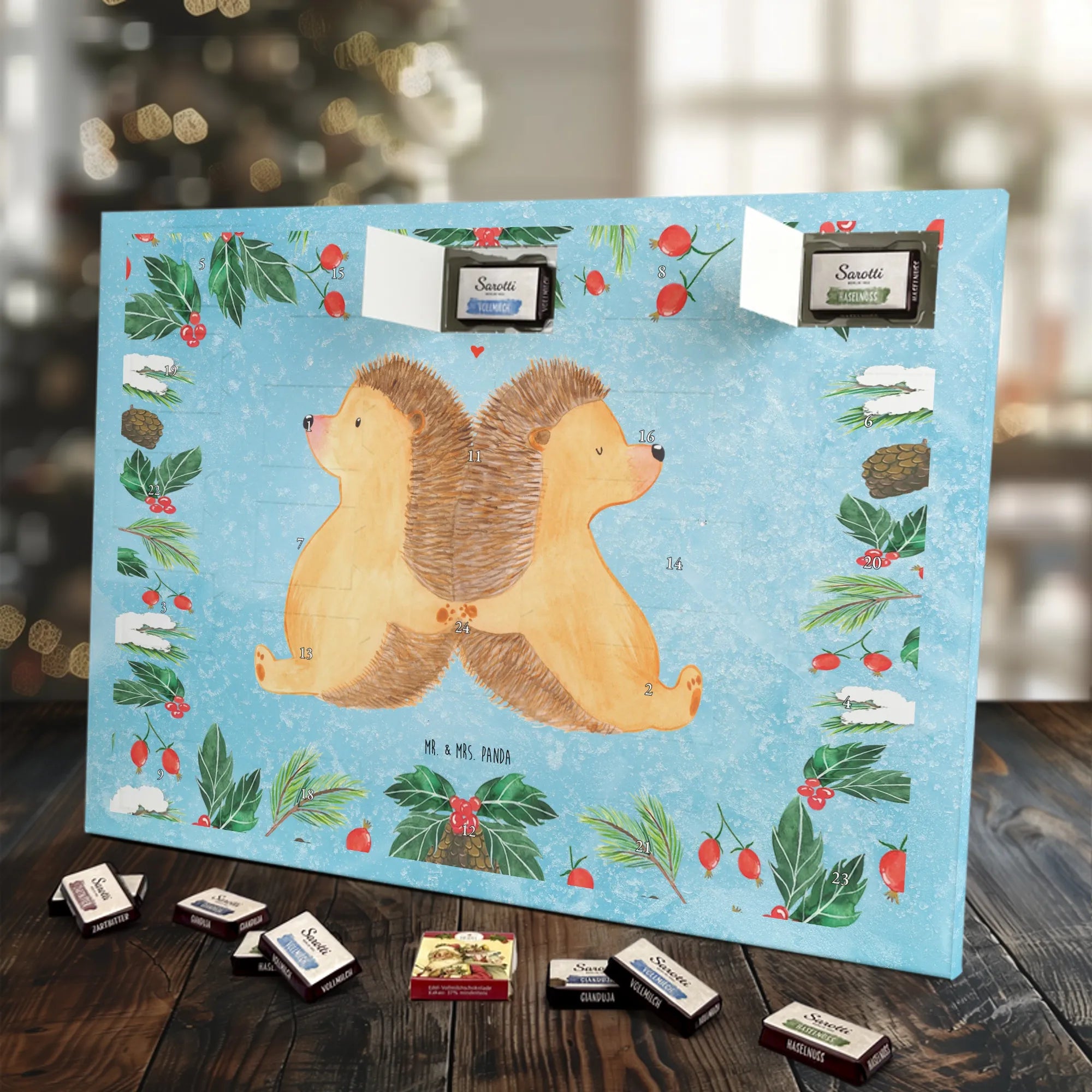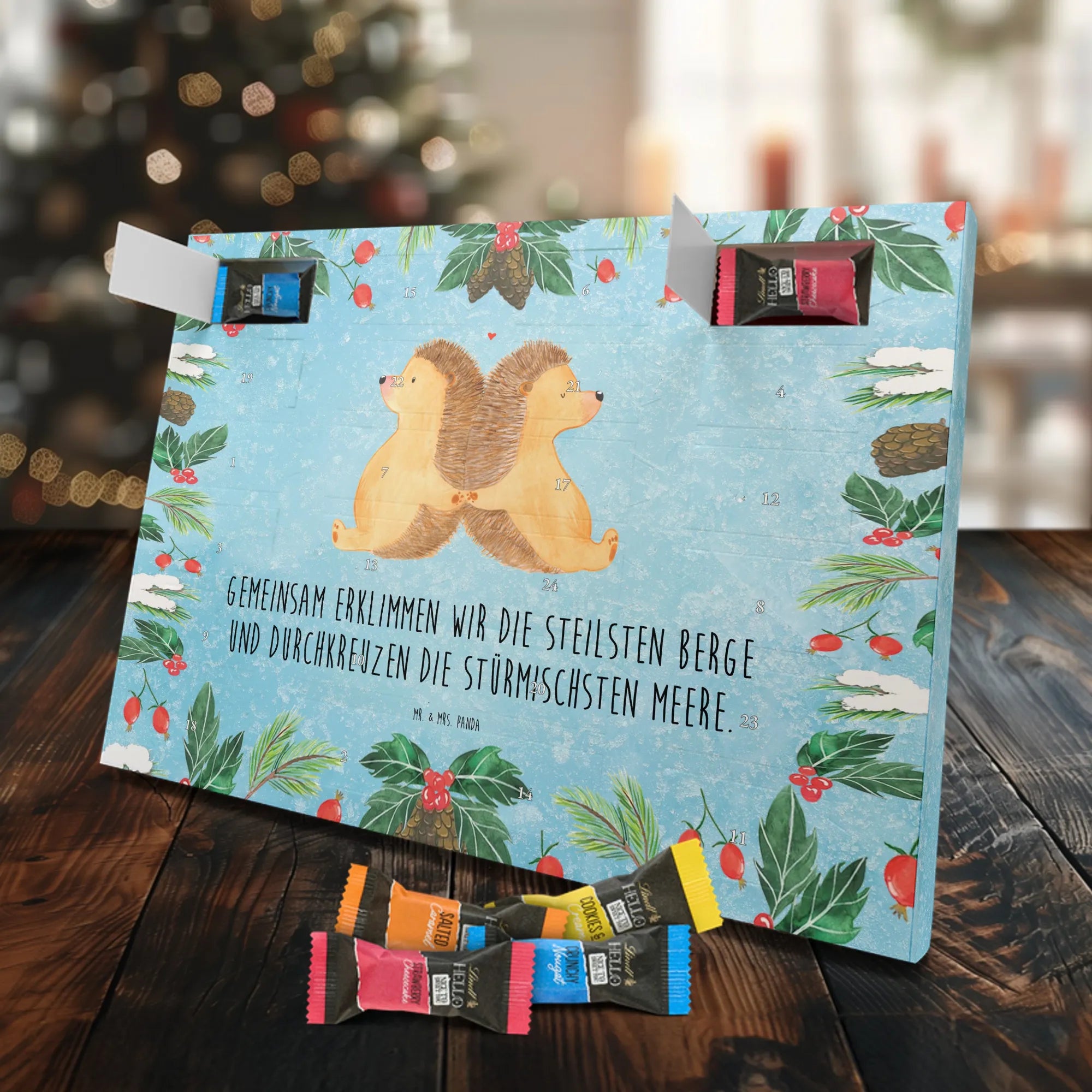 Chocolate advent calendar Hedgehogs holding hands - Classic - with saying - Ice Blue