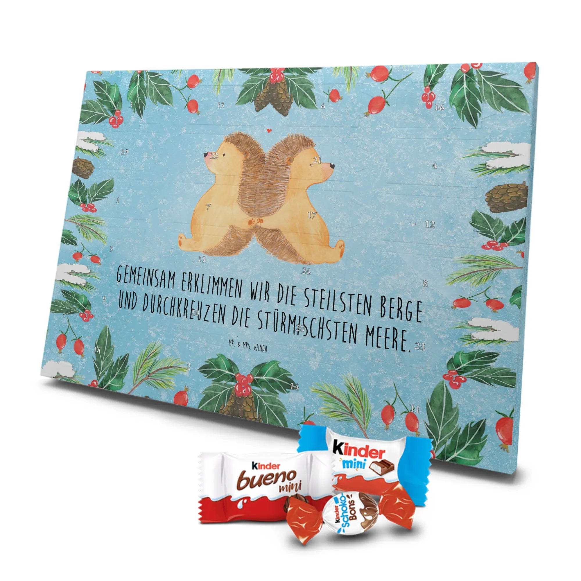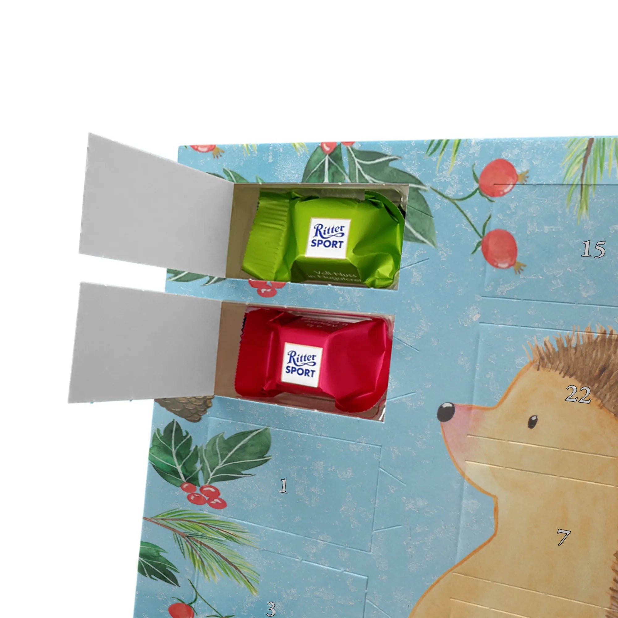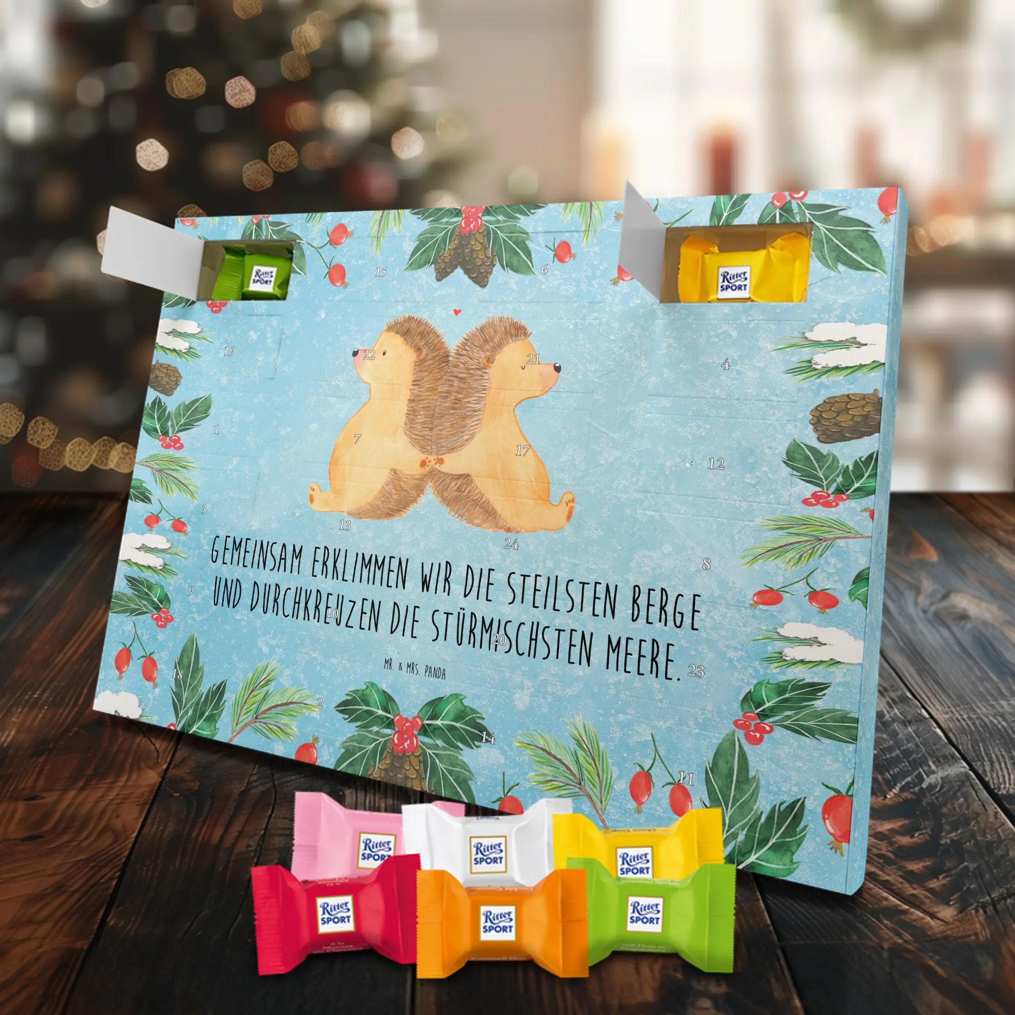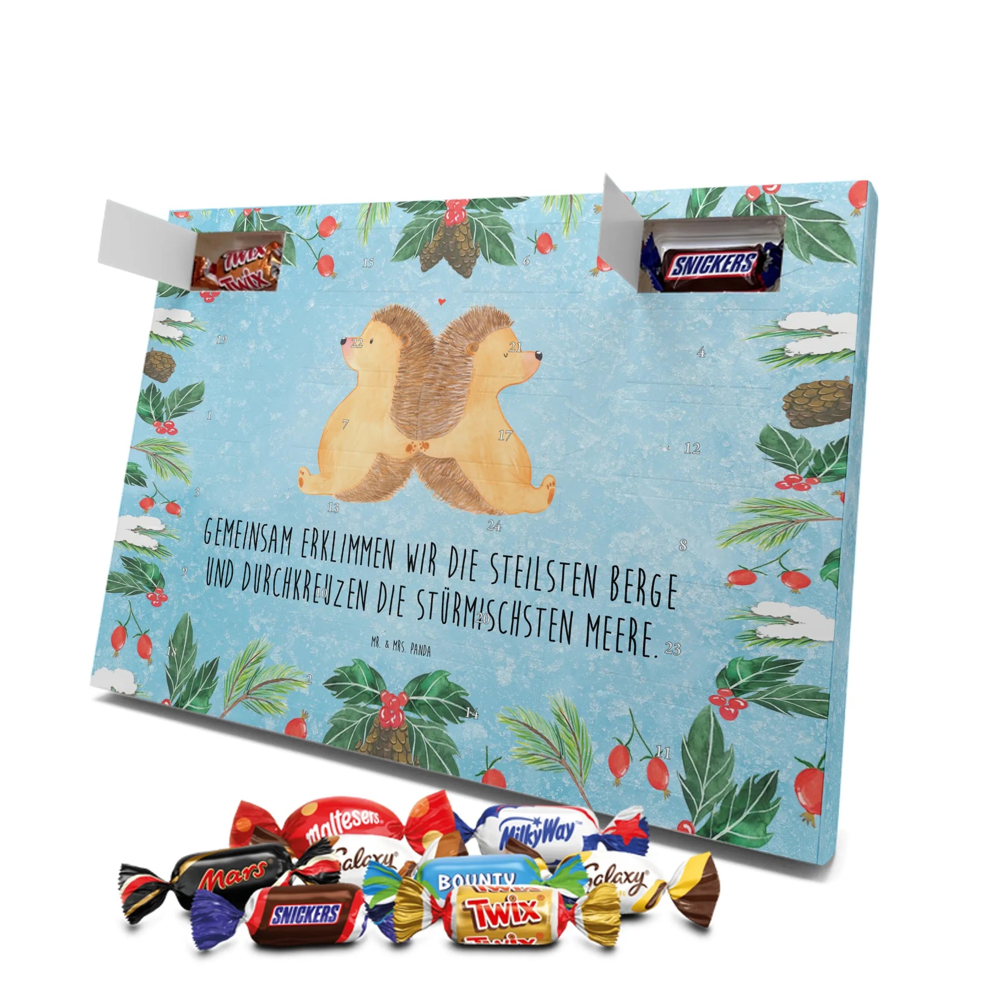 Chocolate advent calendar Hedgehogs holding hands - Classic - with saying - Ice Blue