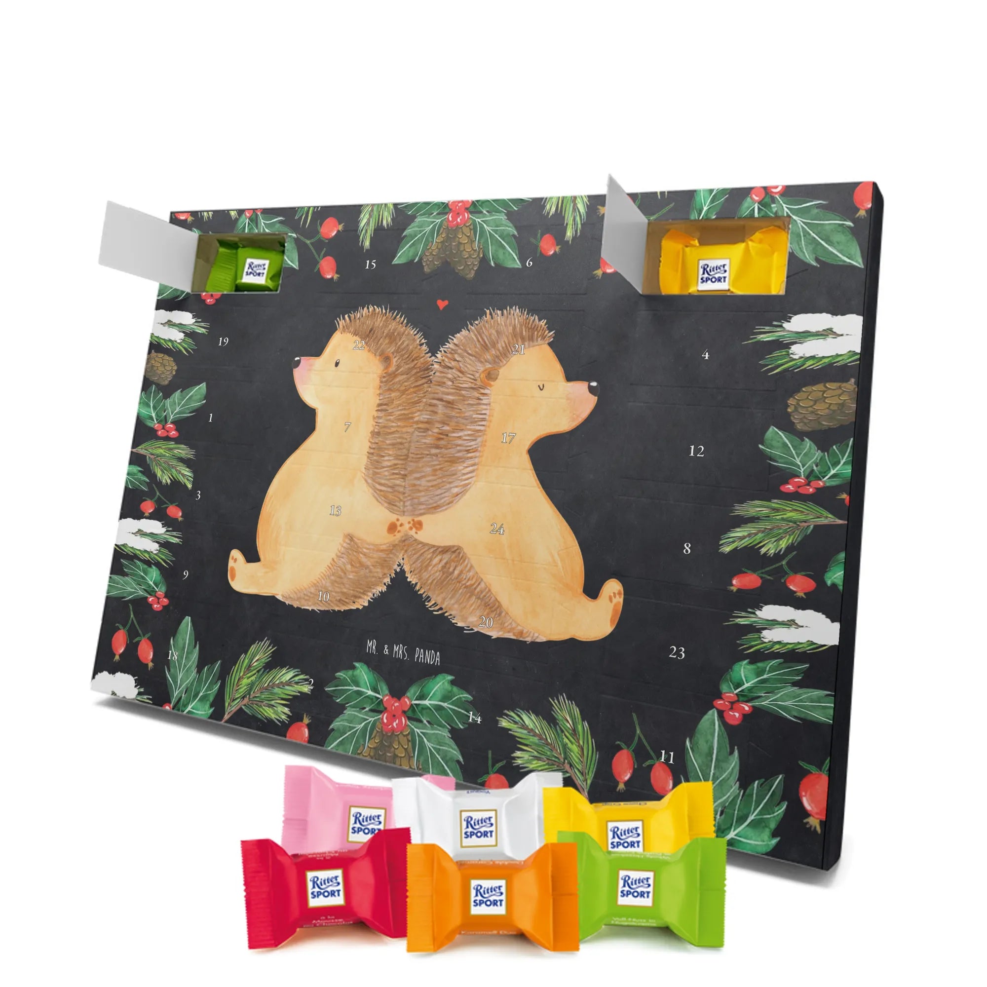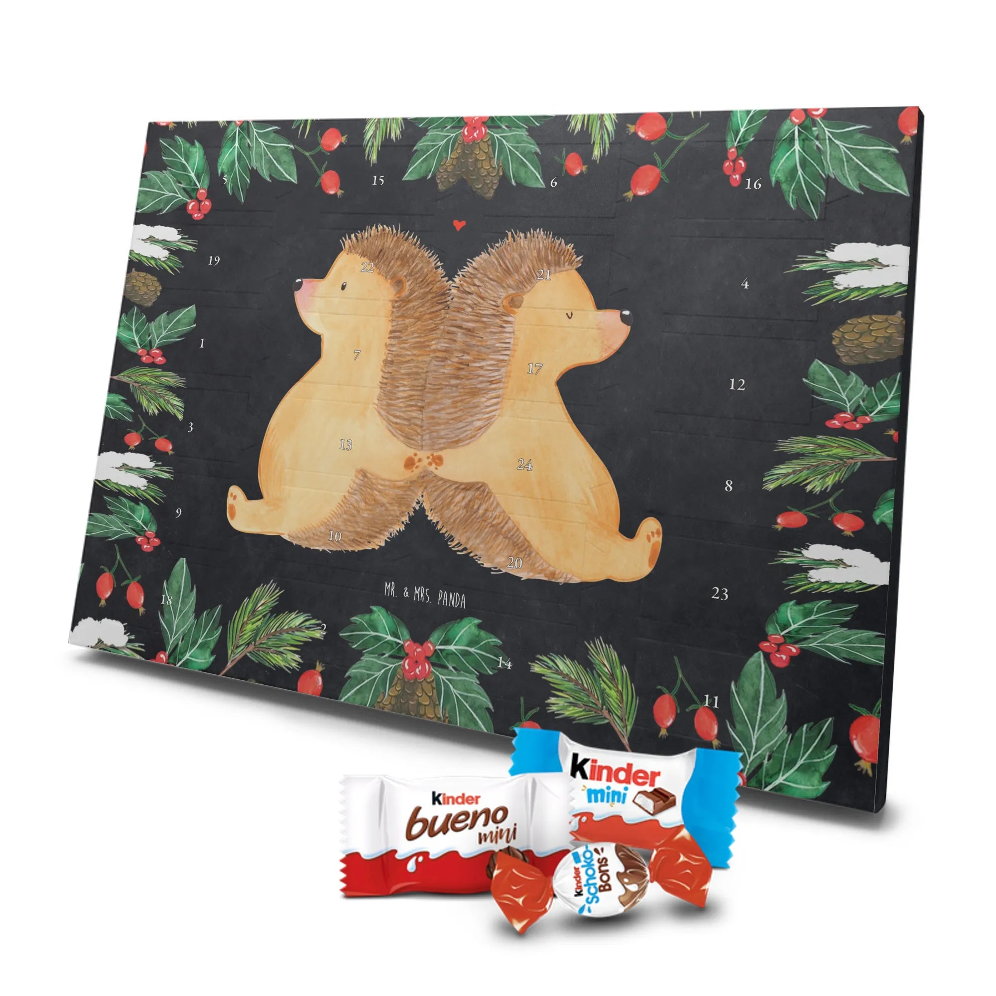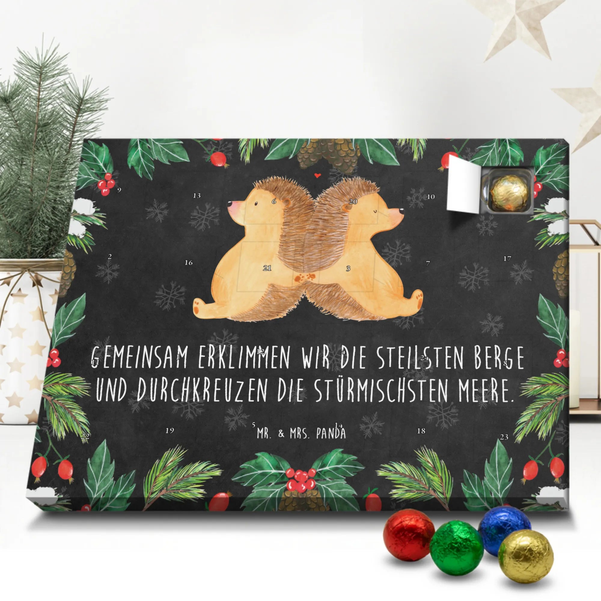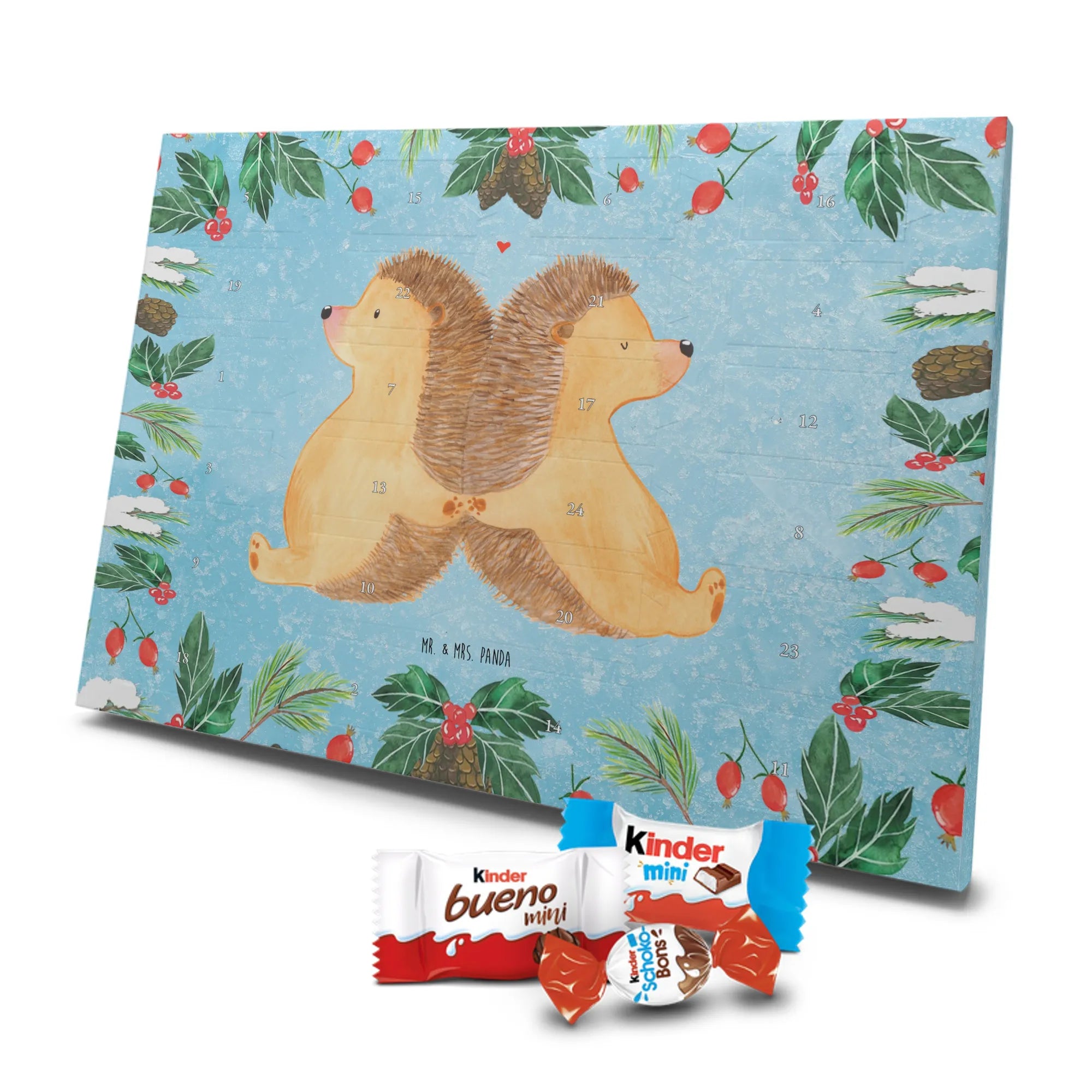 Chocolate advent calendar Hedgehogs holding hands - Classic - with saying - Ice Blue