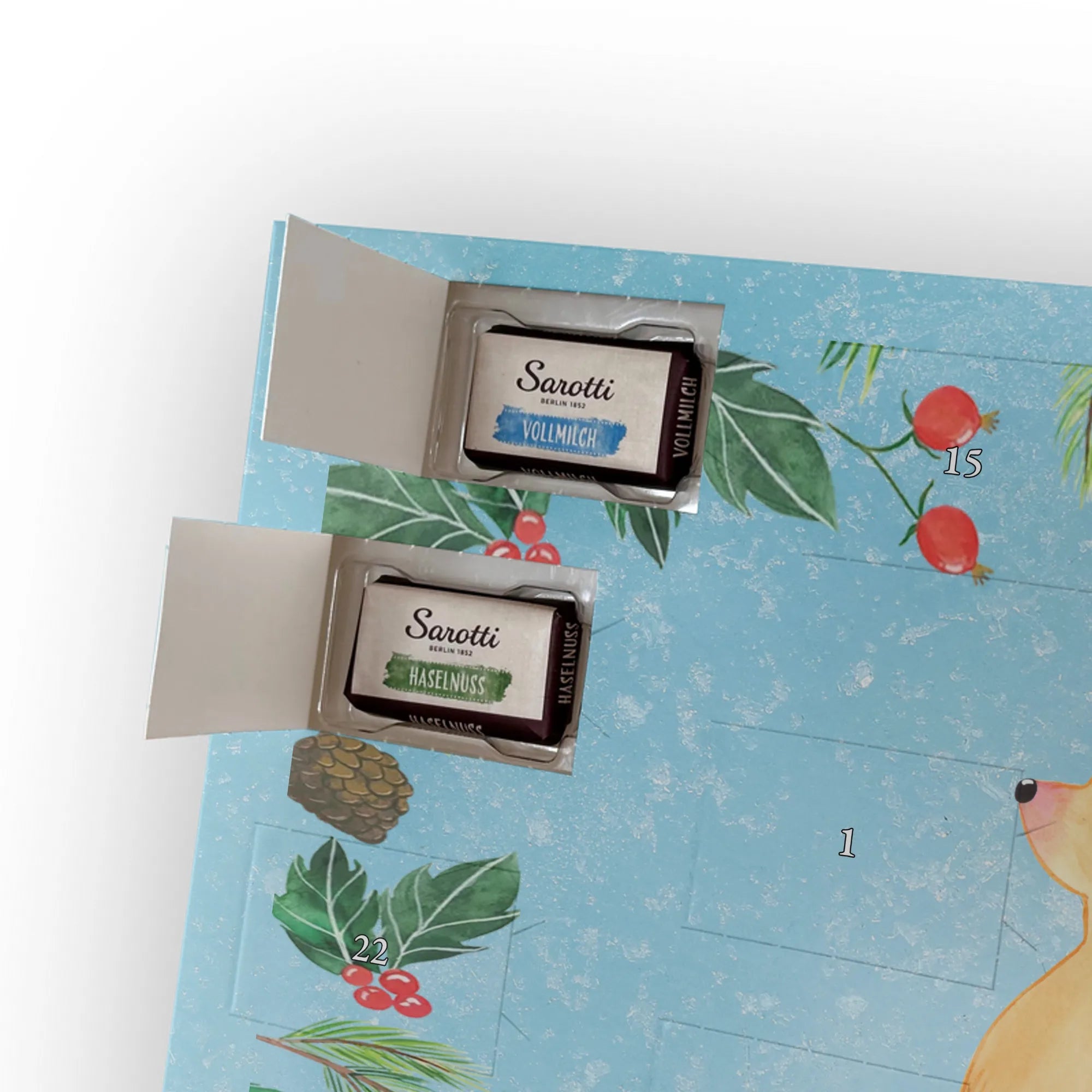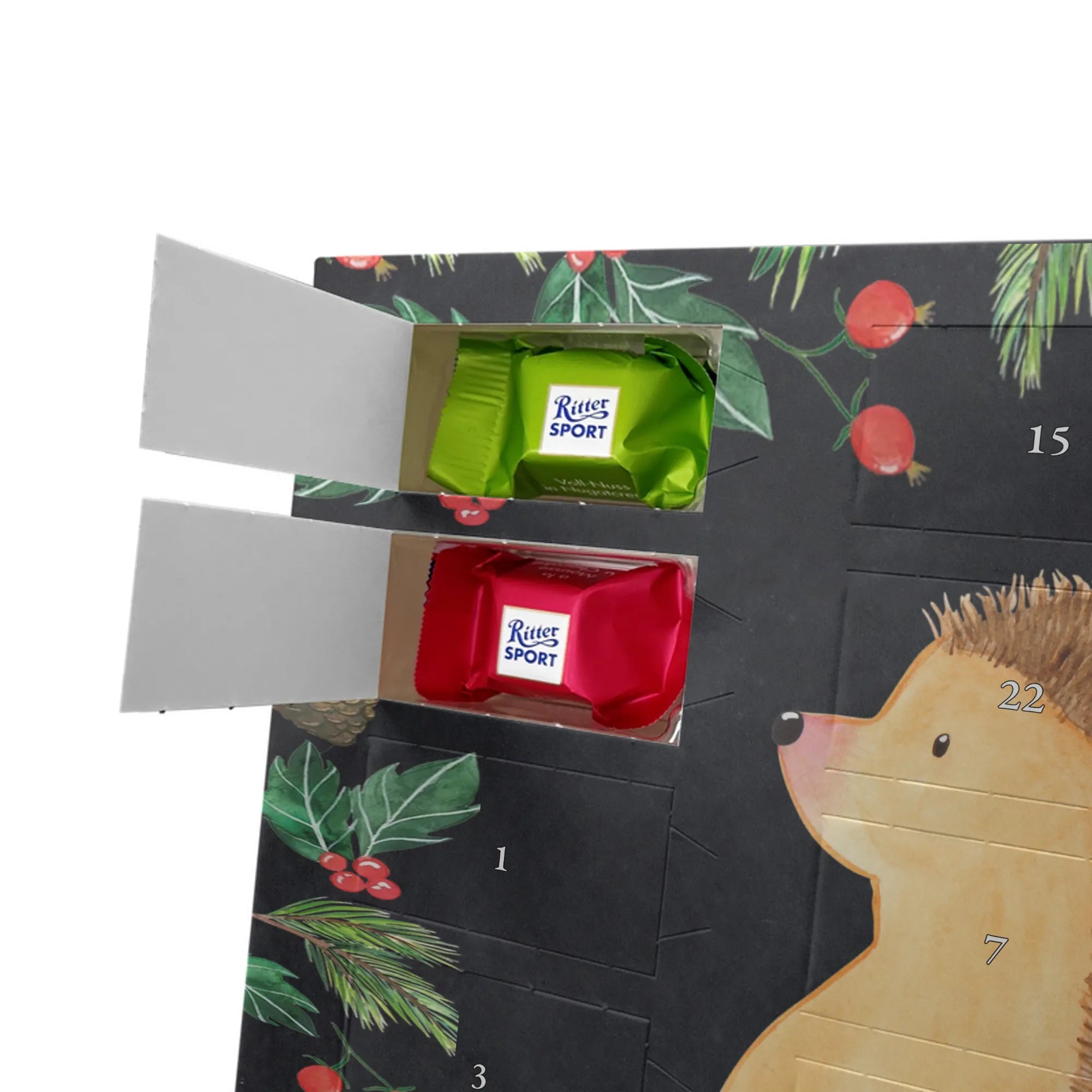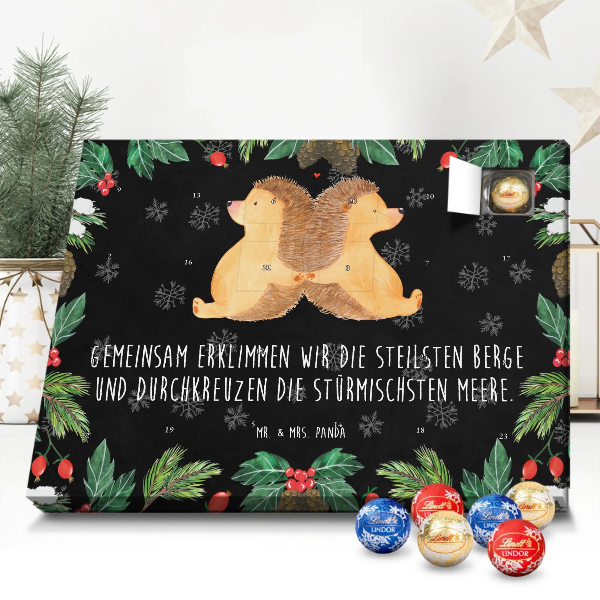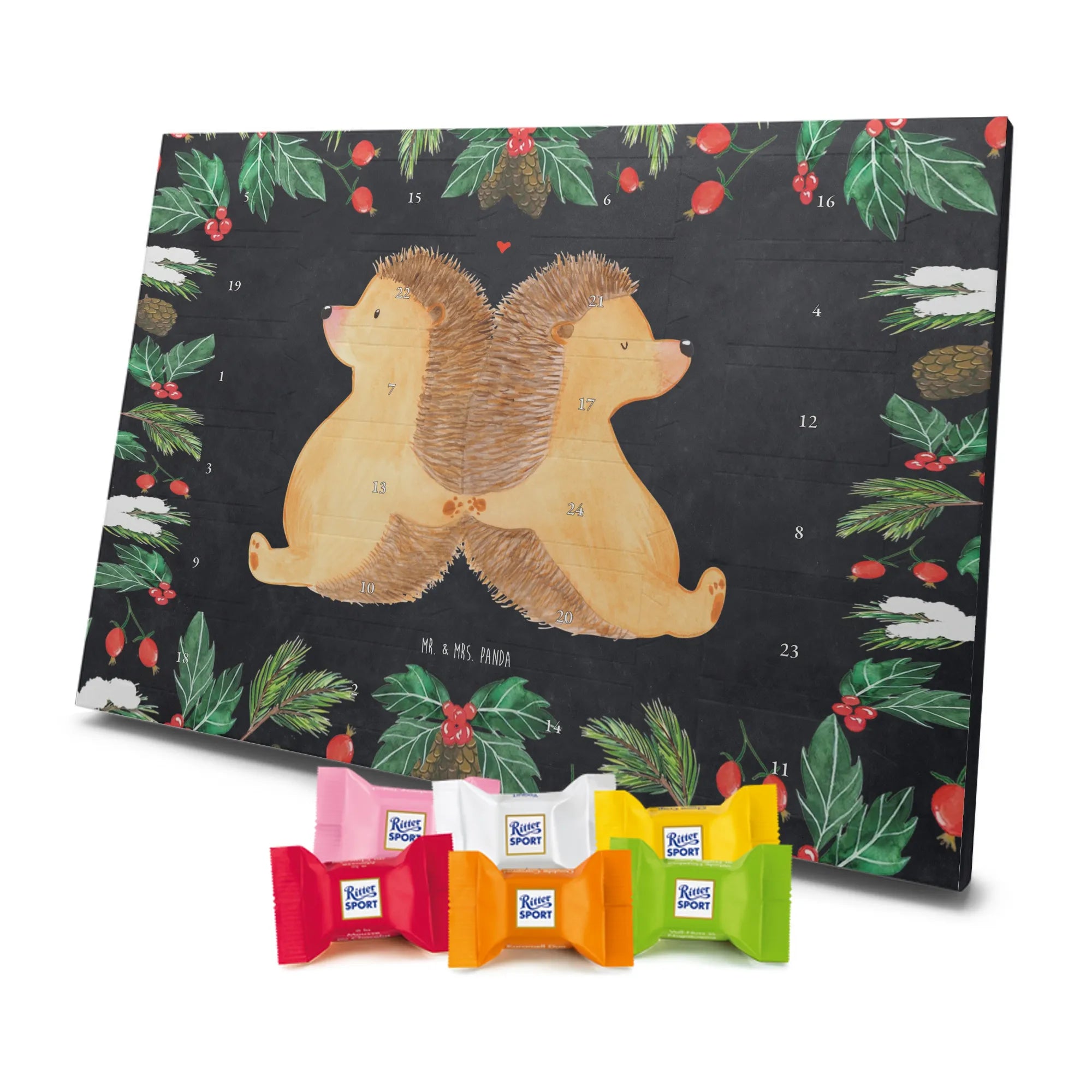 Chocolate advent calendar Hedgehogs holding hands - Classic - with saying - Ice Blue