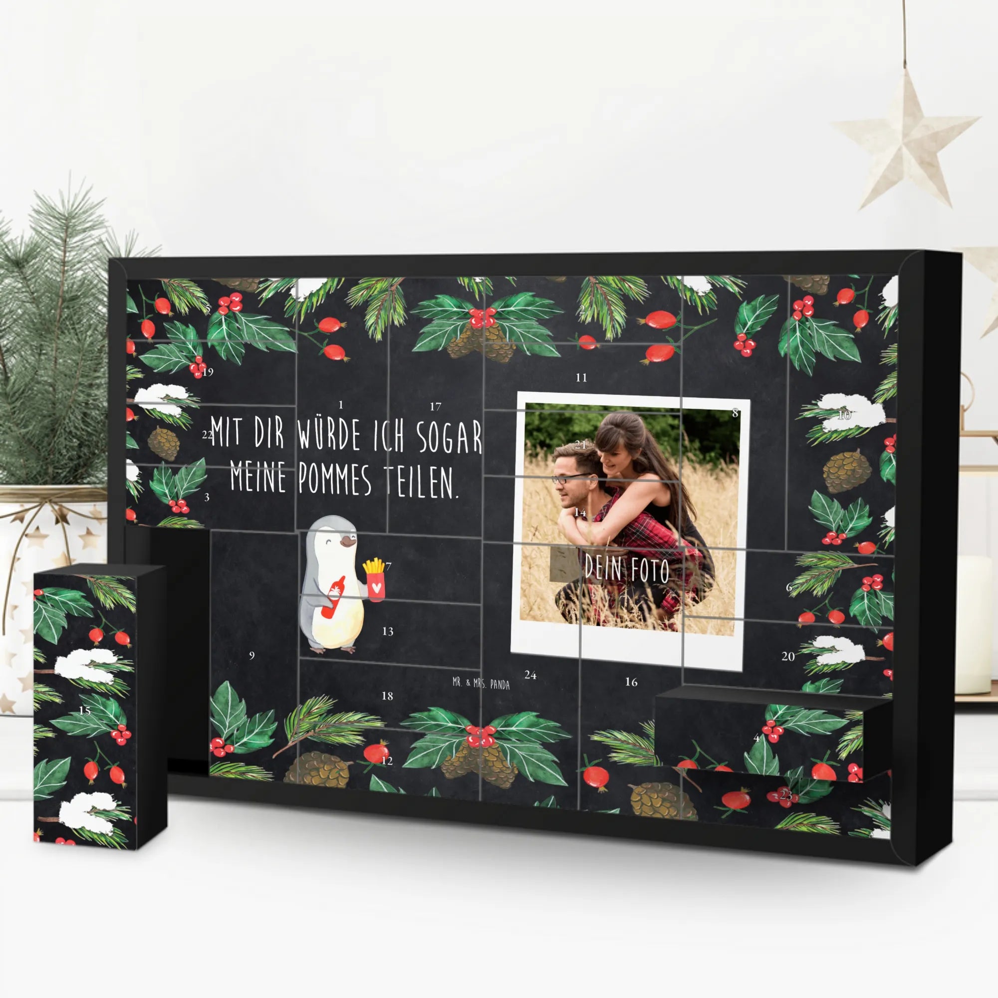 There’s something irresistibly charming about our penguin holding a cup of fries! This cheerful little fellow, with his bottle of ketchup, radiates fun and light-heartedness. The loving slogan 'Mit dir würde ich sogar meine Pommes teilen' beautifully encapsulates the essence of sharing in love. This motif makes the perfect Valentine’s Day gift for women, as it's all about celebrating connections and sweet moments together. Each glance at this adorable penguin serves as a gentle reminder to embrace the joy found in small things. Whether it’s a thoughtful surprise for a partner, a cute gesture at an anniversary, or a lovely party favor, this penguin symbolizes the delightful spirit of love that keeps everything bright and lively.