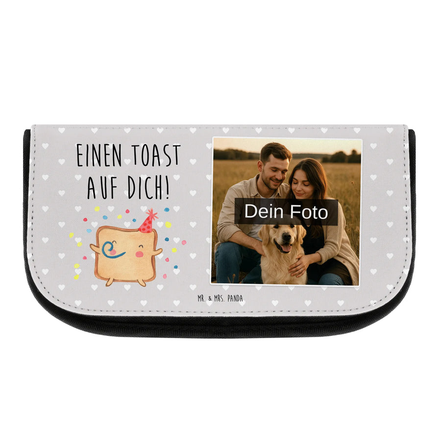 Mach deine Kosmetiktasche einmalig mit der personalisierten Foto Kosmetiktasche von Mr. & Mrs. Panda! Mit den Maßen 220 mm x 130 mm x 70 mm bietet sie genug Platz für deine Beauty-Artikel und mehr. Hochwertig bedruckt mit süßen Mr. & Mrs. Panda Motiven, wird deine Tasche durch dein persönliches Foto zum echten Unikat. Achte darauf, dass dein Bild in hoher Auflösung vorliegt, um ein schönes Druckergebnis zu erzielen. Stelle sicher, dass du die Rechte an allen Bildern besitzt, insbesondere bei Fotos mit Personen. Die Tasche hat praktische, getrennte Fächer für deine Kosmetik, und mit dem sicheren Reißverschluss bleibt alles bestens verstaut. Sie ist perfekt für unterwegs und lässt sich mit einem feuchten Tuch einfach reinigen.
