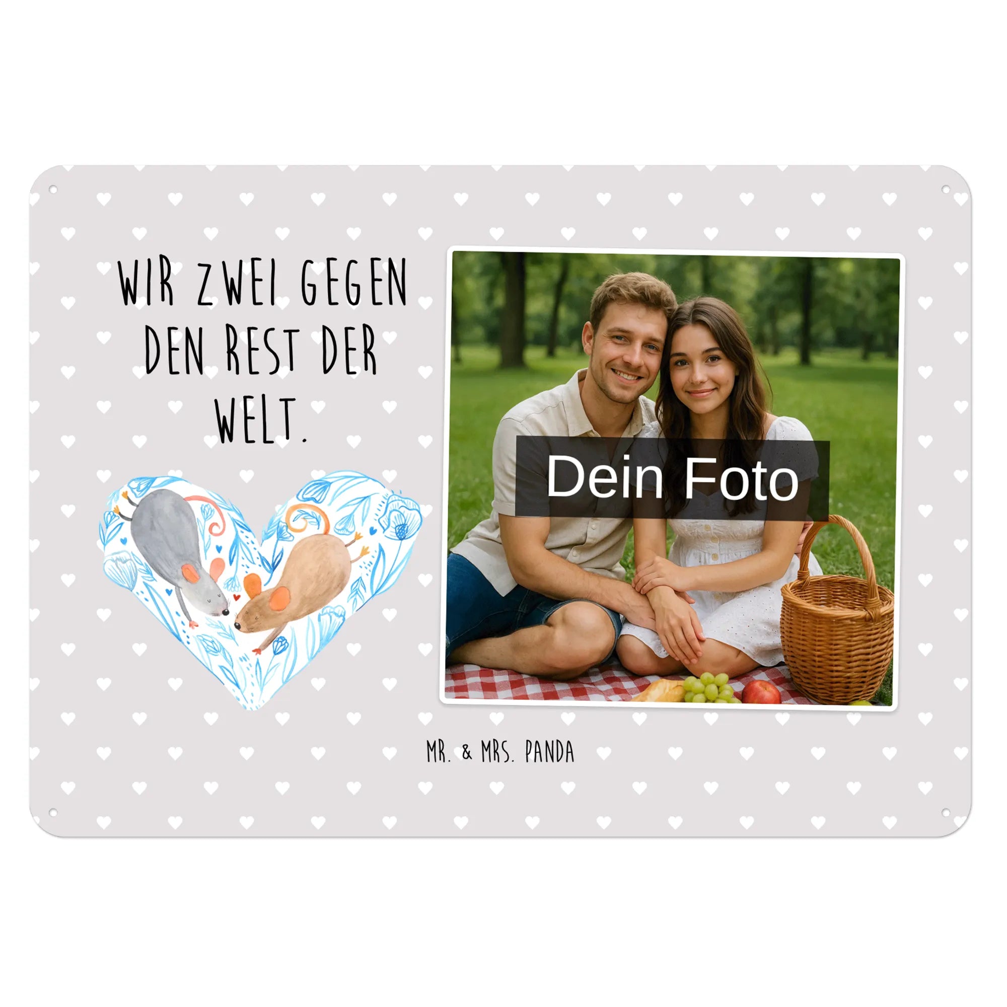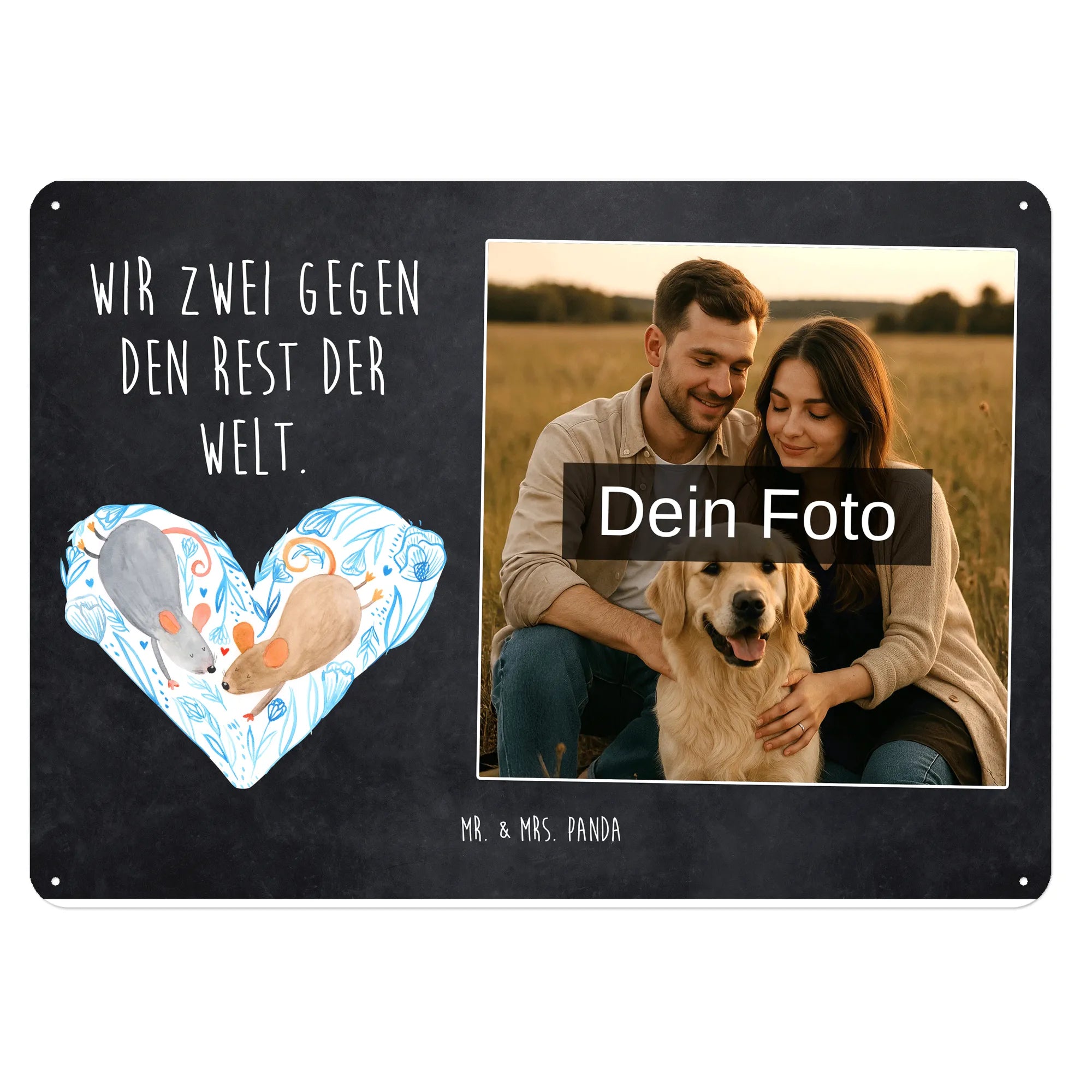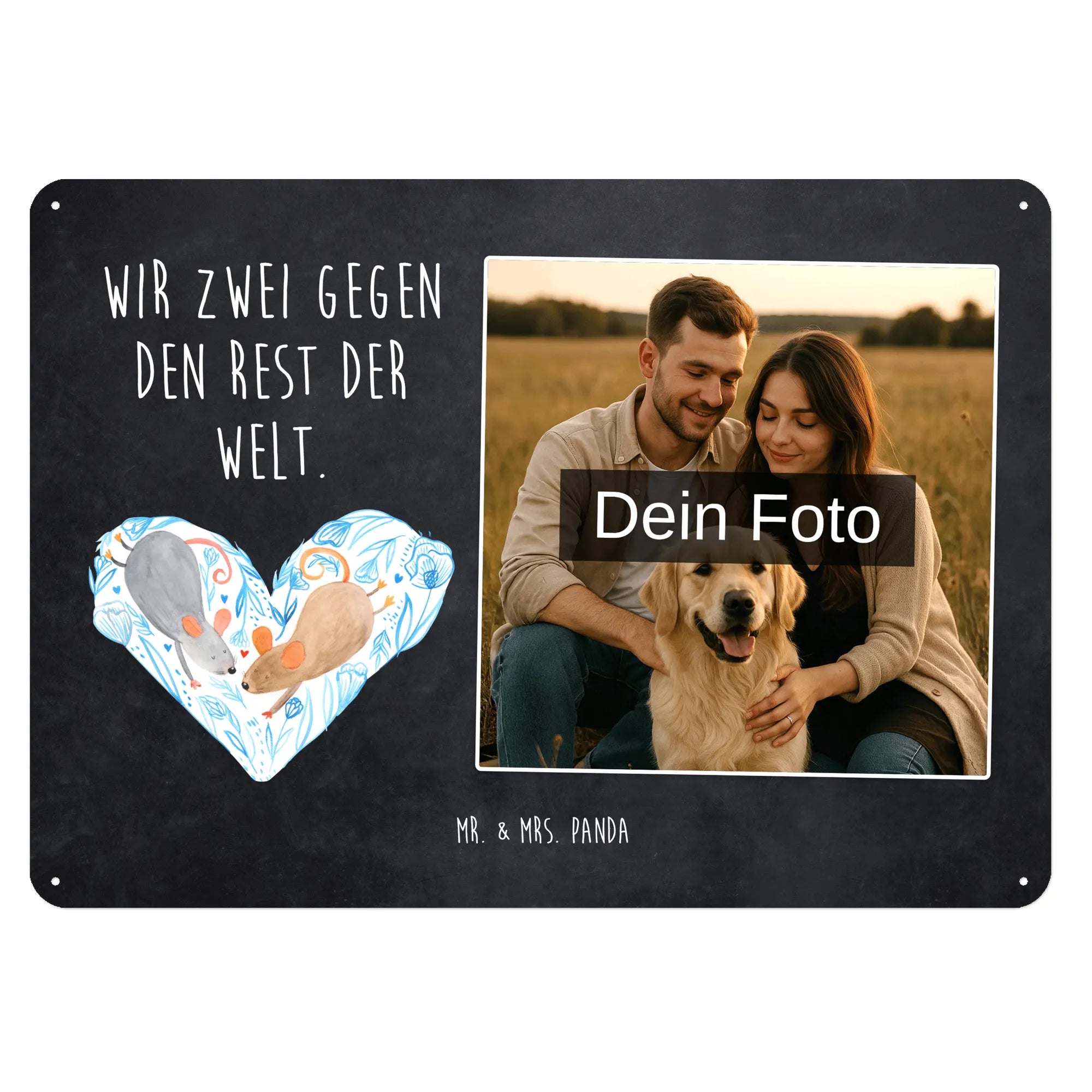Gestalte jetzt dein einzigartiges Blechschild mit Foto von Mr. & Mrs. Panda – persönlich, edel und sofort zum Aufhängen!