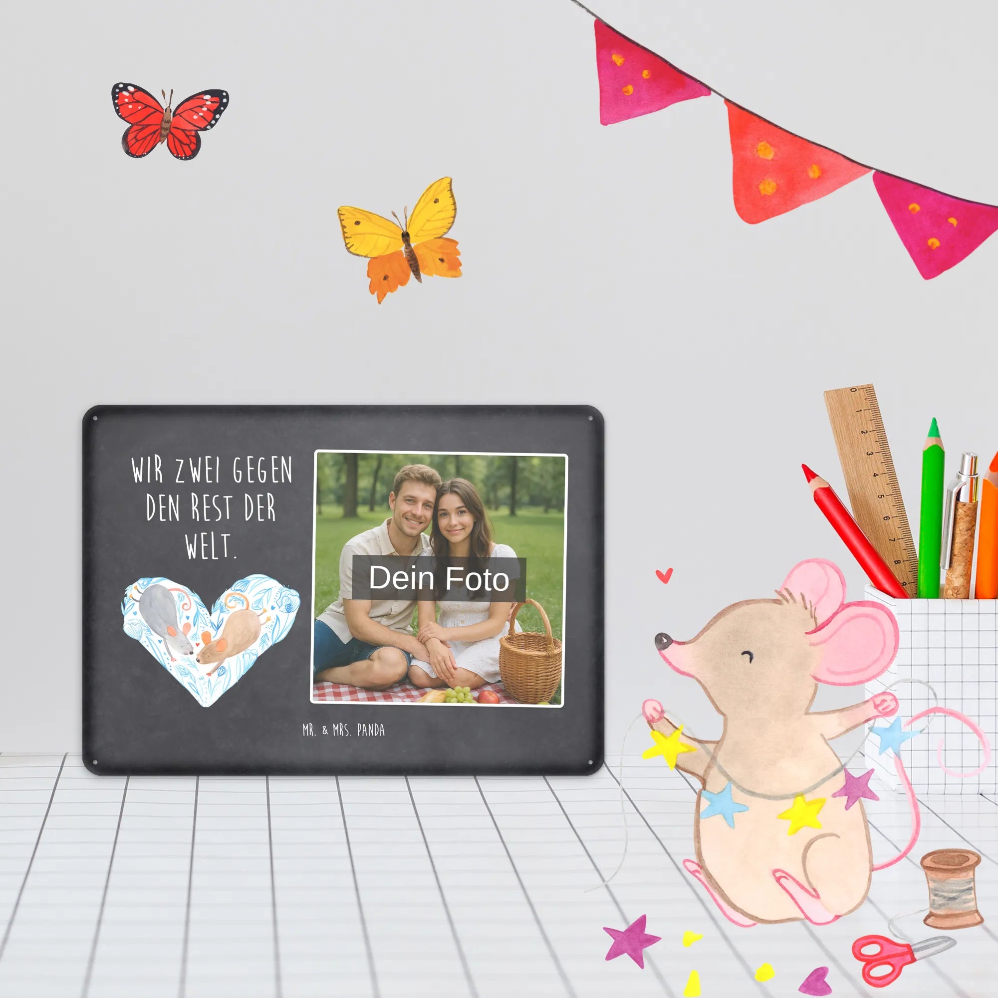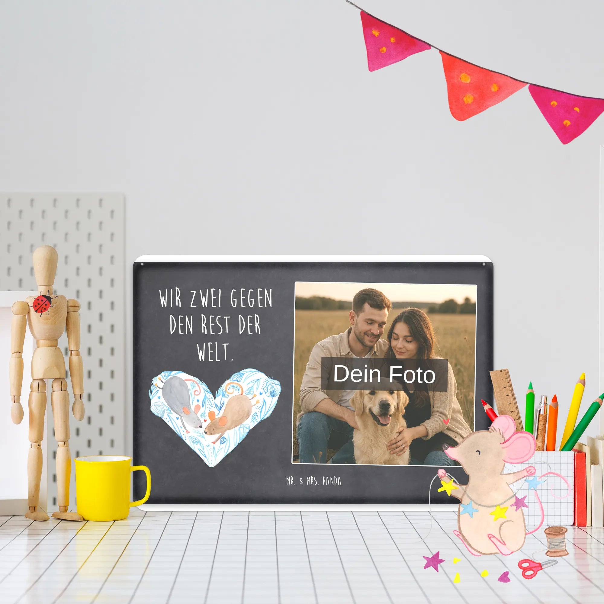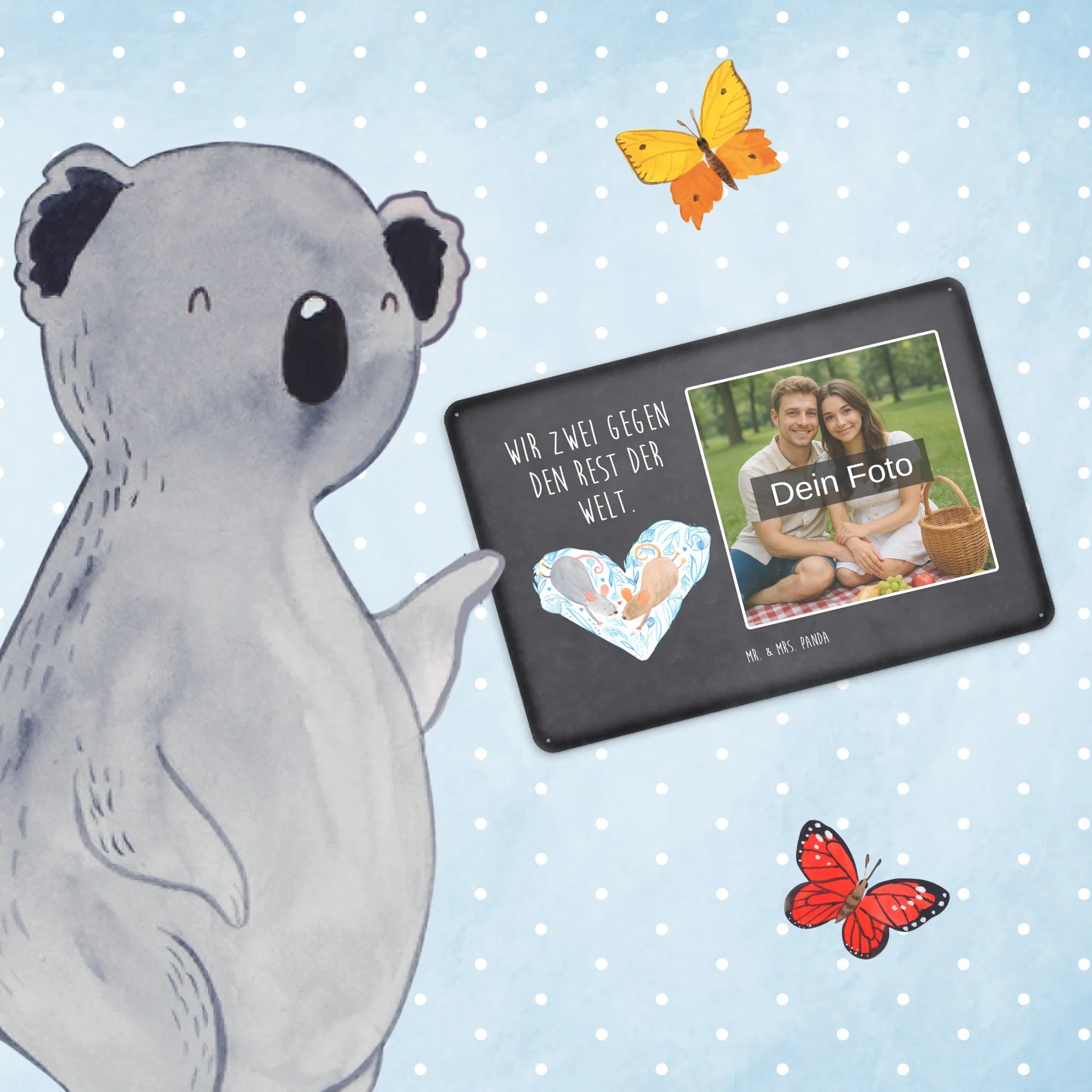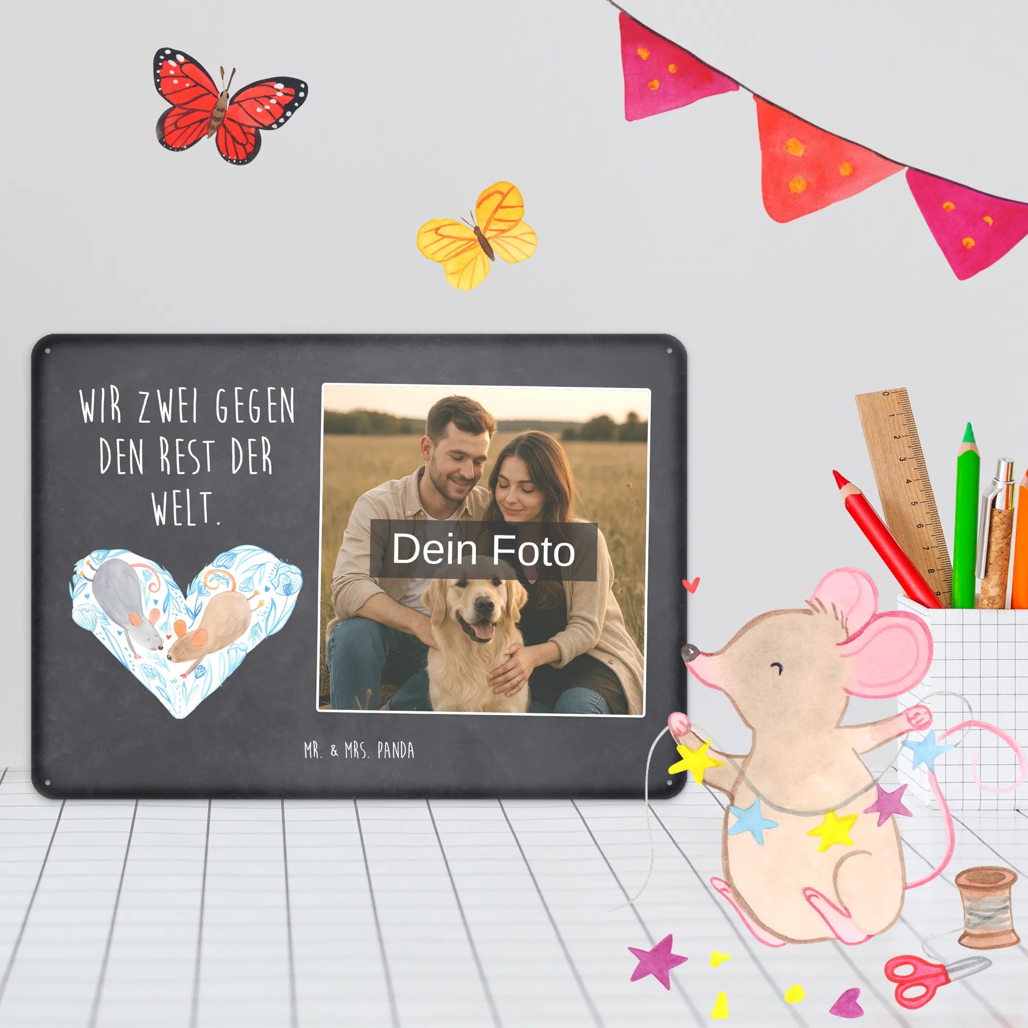Gestalte jetzt dein einzigartiges Blechschild mit Foto von Mr. & Mrs. Panda – persönlich, edel und sofort zum Aufhängen!
