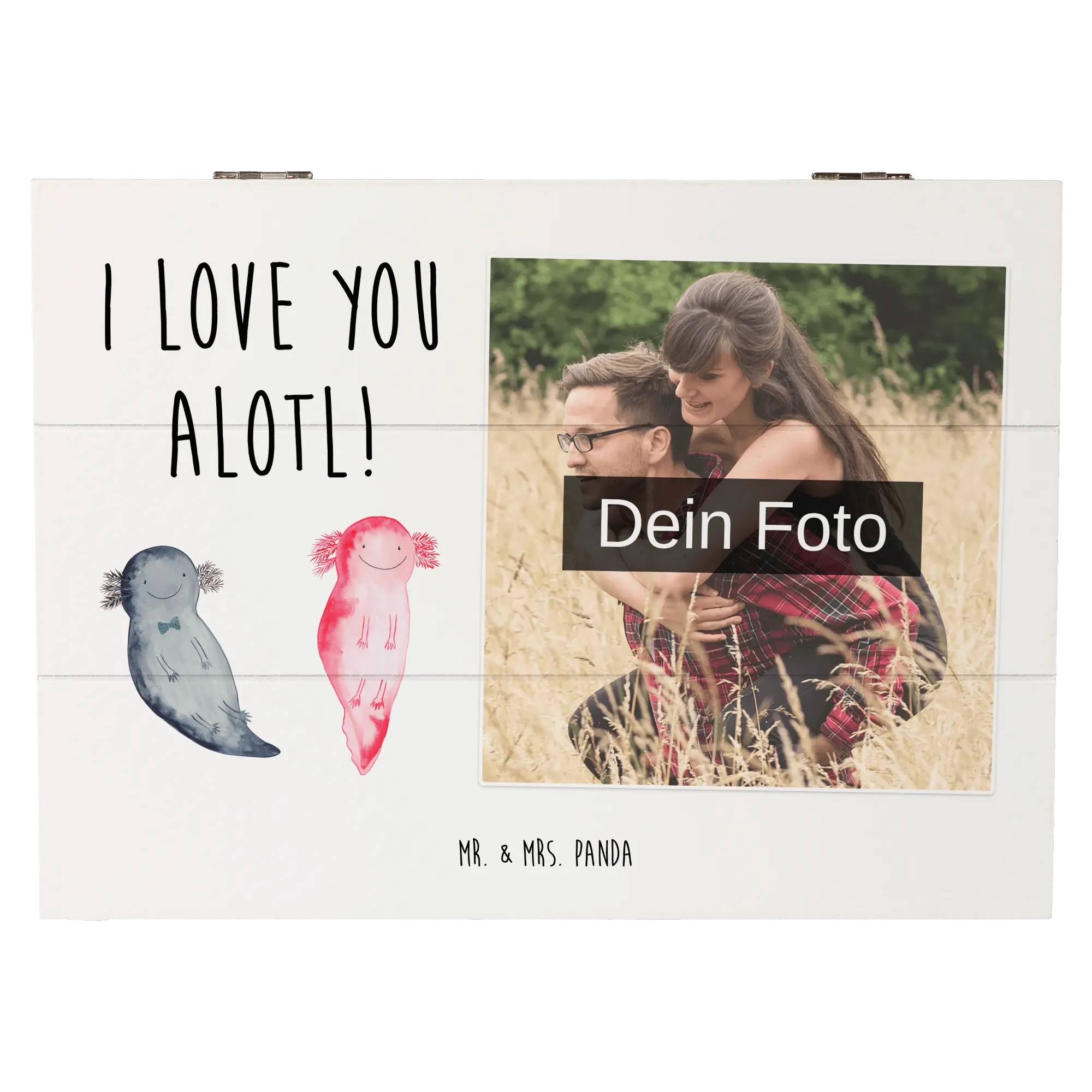 Personalized Photo Wooden Box axolotl Love - 22 x 15 cm - Chalkboard