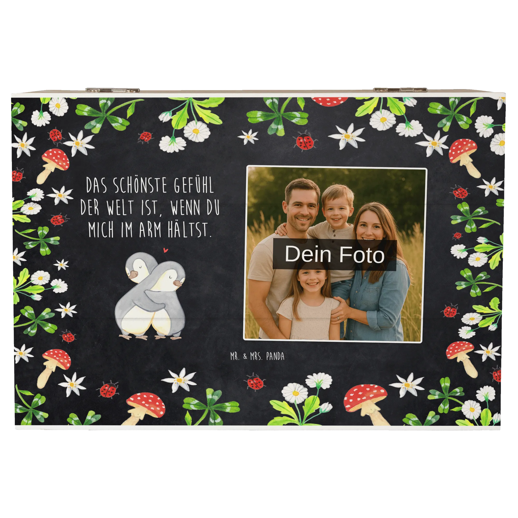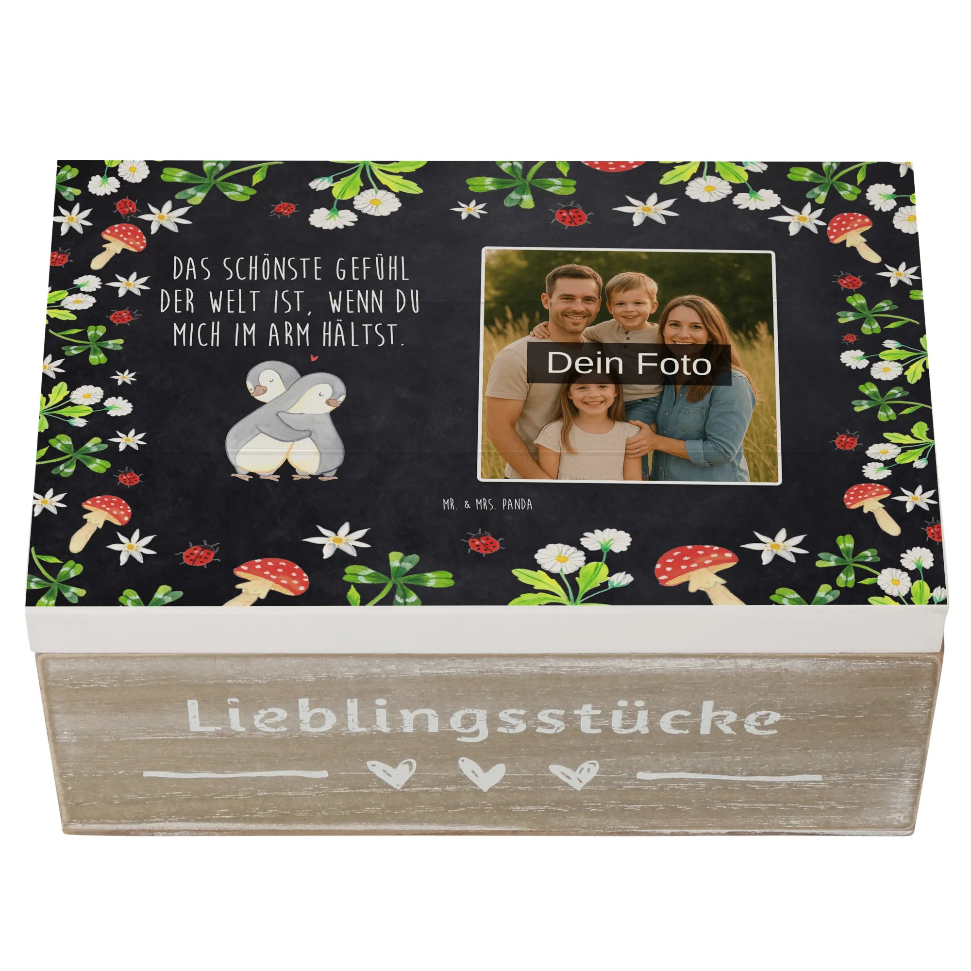 Personalized Photo Wooden Box penguins Cuddle - 22 x 15 cm - White