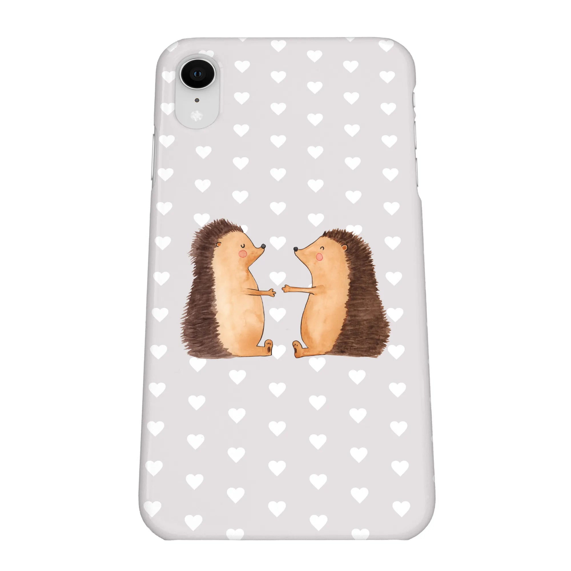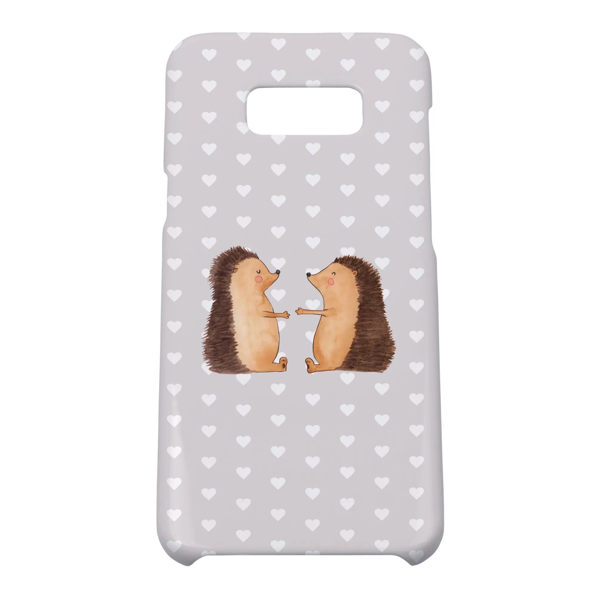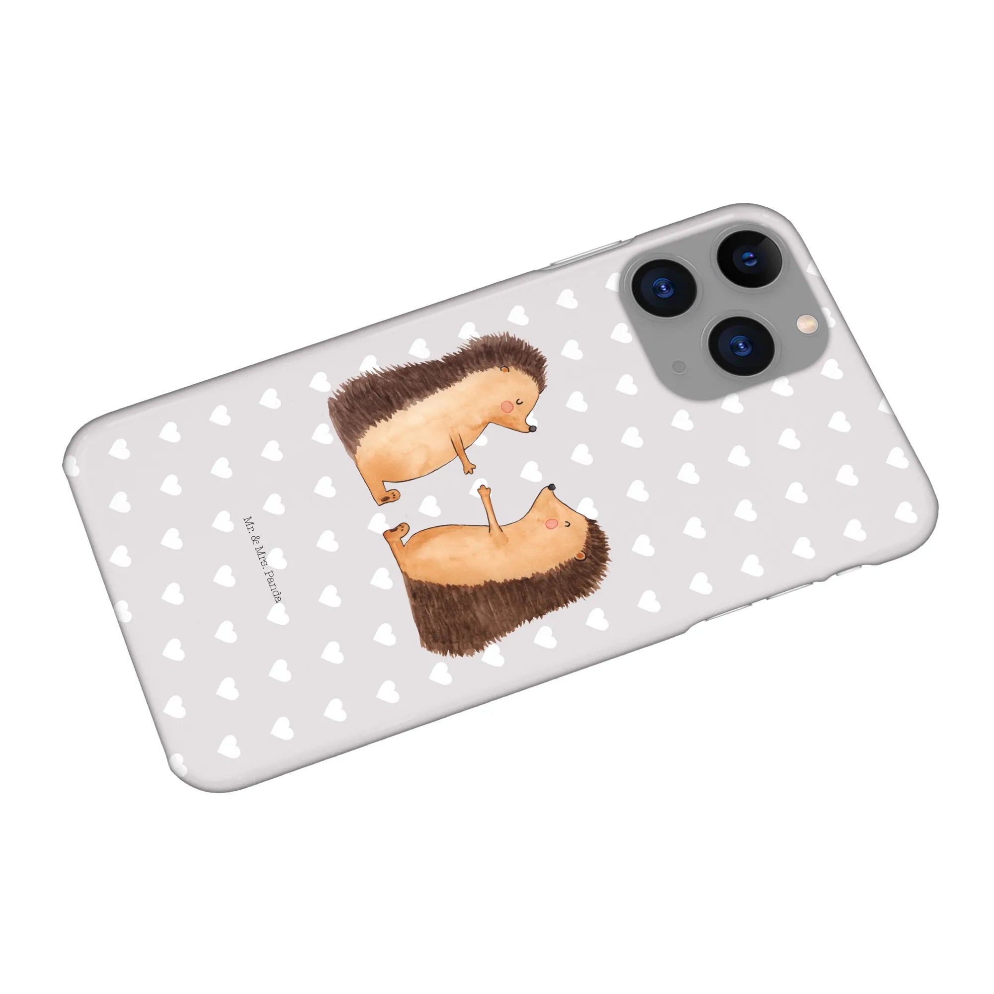 Picture this: a heartwarming design featuring two hedgehogs, eyes closed and hands raised in a sweet pose, exuding warmth and tenderness. This protective iPhone case serves not only to shield your precious device but also to keep those lovely feelings close at hand.
