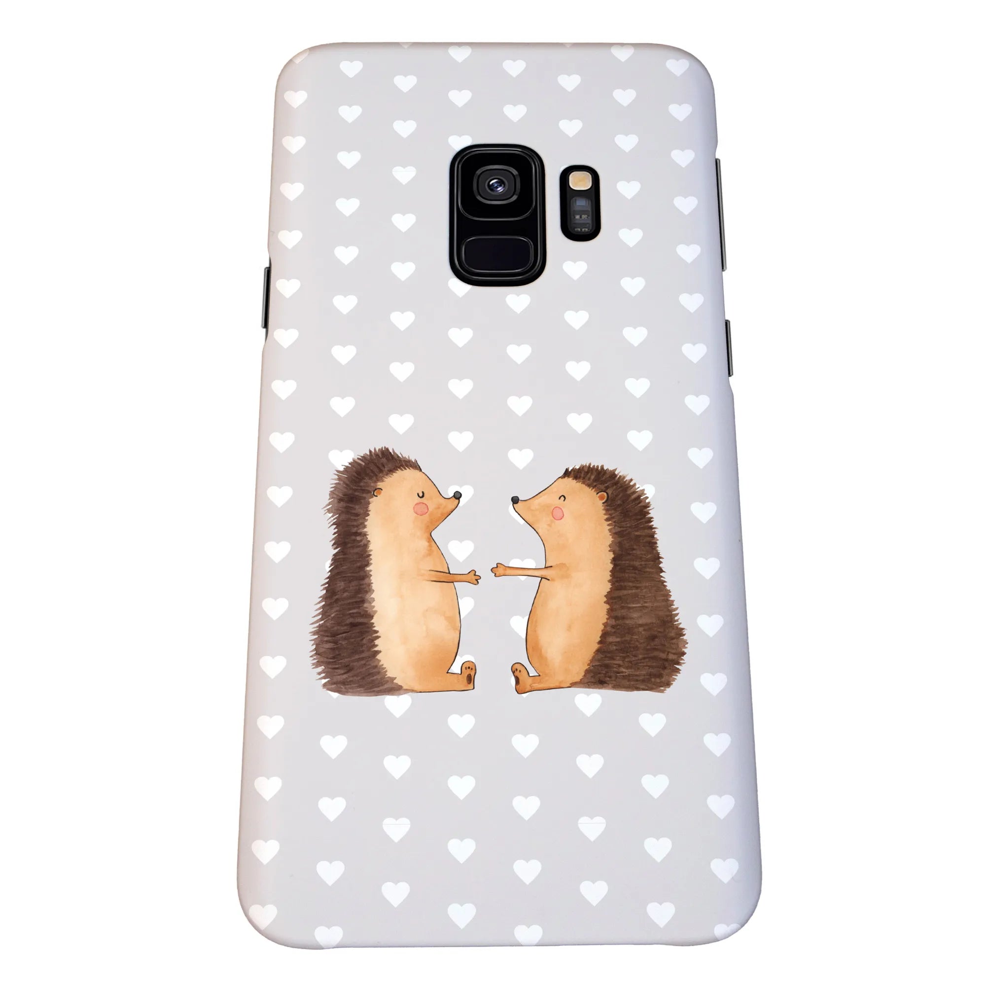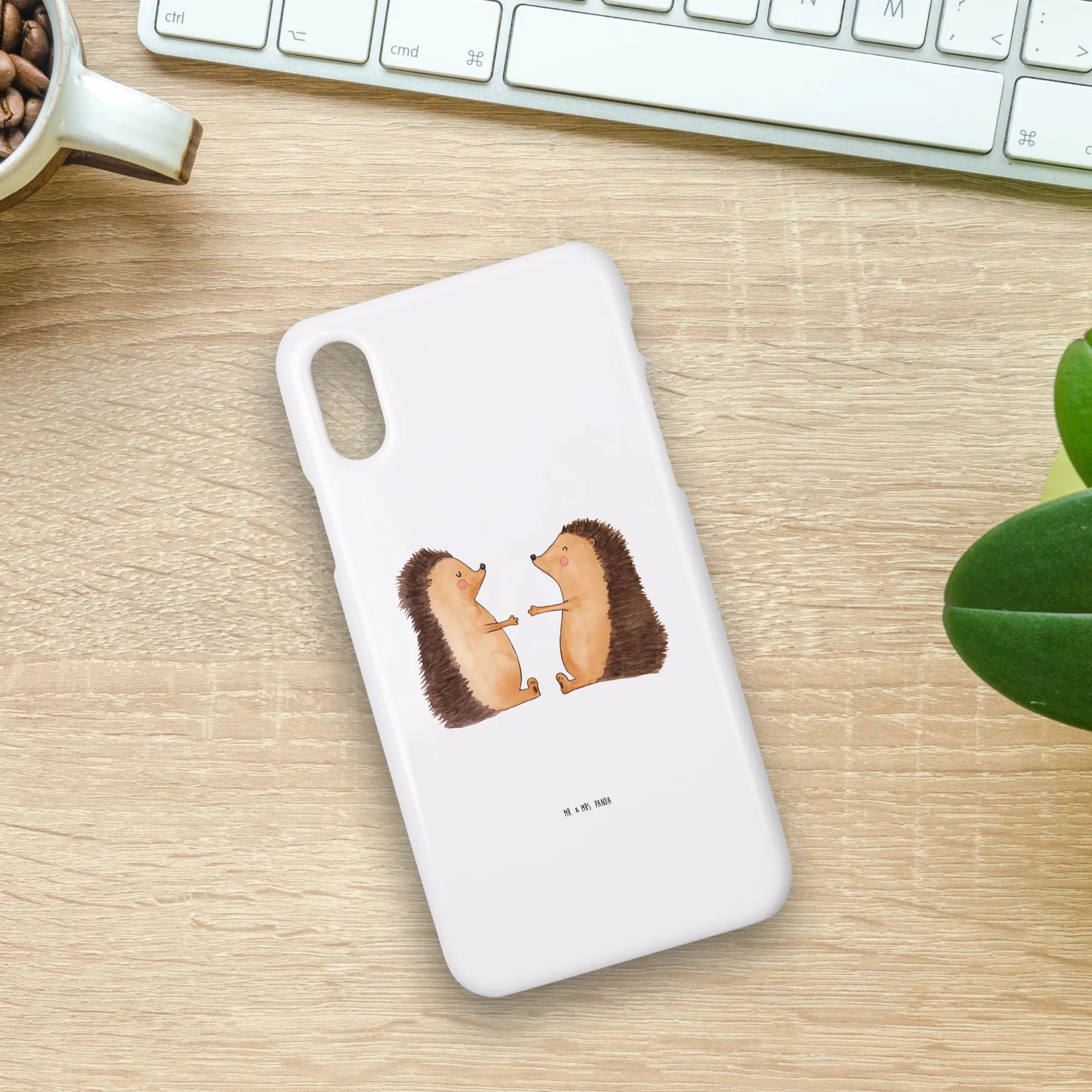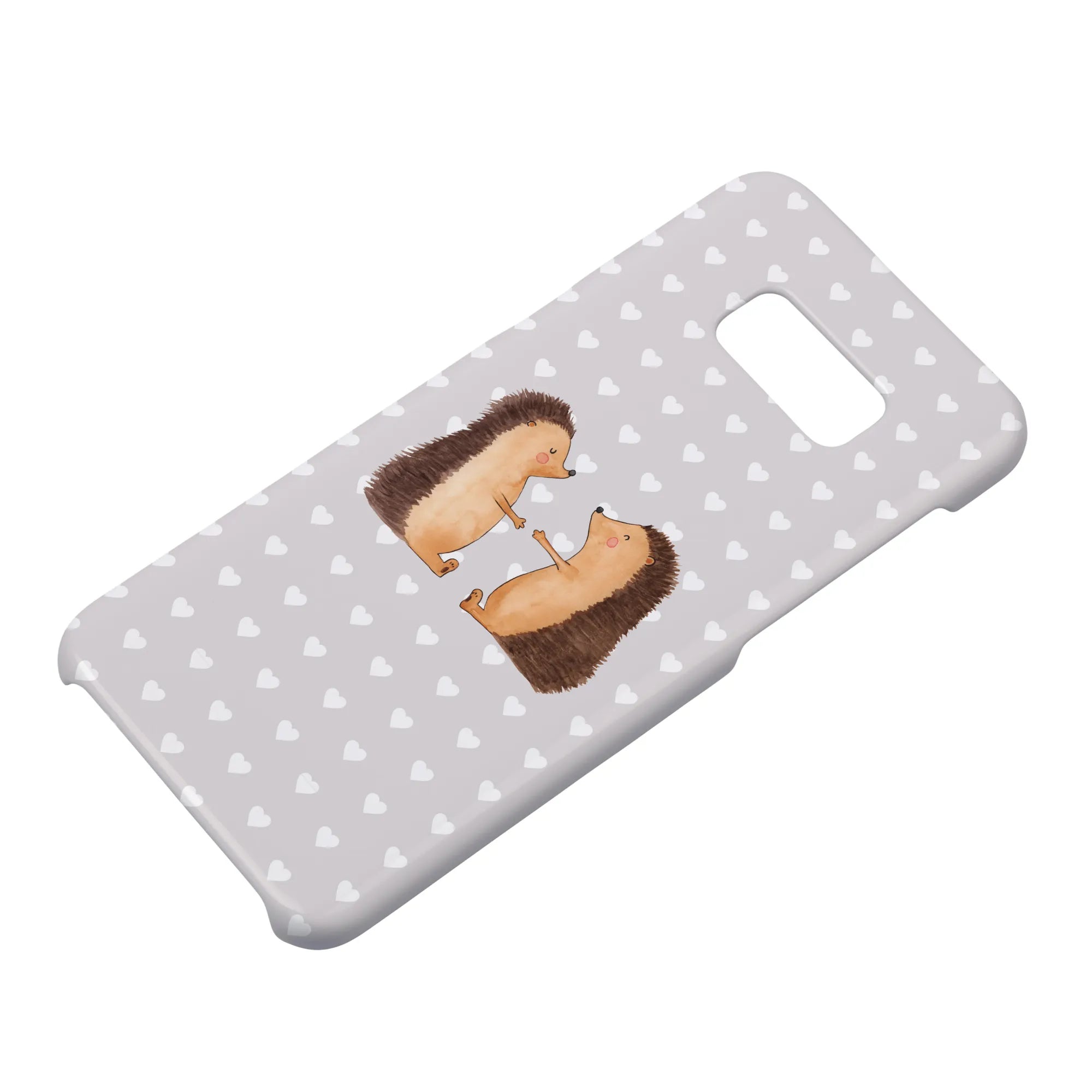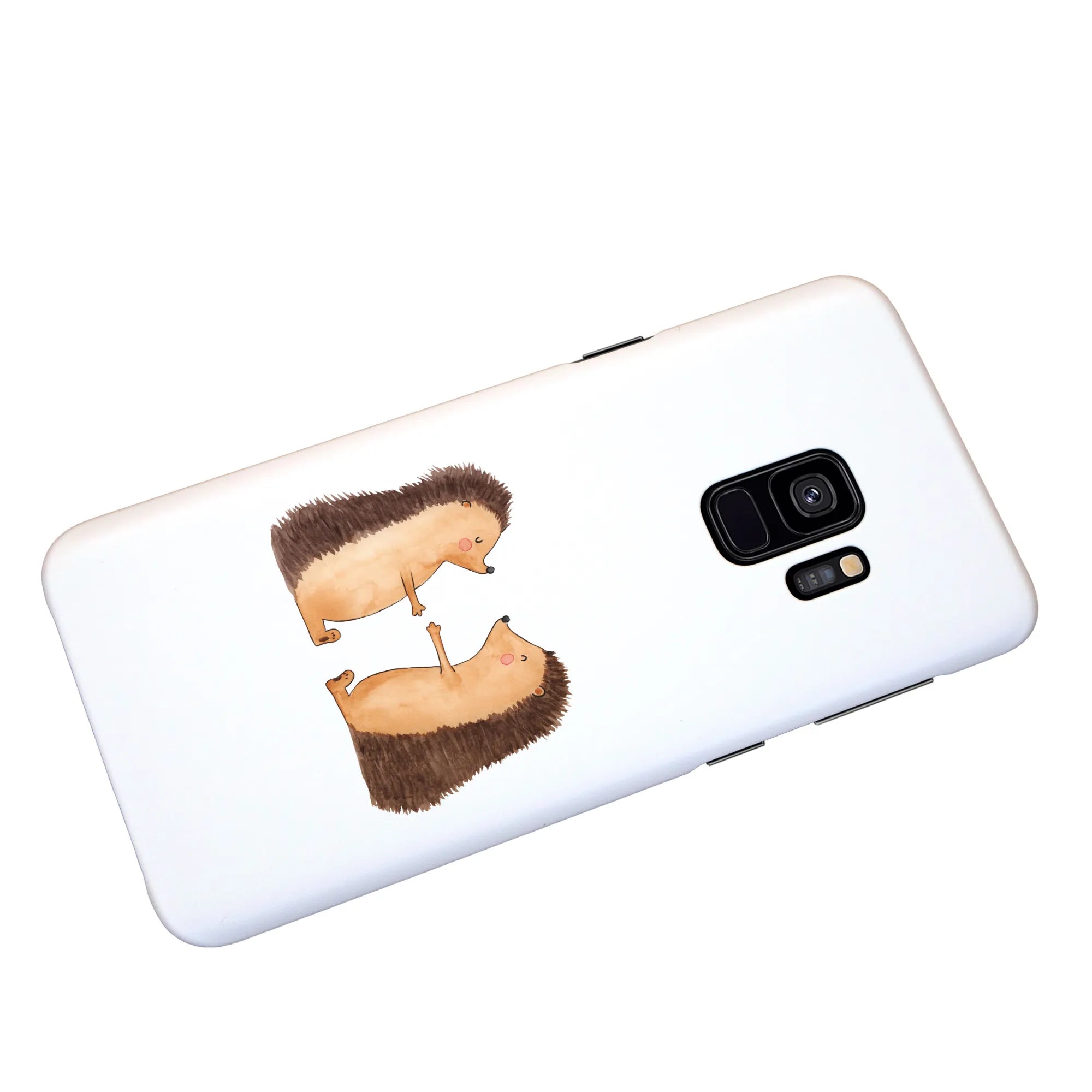 Picture this: a heartwarming design featuring two hedgehogs, eyes closed and hands raised in a sweet pose, exuding warmth and tenderness. This protective iPhone case serves not only to shield your precious device but also to keep those lovely feelings close at hand.