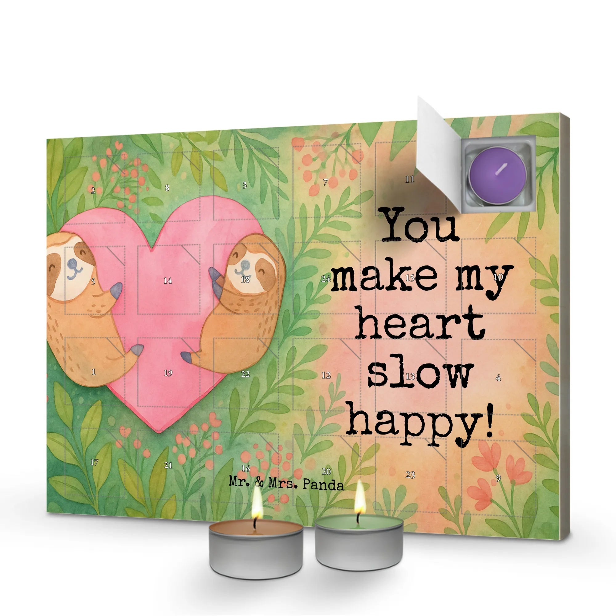 Scented candle advent calendar sloths Heart Design - with saying