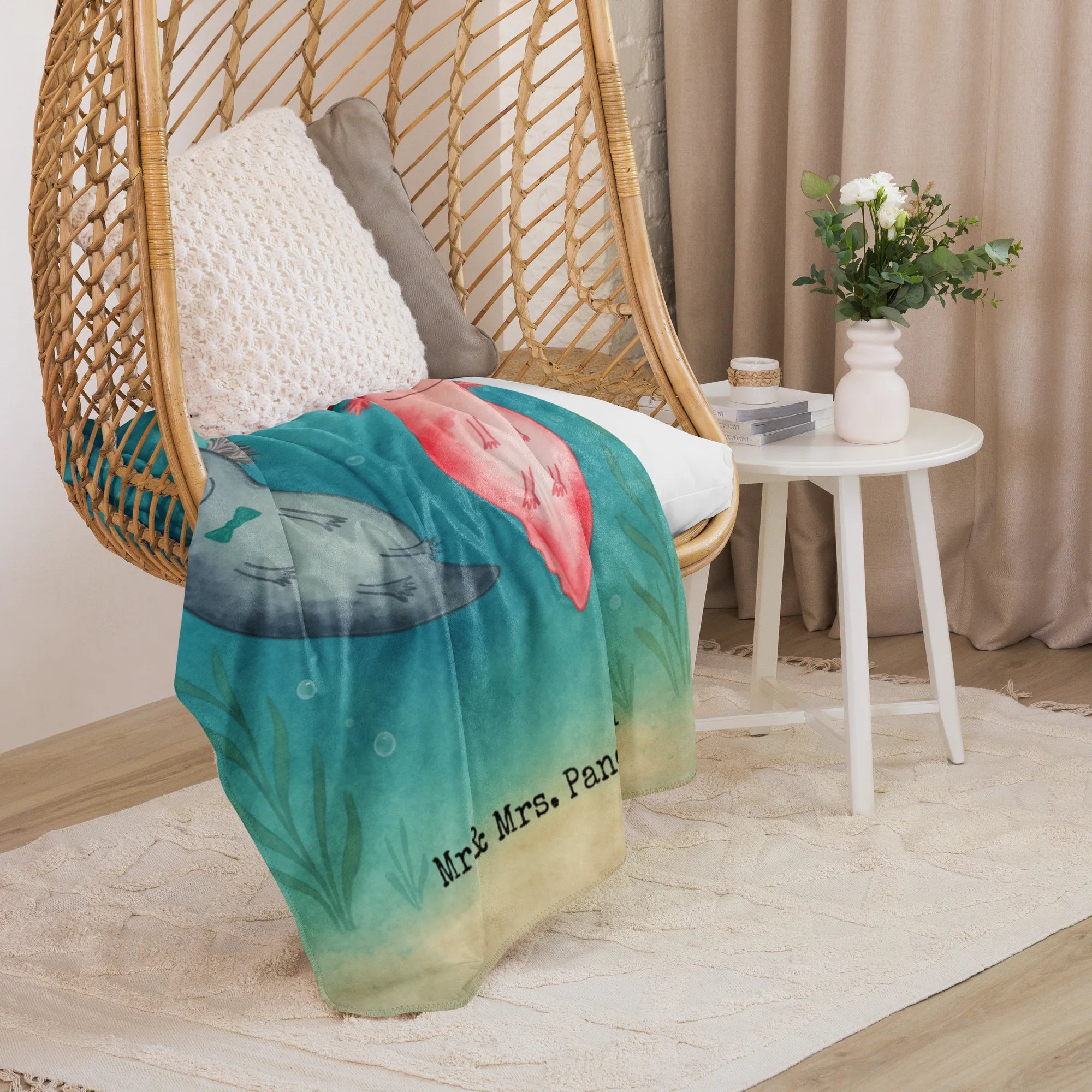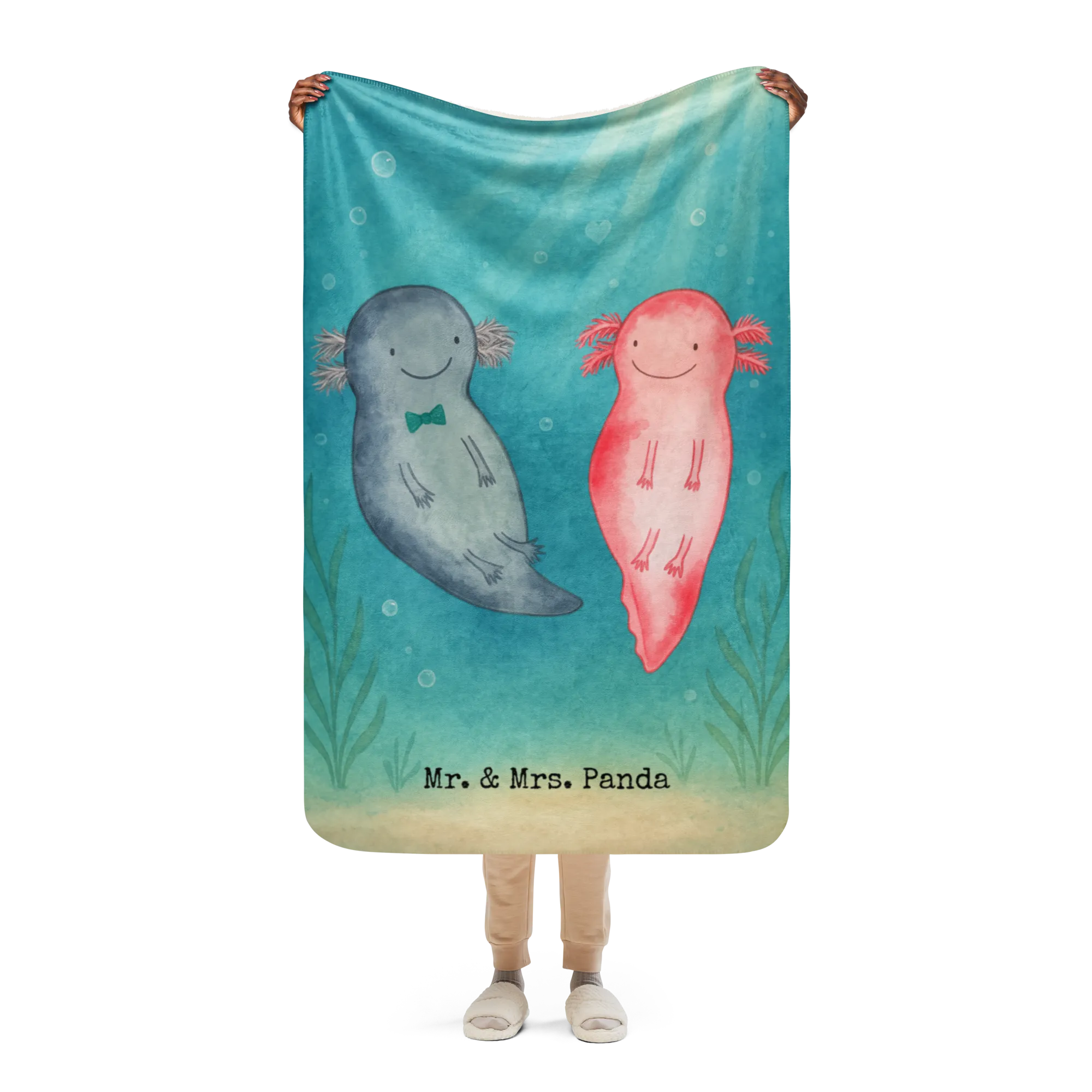 Sherpa cuddly blanket axolotl Love Design - 130 x 155 cm - with saying