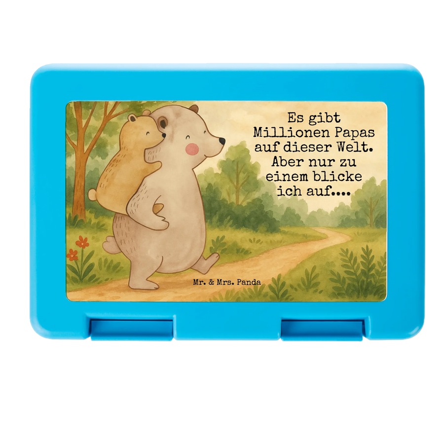 Diese Brotdose ist nicht einfach nur eine Aufbewahrungsbox – sie ist ein liebevolles Geschenk, das Geborgenheit und Wärme ausstrahlt. Das wunderschöne Aquarellmotiv zeigt den großen Bären, der liebevoll einen kleineren Bären trägt, ergänzt von dem zarten Spruch: „Es gibt Millionen Papas auf dieser Welt. Aber nur zu einem blicke ich auf...."