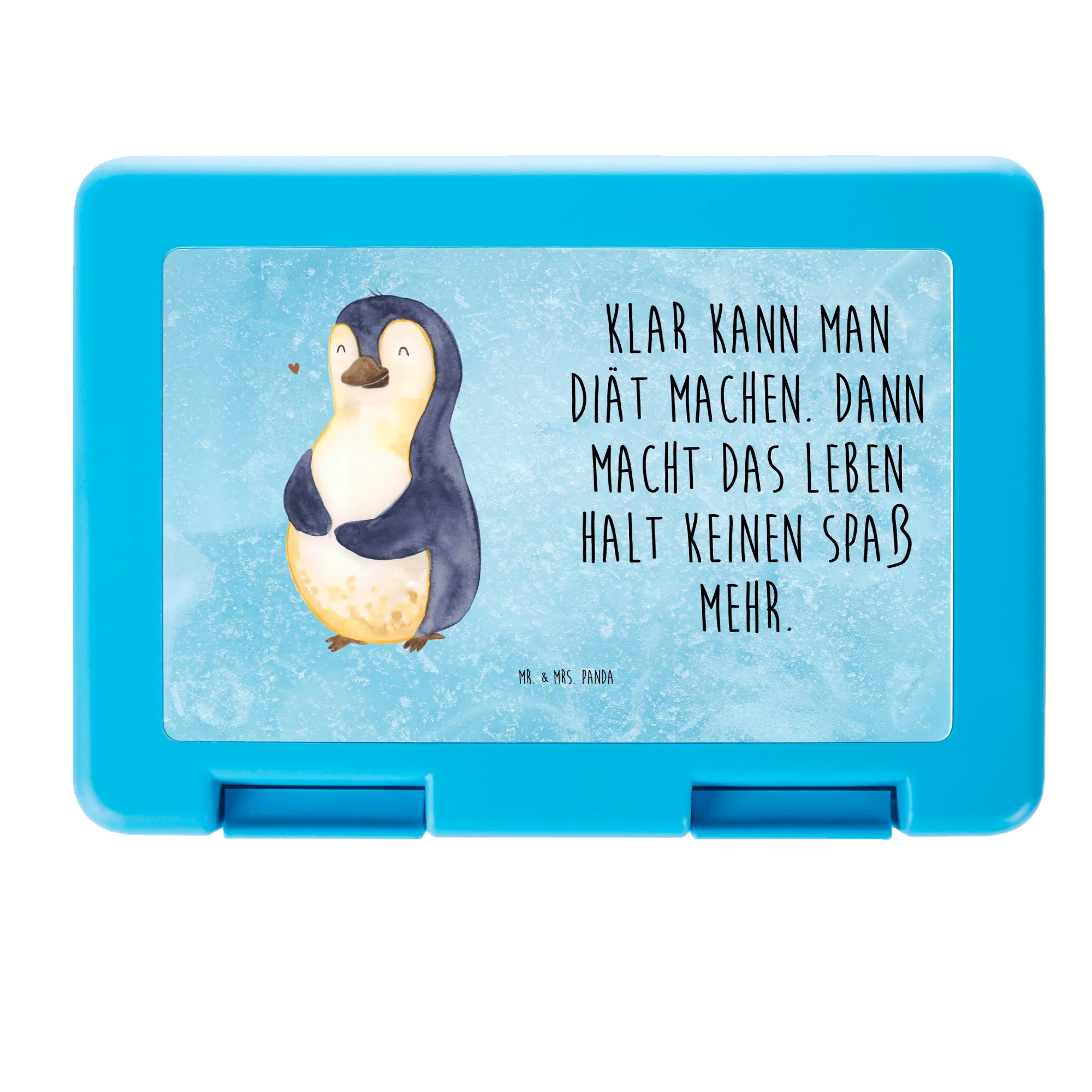 Lunch box Penguin diet - with a saying - Ice Blue
