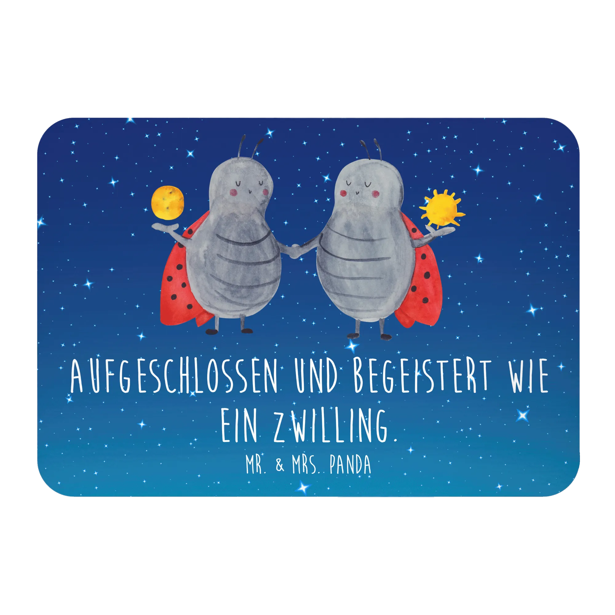 Geminis are known for their open-minded and enthusiastic personalities, and our personalized slogan "Aufgeschlossen und begeistert wie ein Zwilling" captures this essence beautifully. Perfect as a birthday gift for twins born in May or June, this magnet is an endearing celebration of their uniqueness and charm. The starry sky blue background adds just the right touch of whimsy, complimented by the hand-drawn, colorful illustration by Mrs. Panda.