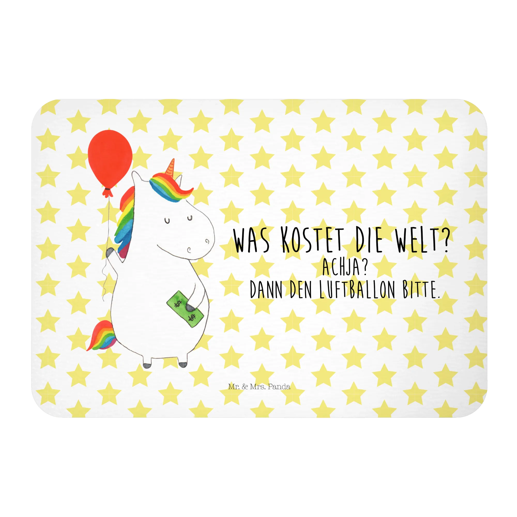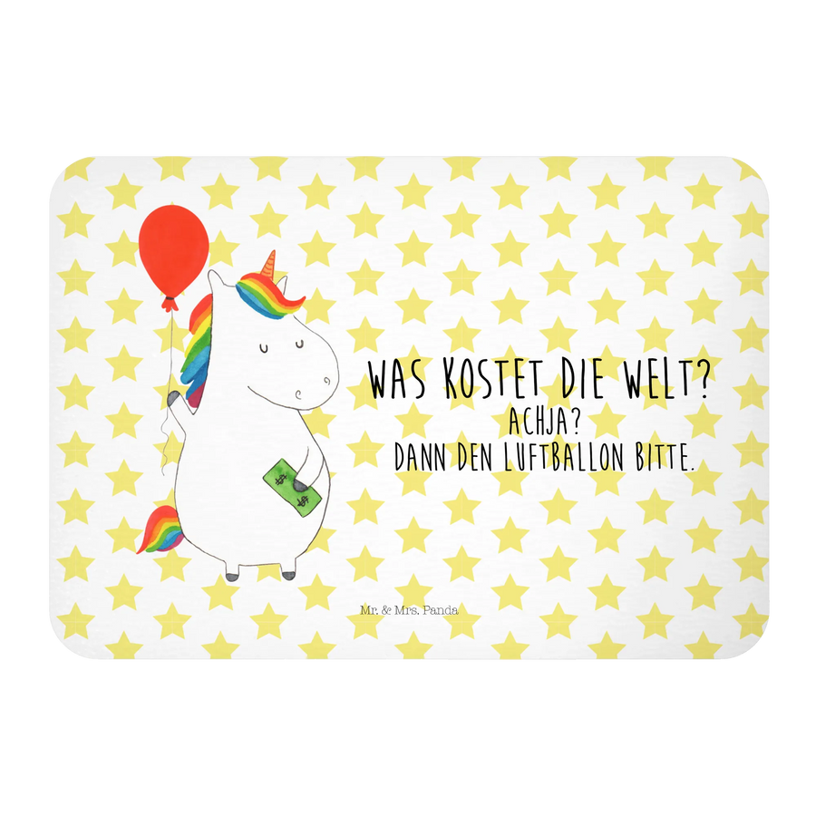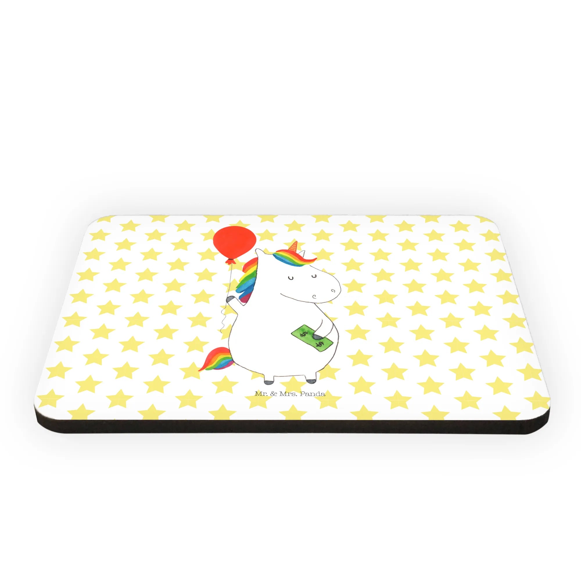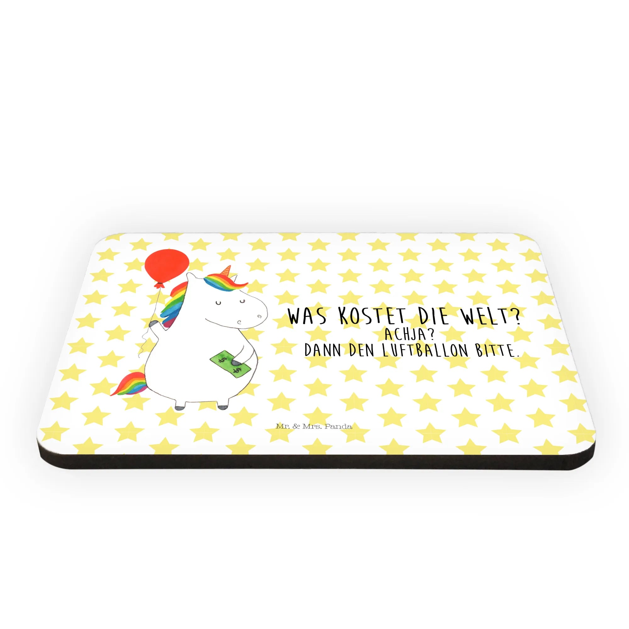 Hand-drawn with love, this unicorn holds a balloon in one hoof and a few banknotes in the other, perfectly capturing a playful spirit! The slogan, "Was kostet die Welt? Achja? Dann den Luftballon, bitte," brings a fun twist that will surely make anyone smile. Measuring a compact 2 inches by 3 inches, it's the ideal size for any fridge or magnetic board—whether in your kitchen, office, or even a home school setting!