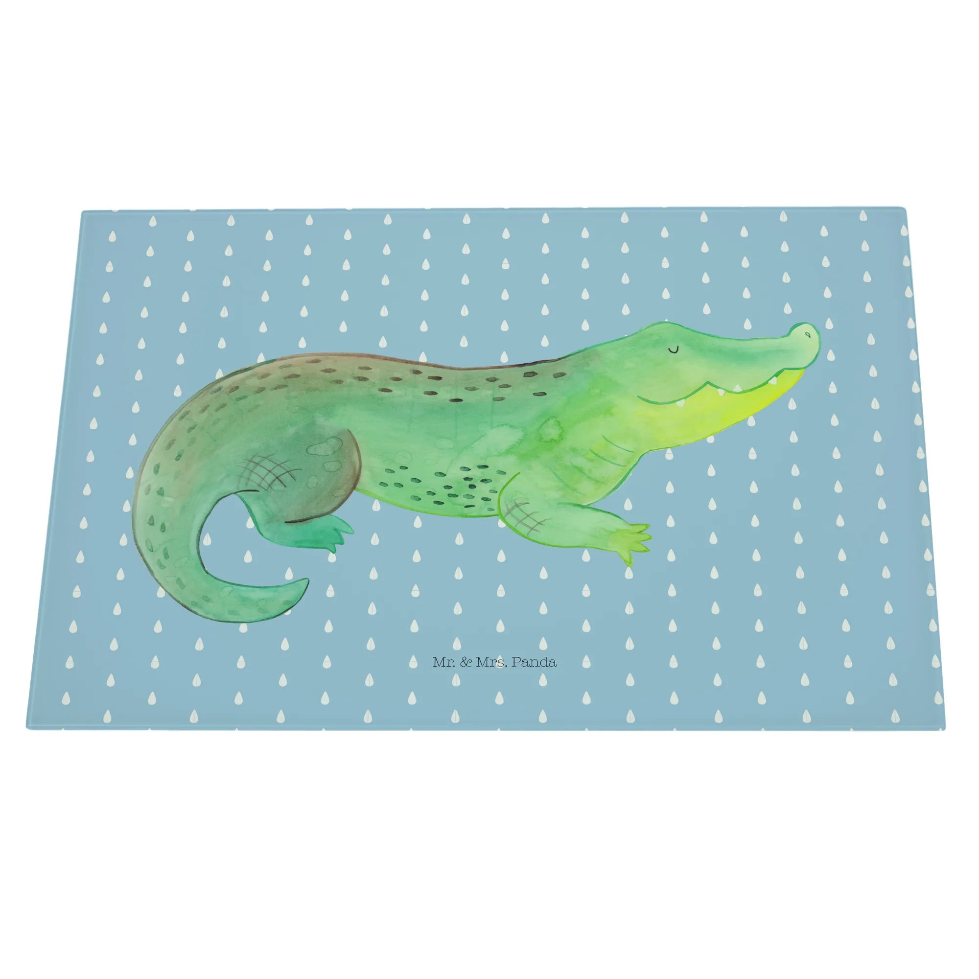 Glass chopping board Crocodile - Medium Glas Schneidbrett - with saying - White