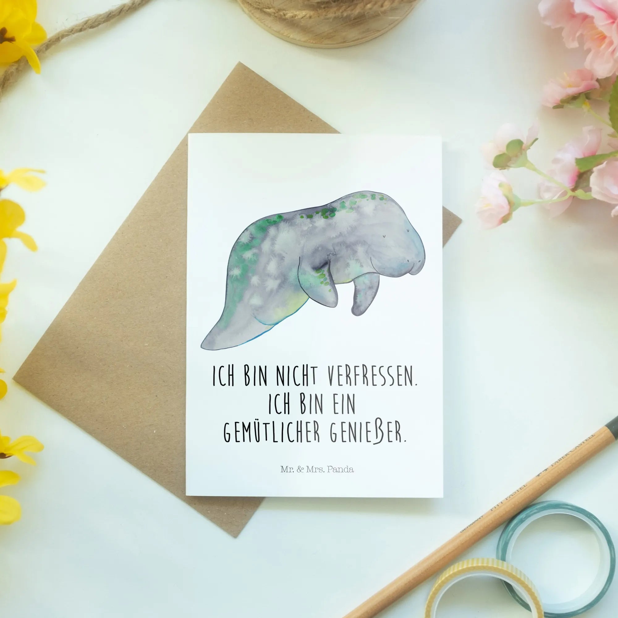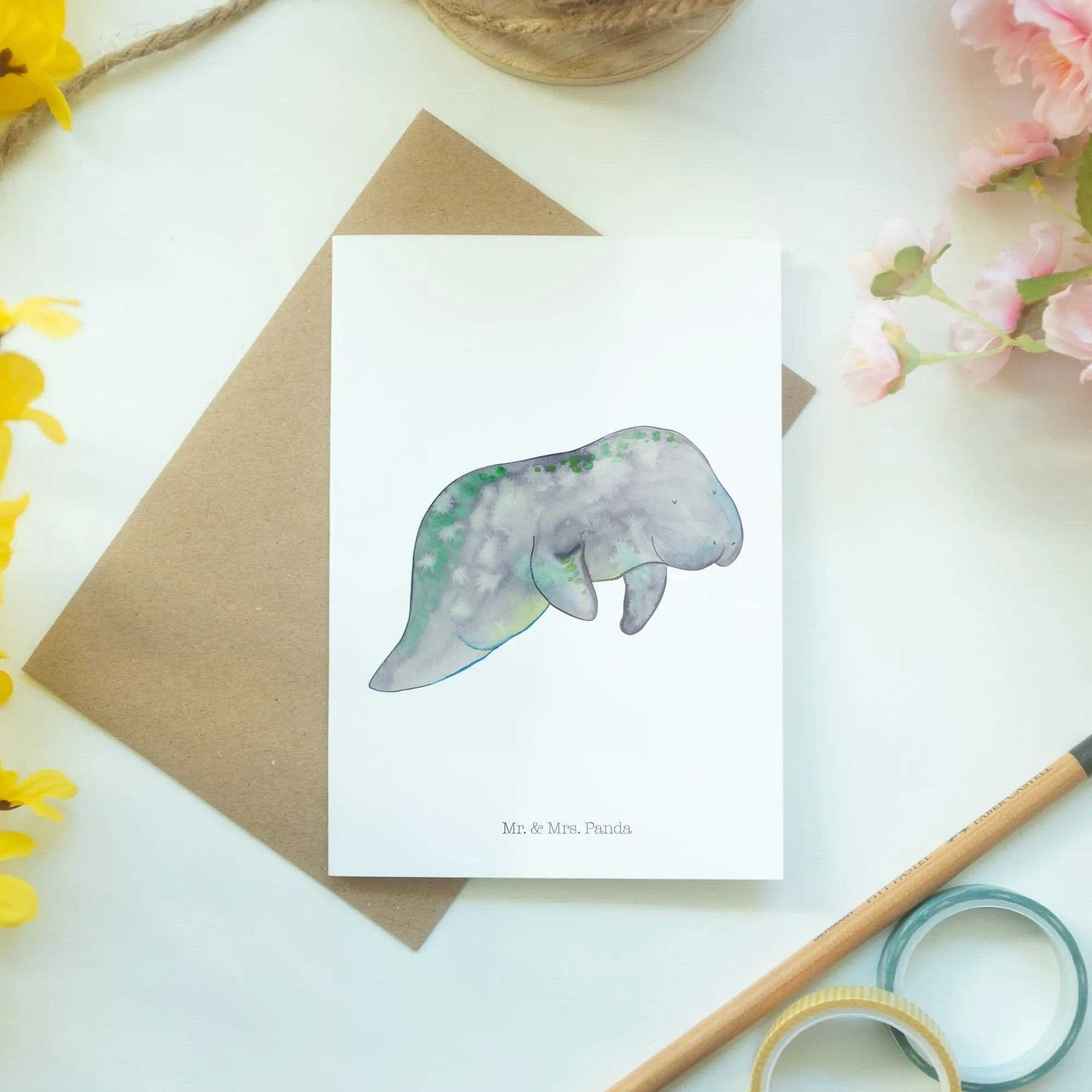 So why wait? Surprise your loved ones with this uniquely crafted greeting card from Mr. & Mrs. Panda, and let the manatee remind them of the beauty of relaxation. It’s more than just a card—it’s a heartfelt hug, wrapped in art, making it a delightful gift for anyone who adores aquatic animals, seafood, and the serene ocean vibes. Make every occasion a little brighter with our enchanting marine animals collection!