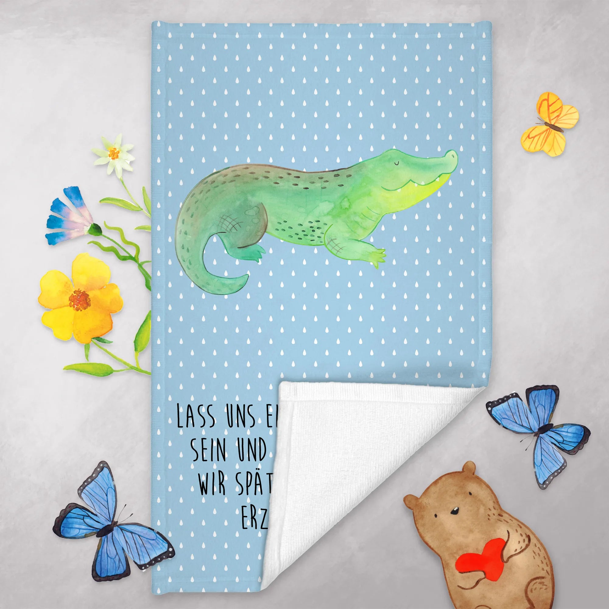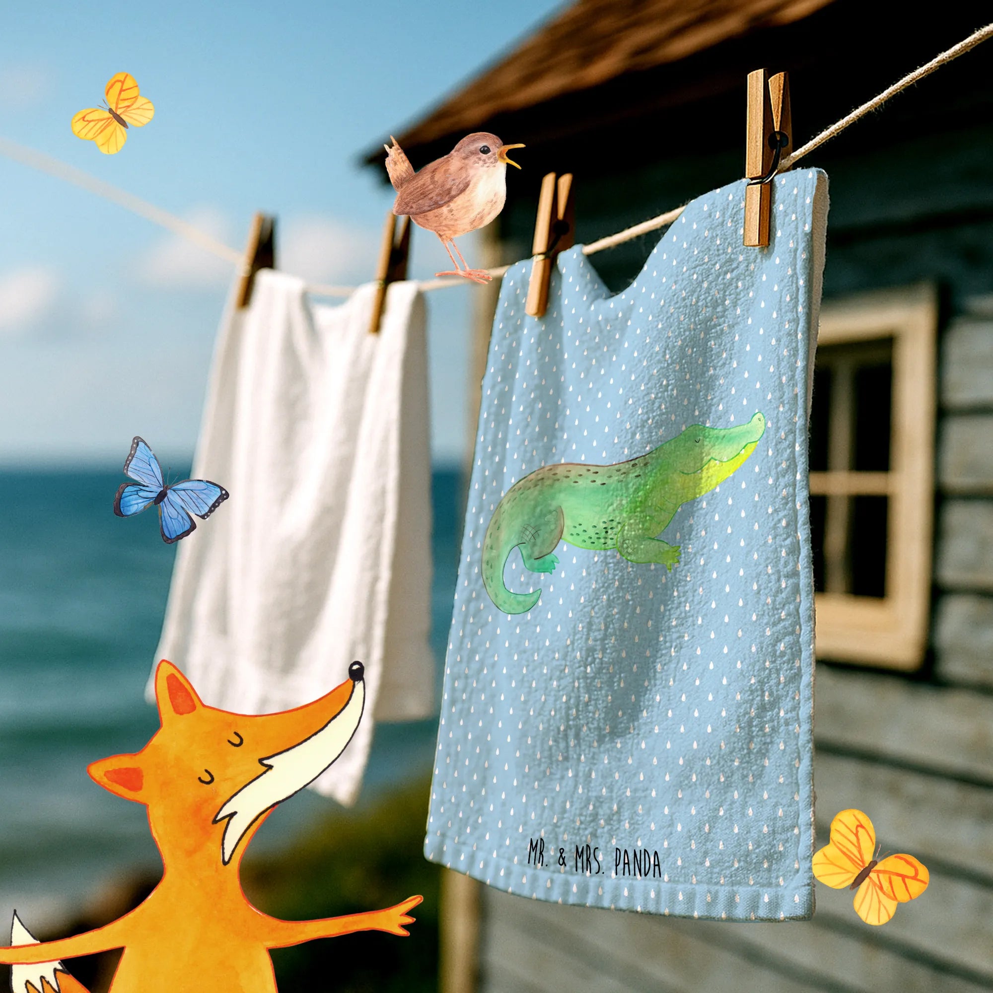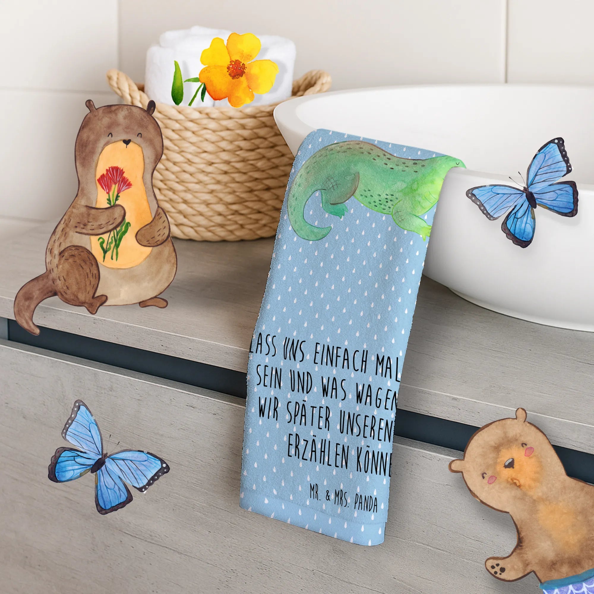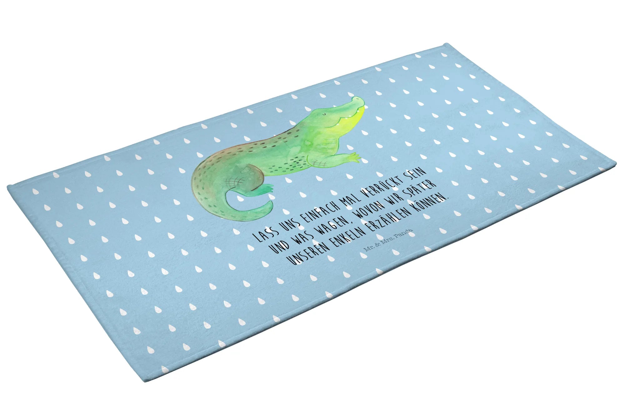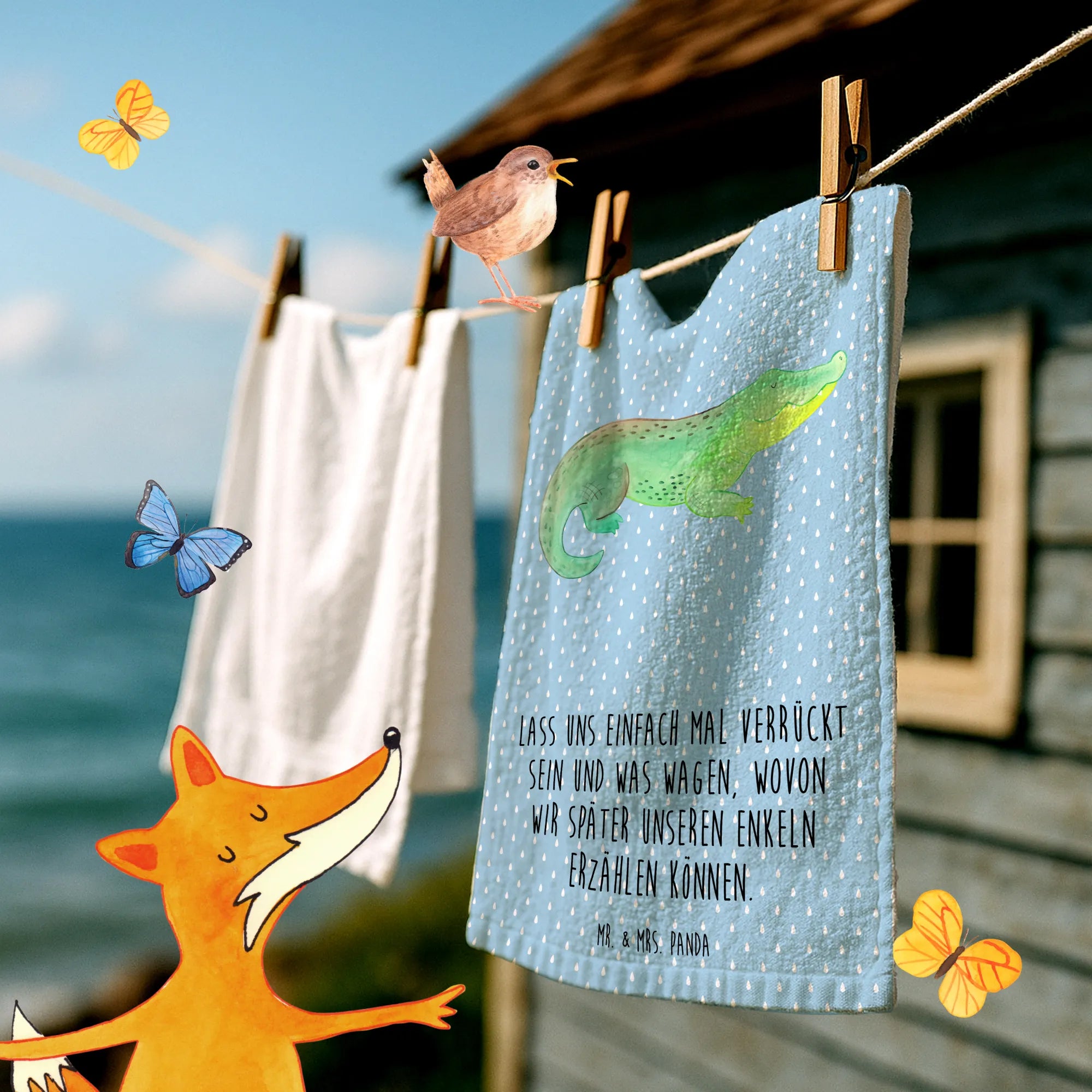 This guest towel measures a compact and convenient 50 x 30 cm, making it ideal for your guest bathroom or anywhere you want to add a splash of oceanic charm. The crocodile smiles with an inviting aura in soothing greens and blues, evoking the spirit of spontaneity and adventure. Who wouldn't want to have a towel that whispers "let's be crazy and do something we'll tell our grandkids about"? With phrases that inspire wanderlust, this towel is not merely functional; it is a centerpiece that ignites conversations and brings warmth to any room.